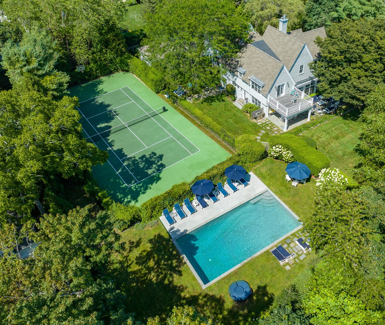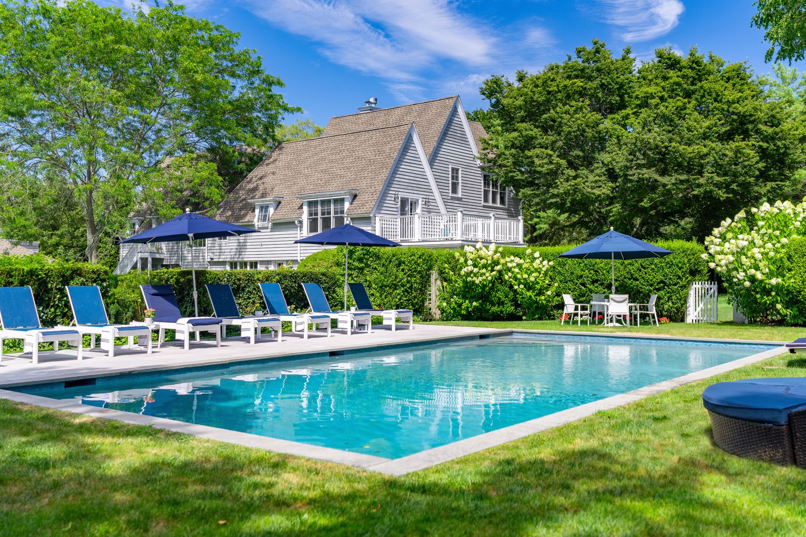 Nestled in the Estate section of Southampton village, this charming traditional home features a gourmet kitchen with chef appliances, large downstairs family room with flat screen, formal living room and dining room, covered patio, two primary bedrooms, four guest rooms, office, upstairs family room with kitchenette, two additional bonus rooms, heated pool, tennis, two-car garage and beautiful gardens. Enjoy Estate living for the summer! Close
