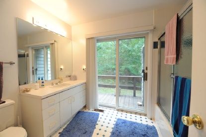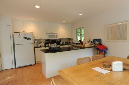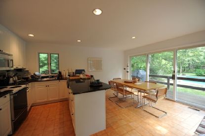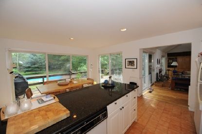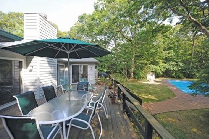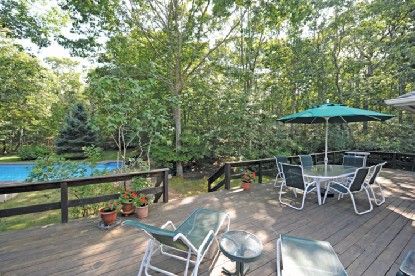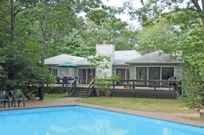 Almost 3 acres of treed privacy surrounds this one-level traditional home. This bright and airy 3 bedroom, 2 bath hideaway faces out upon a roomy deck and an inviting pool. Plenty of room for expansion and tennis to make it your own. Located only five minutes to the train, jitney and beach!