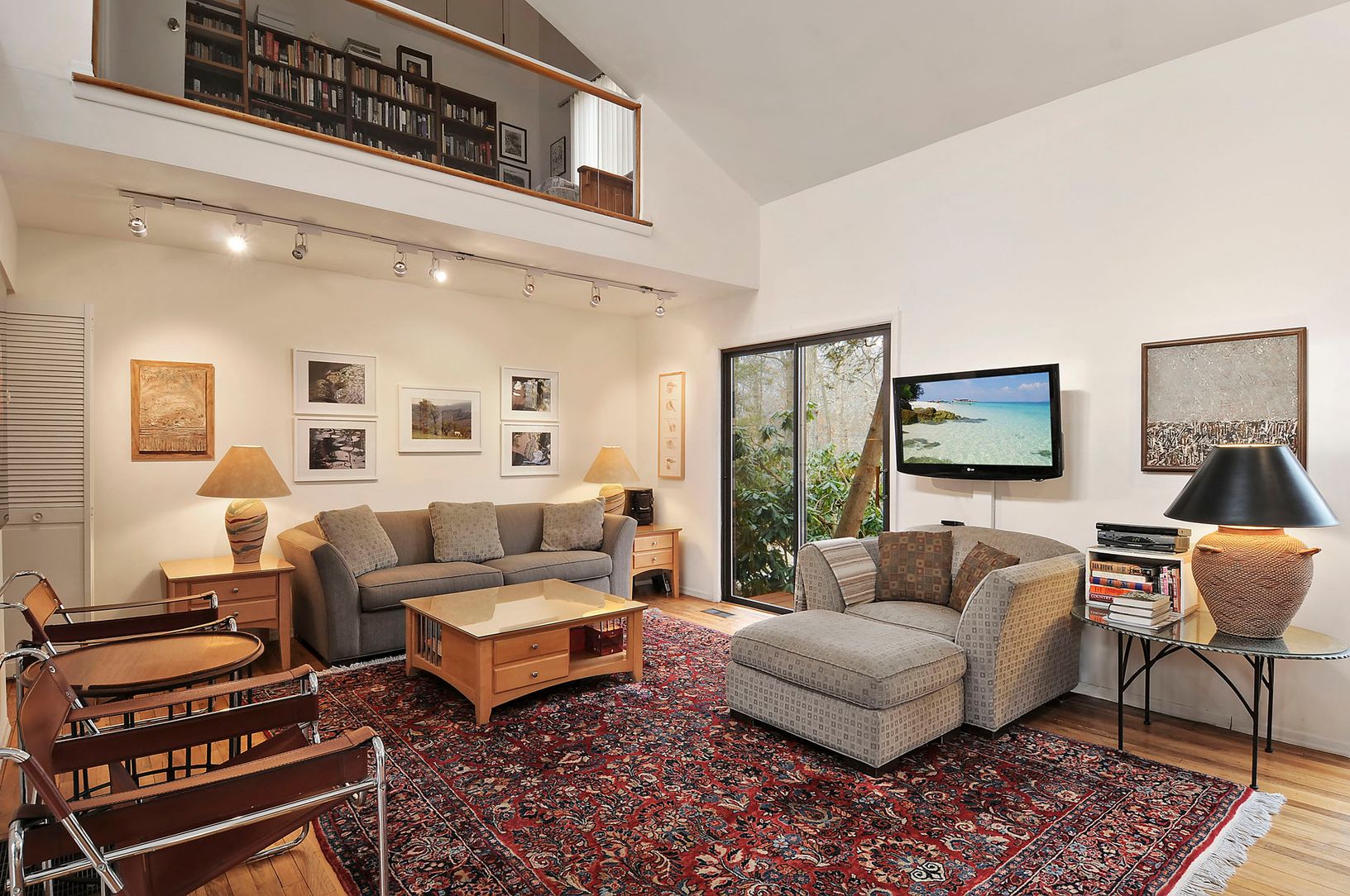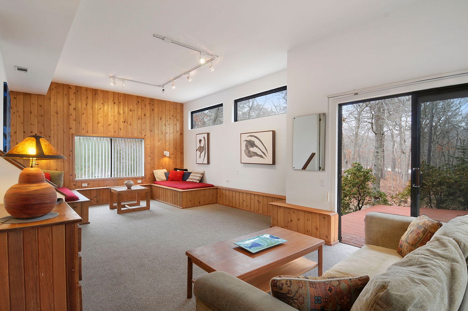 This East Hampton turn-key home is privately set on a wooded 1.3 acre property. The private and peaceful pool area is convenient to the kitchen and living space. The updated kitchen has great flow into a large family room. A large master suite has a private deck and entrance. Three nice deck areas,central air and solar power.