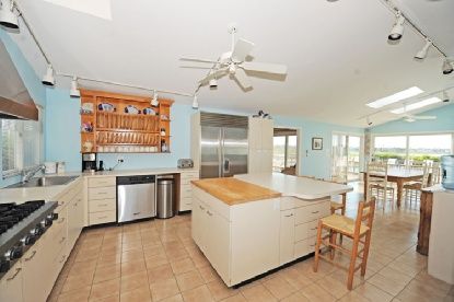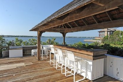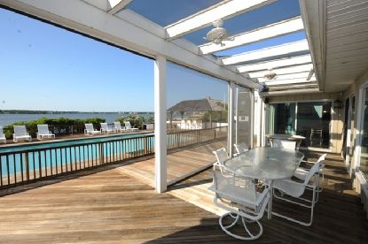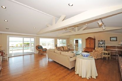 This beachy five bedroom, four bath contemporary home is an extra special bay front location. Located between the bridges on Dune Road in Westhampton Beach, this home is the perfect setting to entertain guests or for you to relax. There is a large waterside pool, a porch with retractable screens for al fresco dining, a har tru tennis court, fully bulkheaded waterfront with a double boat slip, cabana, large garage and water views everywhere. Th