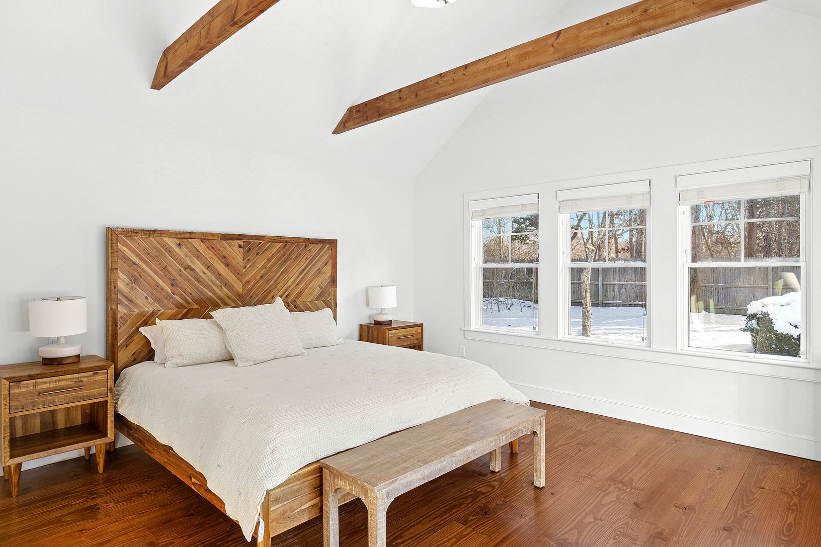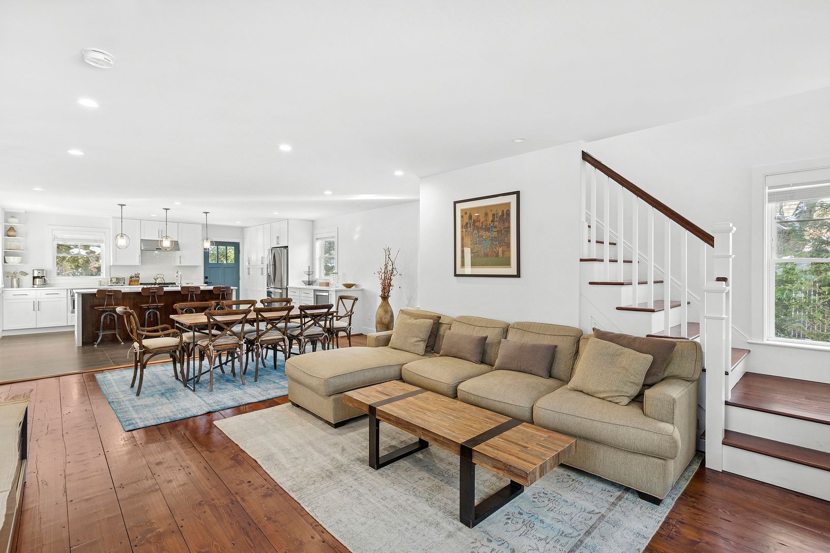Have a memorable Summer or Rent year round in this architectural gem in Westhampton South. Like new construction features a huge open floor plan great room with a true gourmet chefs kitchen, dining and living room, all elegantly, but comfortably finished. Original plank flooring and gas fireplace make the space perfect. Lots of windows and sliders face south to put a smile on your face that will last all summer. First floor primary suite for e