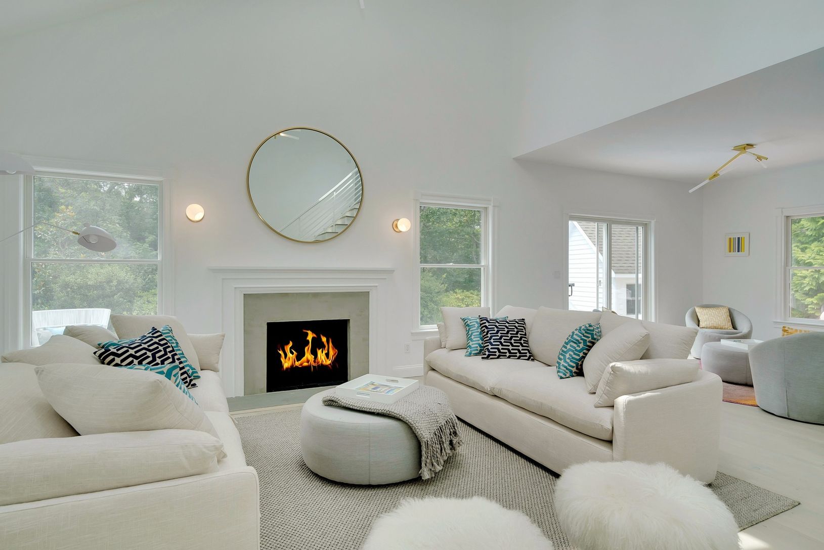 Meticulously renovated four bedroom home one block from private bay beach in coveted Barnes Landing. This chic and stylish home has clean lines, a soothing color palate and glorious natural light from its hilltop setting. Enter though an airy vestibule into the large family living area with vaulted 25' ceilings, open fireplace and sliding French doors leading to an in ground pool, spa and pool house. The floor plan is enhanced with a sittin
