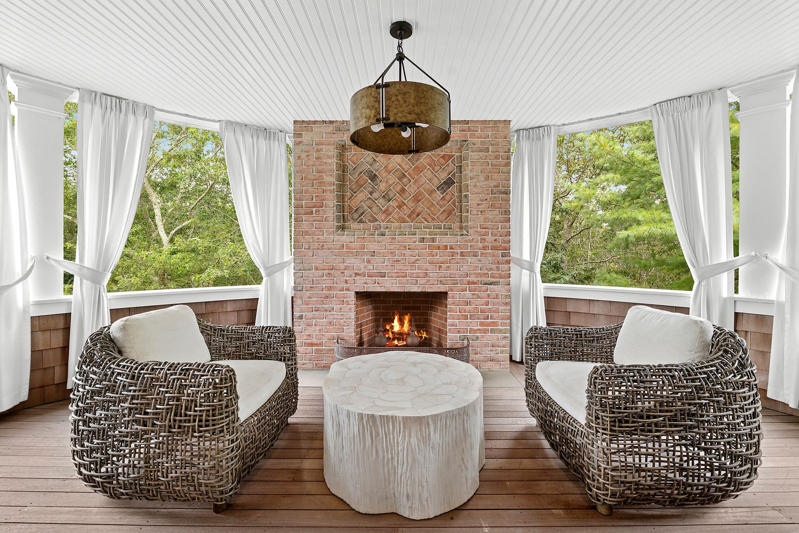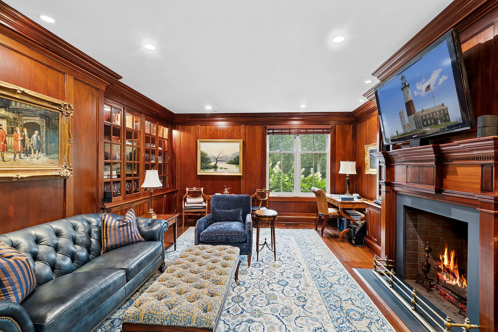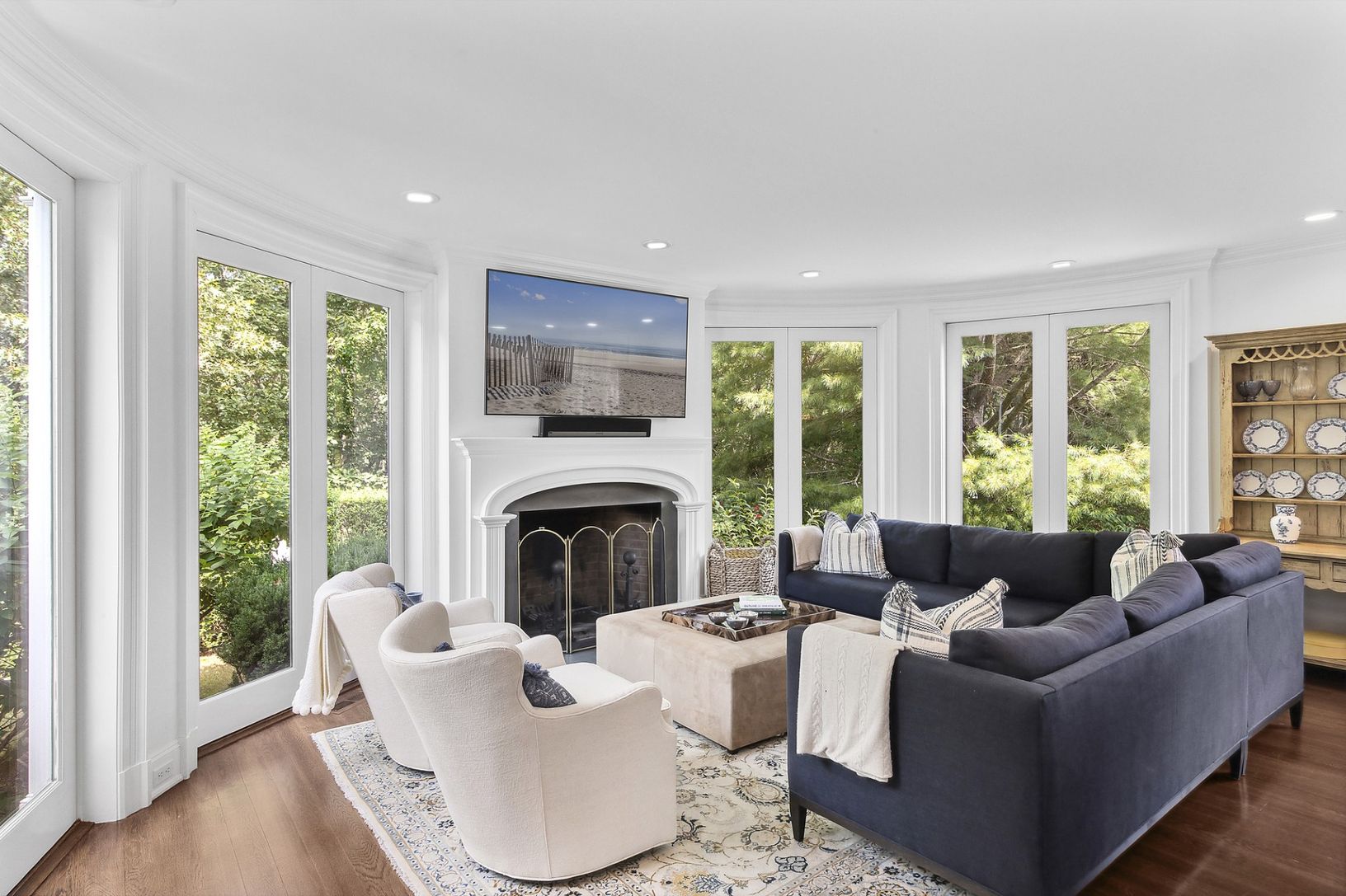 In the heart of Bridgehampton's famed horse country, this five-acre estate offers style, quality, and privacy at an exceptional level. Designed by the esteemed architects Barnes Coy, the residence blends timeless Hamptons character with refined modern craftsmanship. A cedar shingle exterior sets the tone for interiors appointed with limestone and oak floors, solid five-panel mahogany doors, and four fireplaces, including one outdoors. Rounded