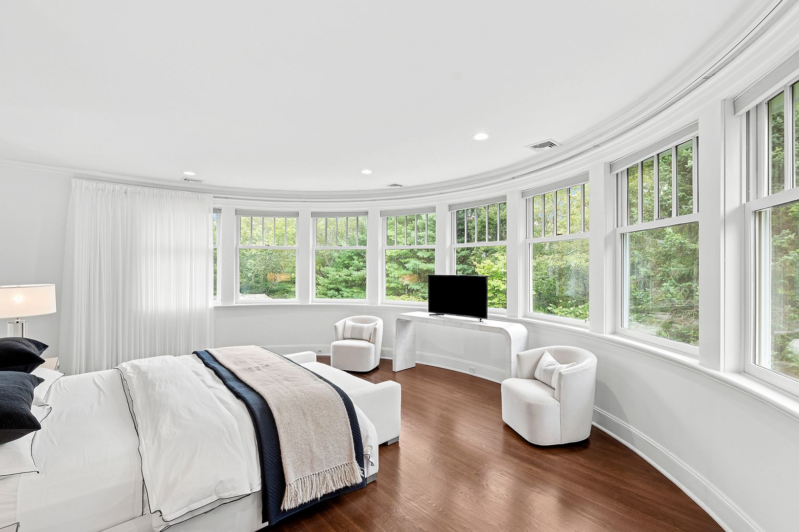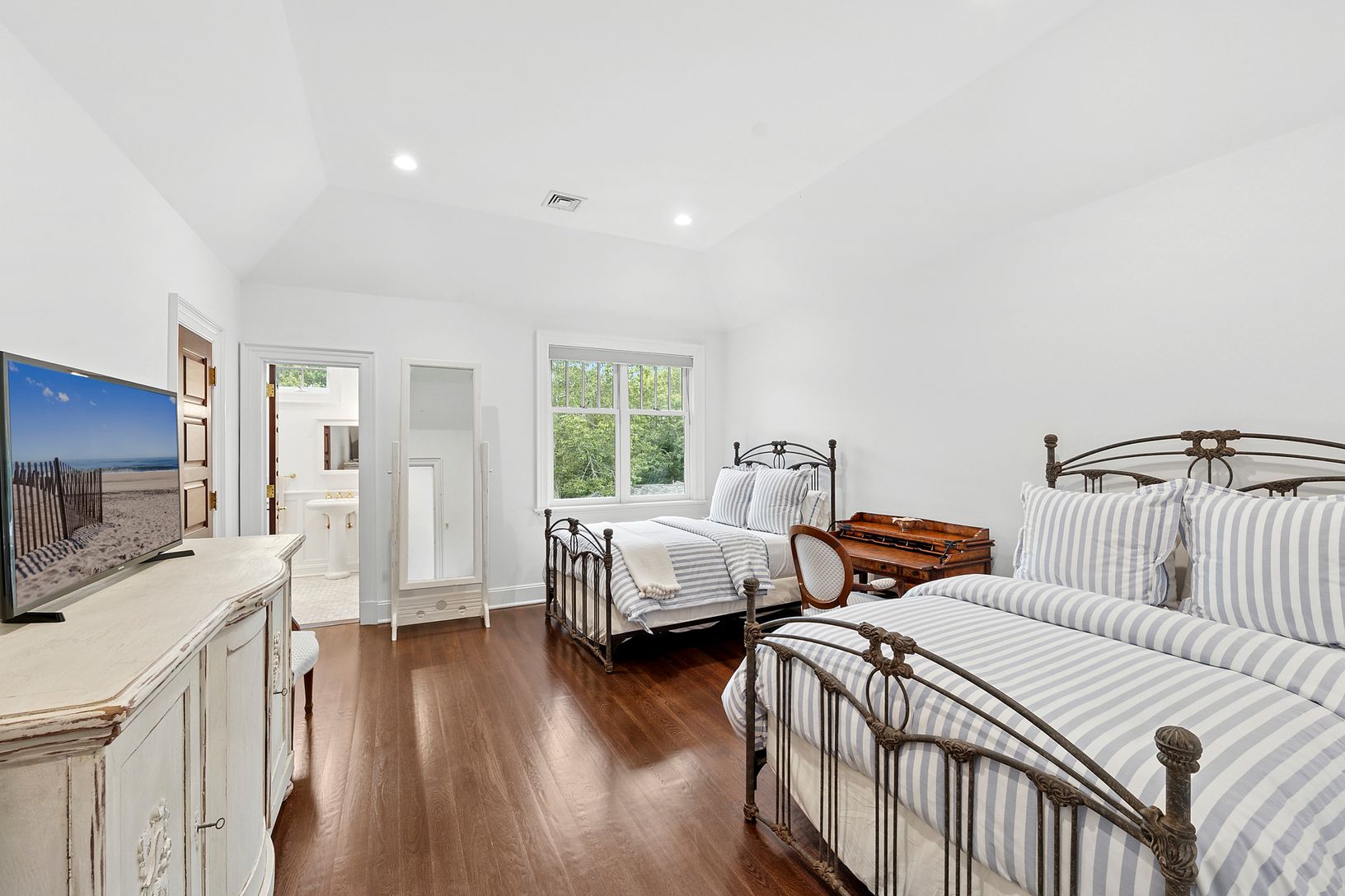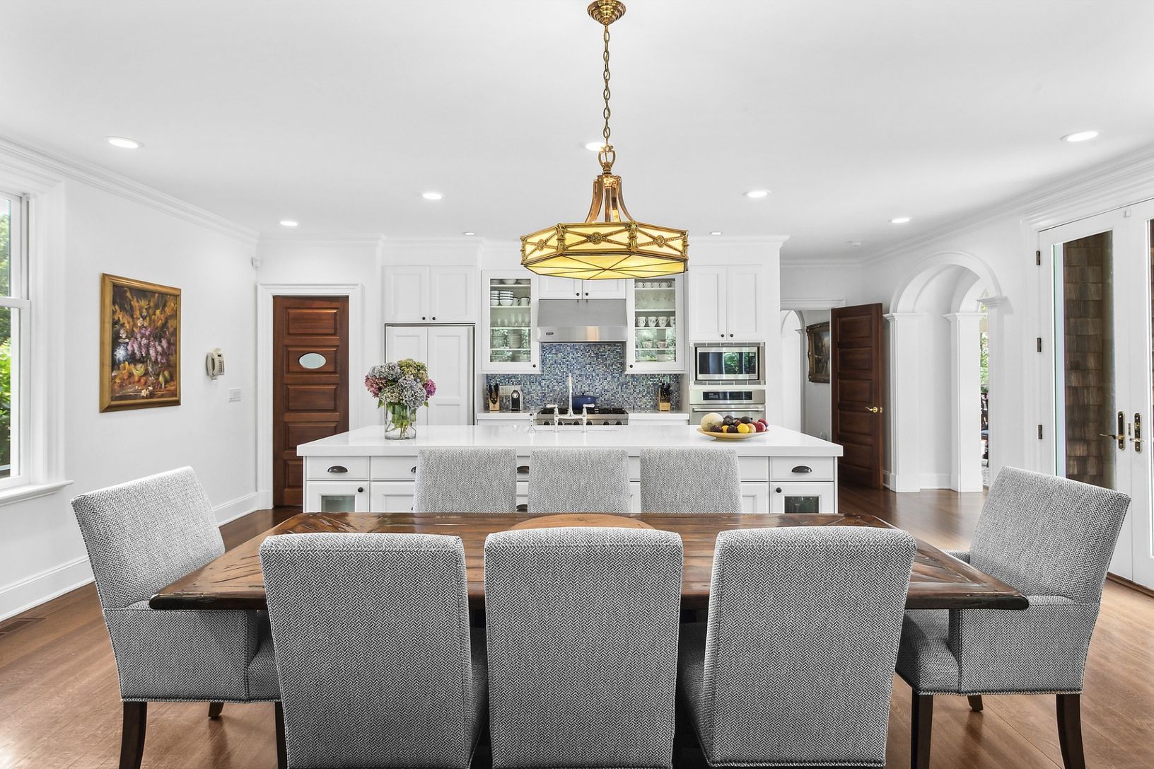In the heart of Bridgehampton's famed horse country, this five-acre estate offers style, quality, and privacy at an exceptional level. Designed by the esteemed architects Barnes Coy, the residence blends timeless Hamptons character with refined modern craftsmanship. A cedar shingle exterior sets the tone for interiors appointed with limestone and oak floors, solid five-panel mahogany doors, and four fireplaces, including one outdoors. Rounded