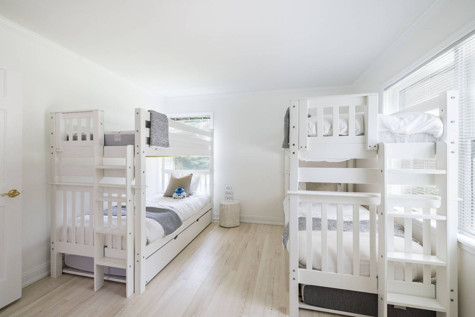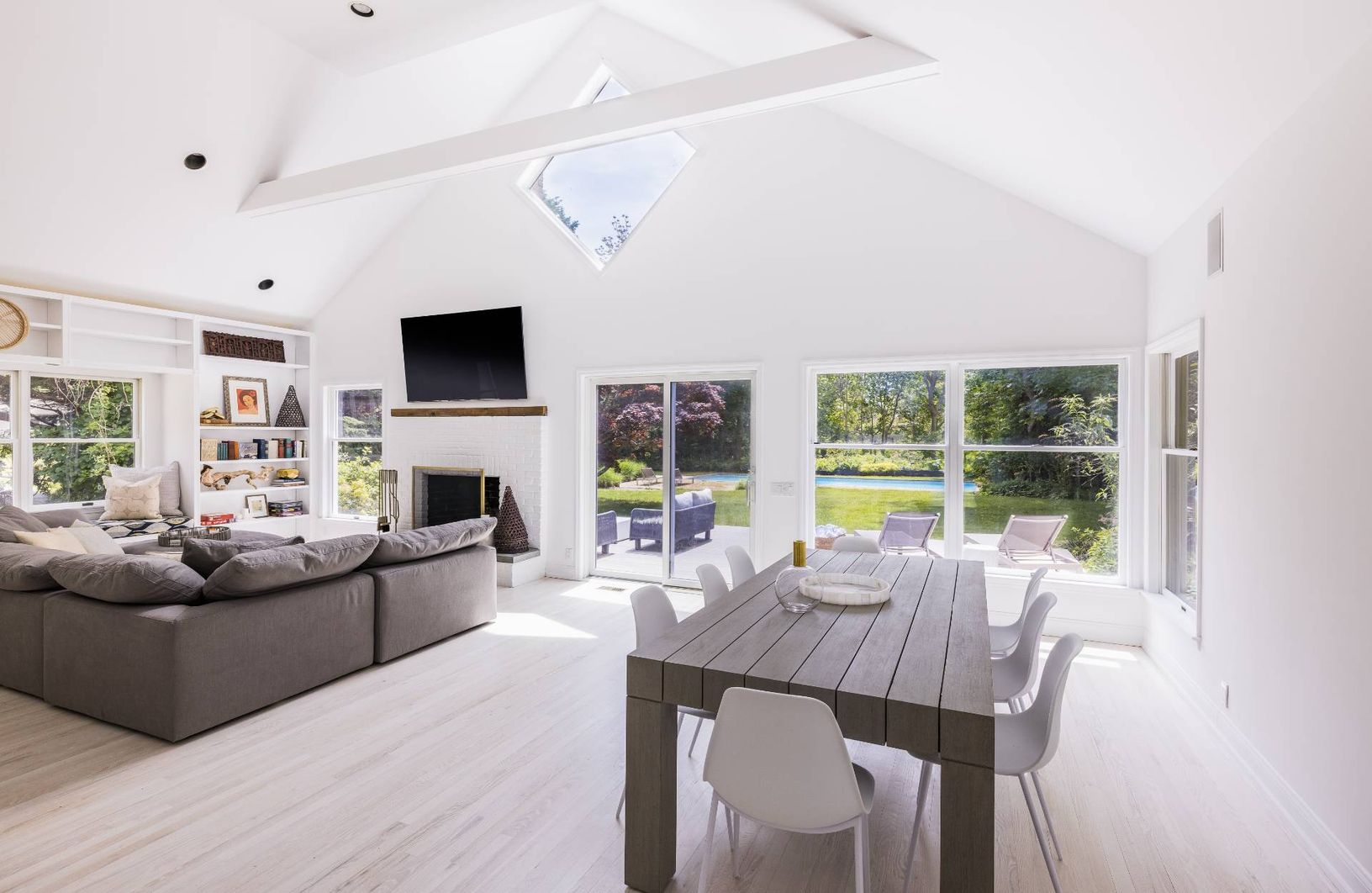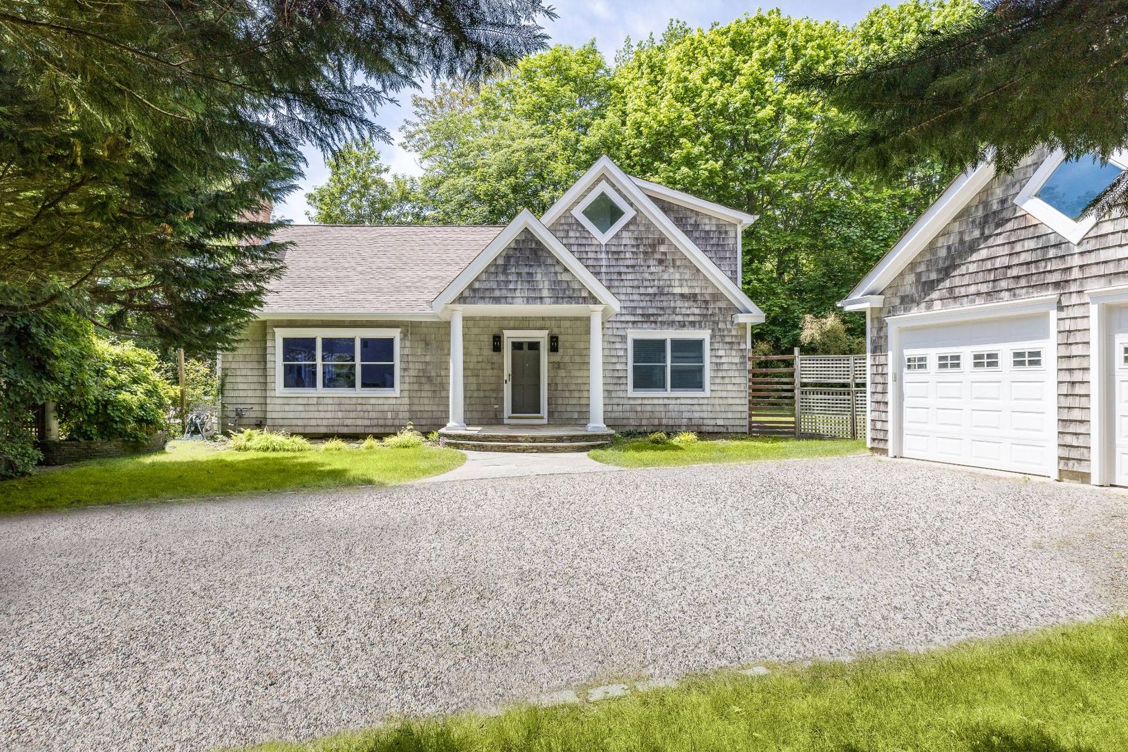 Located on a long flag lot off of Accabonac, this quiet and private setting offers the perfect retreat for the month of June or July. Recently purchased and reappointed, this three-bedroom two bath home offers an open floor plan with vaulted double-height ceilings in the living room and dining area. There are two first-floor bedrooms and a full bath. Upstairs find the primary suite, with a wall of windows overlooking the grounds, and including