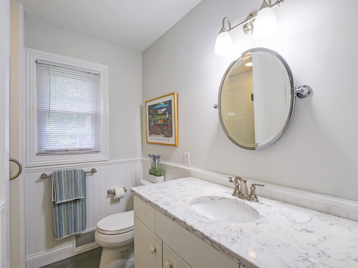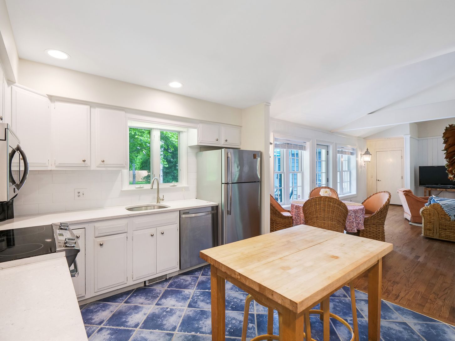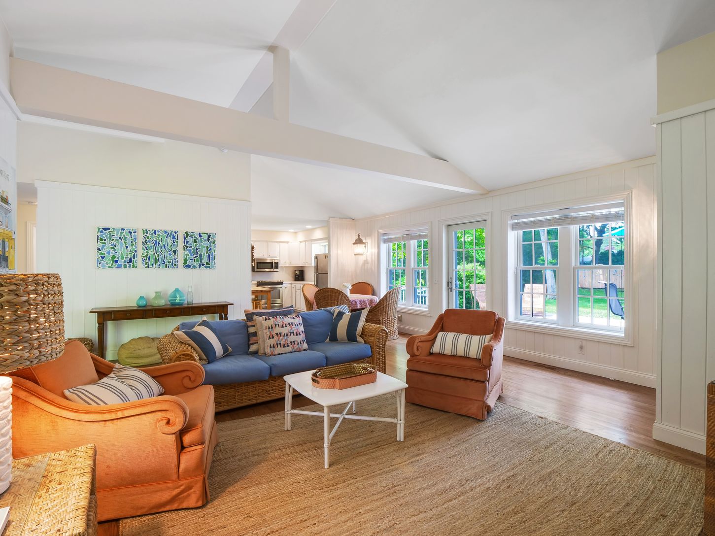 Clean & welcomeing, one-story home, moments to Main Street, available August 14 - Labor Day $16,500, and/or Winter 2026-2027 from Sept. 12 to May 15, 2027 at $3,750 per month including utilities. This is not available year-round. Located less than half a mile to Westhampton Beach's Main Street, this charming ranch at 73 Beach Road, offers three bedrooms and two renovated baths, including a spacious master suite. The open floor plan featur