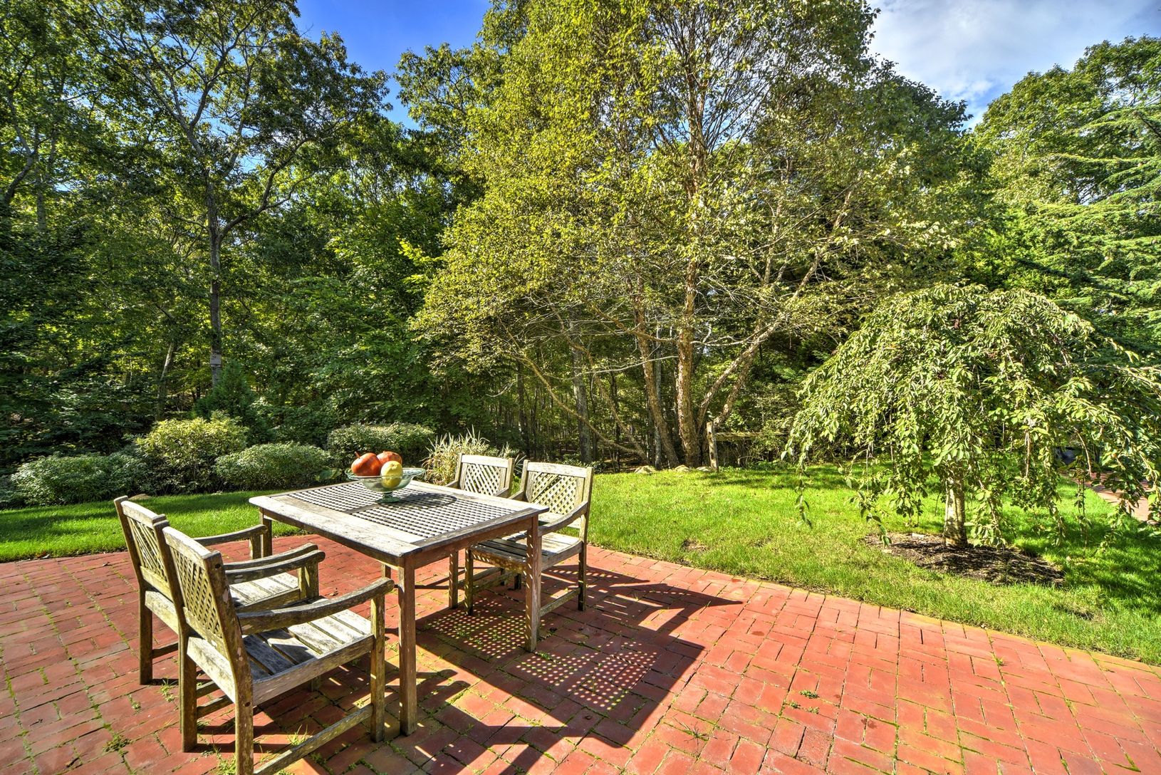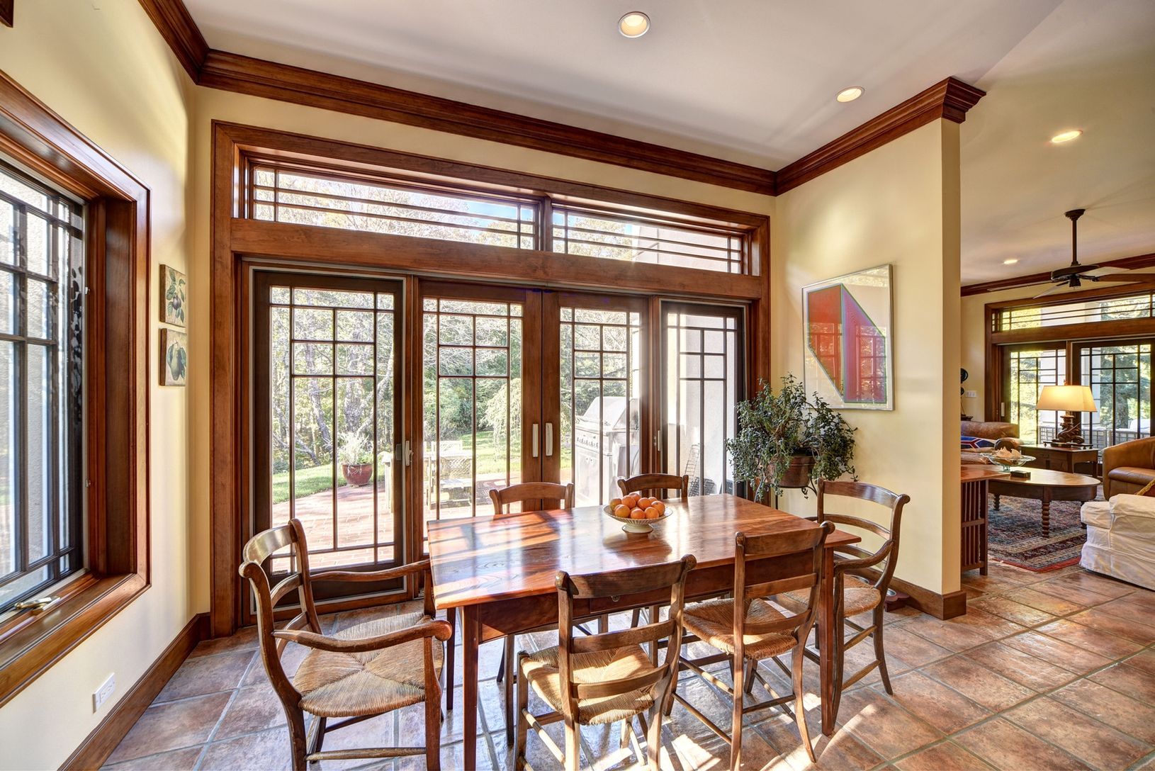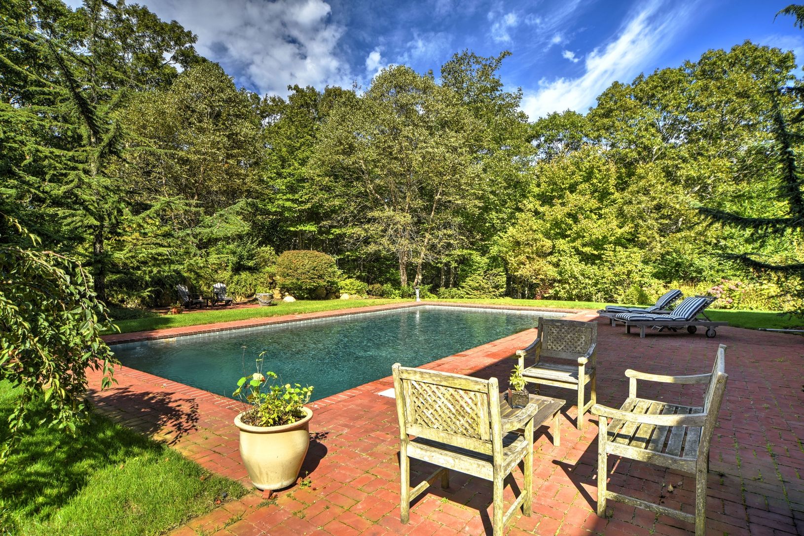 Designed by Bruce Nagel and echoing of Frank Lloyd Wright designed houses from its windows to its fluid relationship with the outdoors, this 4,580 sf house sits on a hill, amidst 2.7 acres of stately woods and a nearby reserve. Yet its just minutes to Amagansett's shops, the Devon Yacht Club and Fresh Pond Park and Beach. The welcoming high ceilinged ground floor, allows for easy entertaining and relaxing indoors and out, with a heated gunit