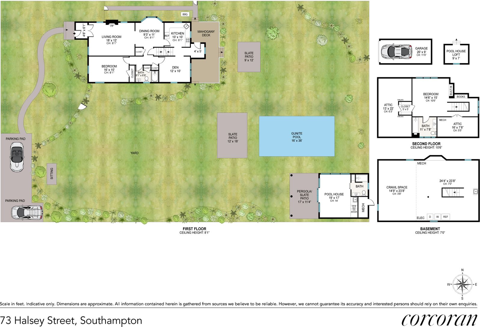 Welcome to 73 Halsey Street, a charming shingle style Cottage on a gorgeous .47-acre compound with beautifully manicured gardens, a heated Gunite pool, a fully-equipped pool house and a separate 1-car garage located right in the heart of Southampton Village. This exquisite house and property offer a unique blend of historic charm and modern convenience and is just a 10-minute stroll to the vibrant village center and an easy bike ride to the vi
