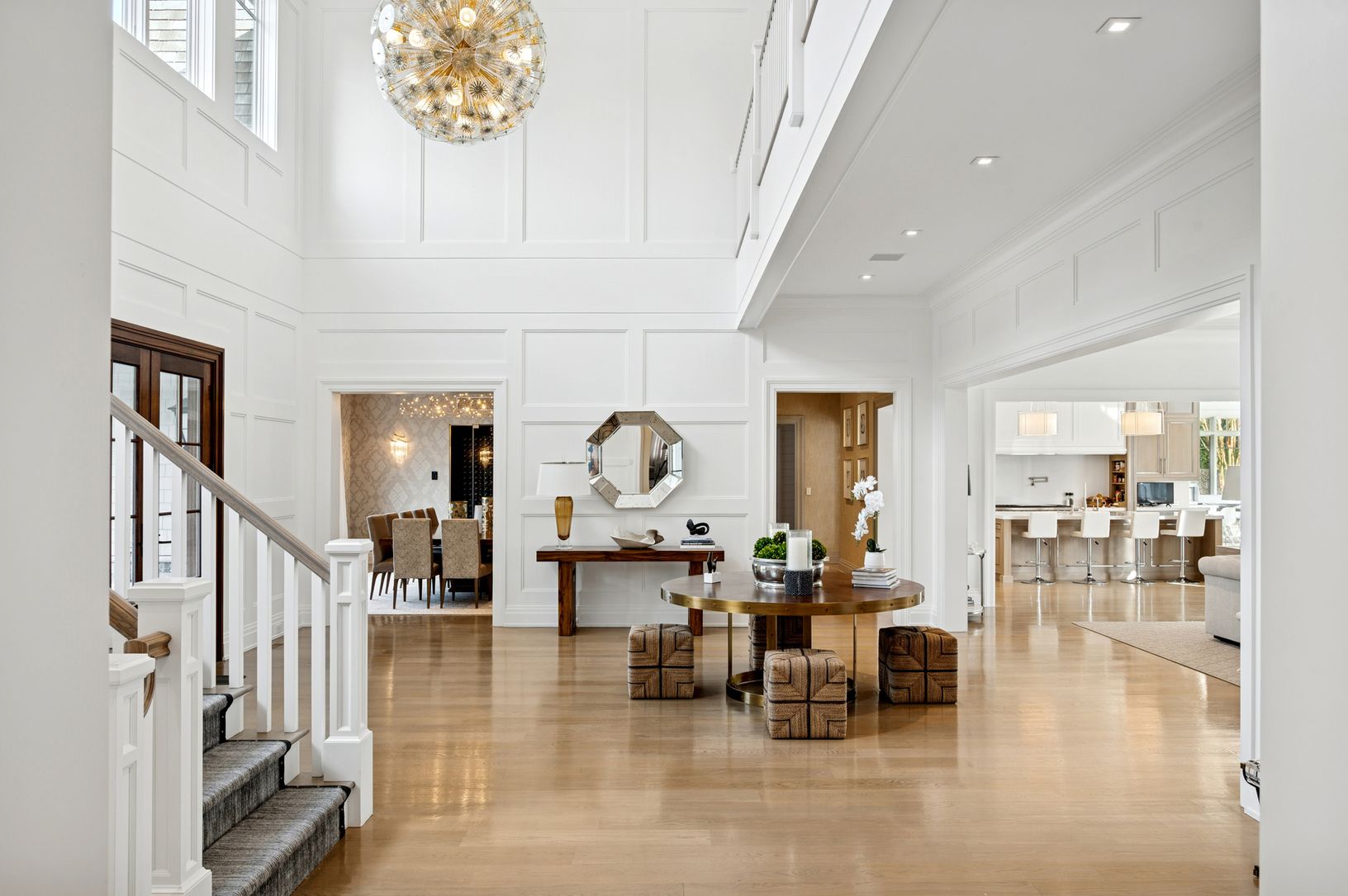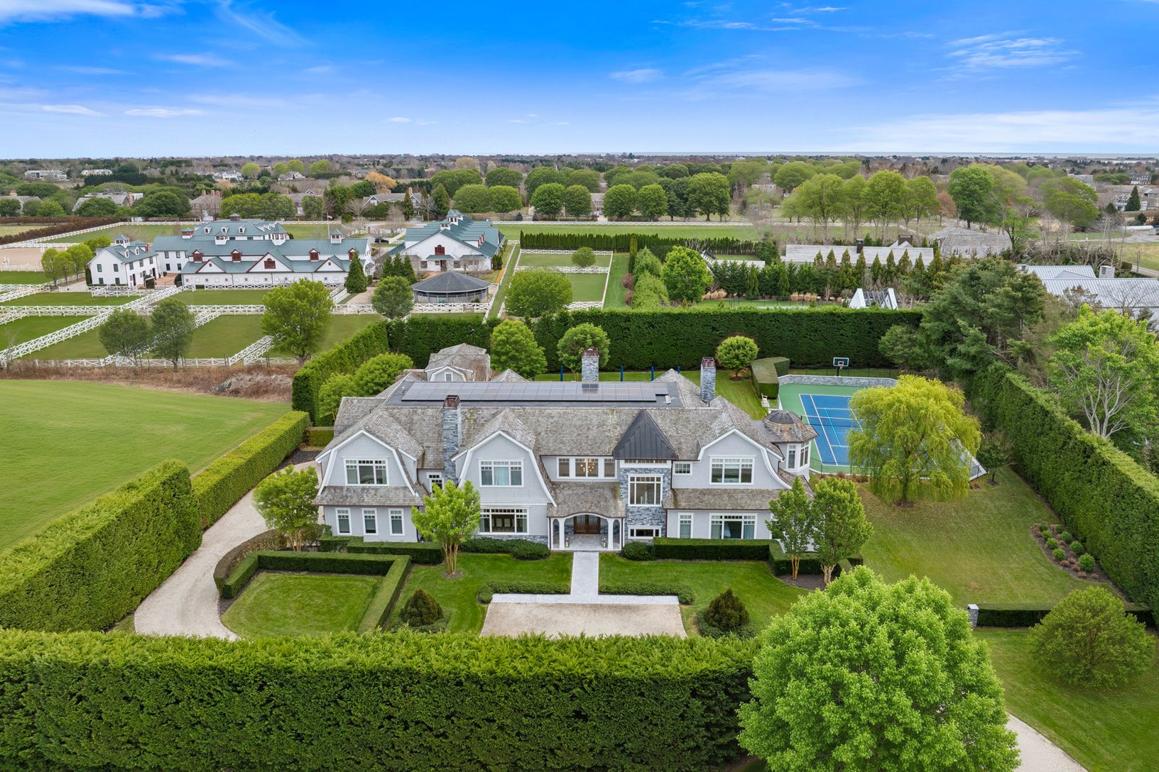 Set on 1.55 acres+/- south of the highway, this 10,000 sf+/-, 8 bedroom, 10 full and 2 half bathroom estate offers exceptional privacy, scale, and resort-style living in a premier Water Mill location. Bright, open interiors feature expansive living and dining areas, refined finishes, and an effortless flow suited to both entertaining and relaxation. A first-floor primary suite and an elevator servicing all levels enhance comfort and convenienc