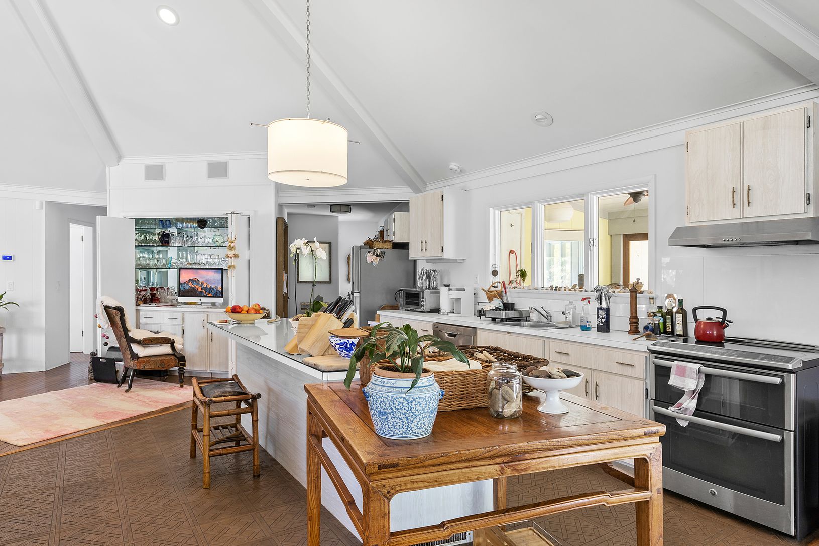Stylish and unique, this 2,900± sf home features two bedrooms and three full baths. The first floor offers a large office/media room, two office/ overflow bedrooms, full bath, dedicated laundry and storage areas, outdoor patio with retractable awning, enclosed outdoor shower, as well as a 2-car attached garage. The second level features a great room with soaring ceilings and a chef's kitchen, screened-in porch, vintage bar, centrally located d