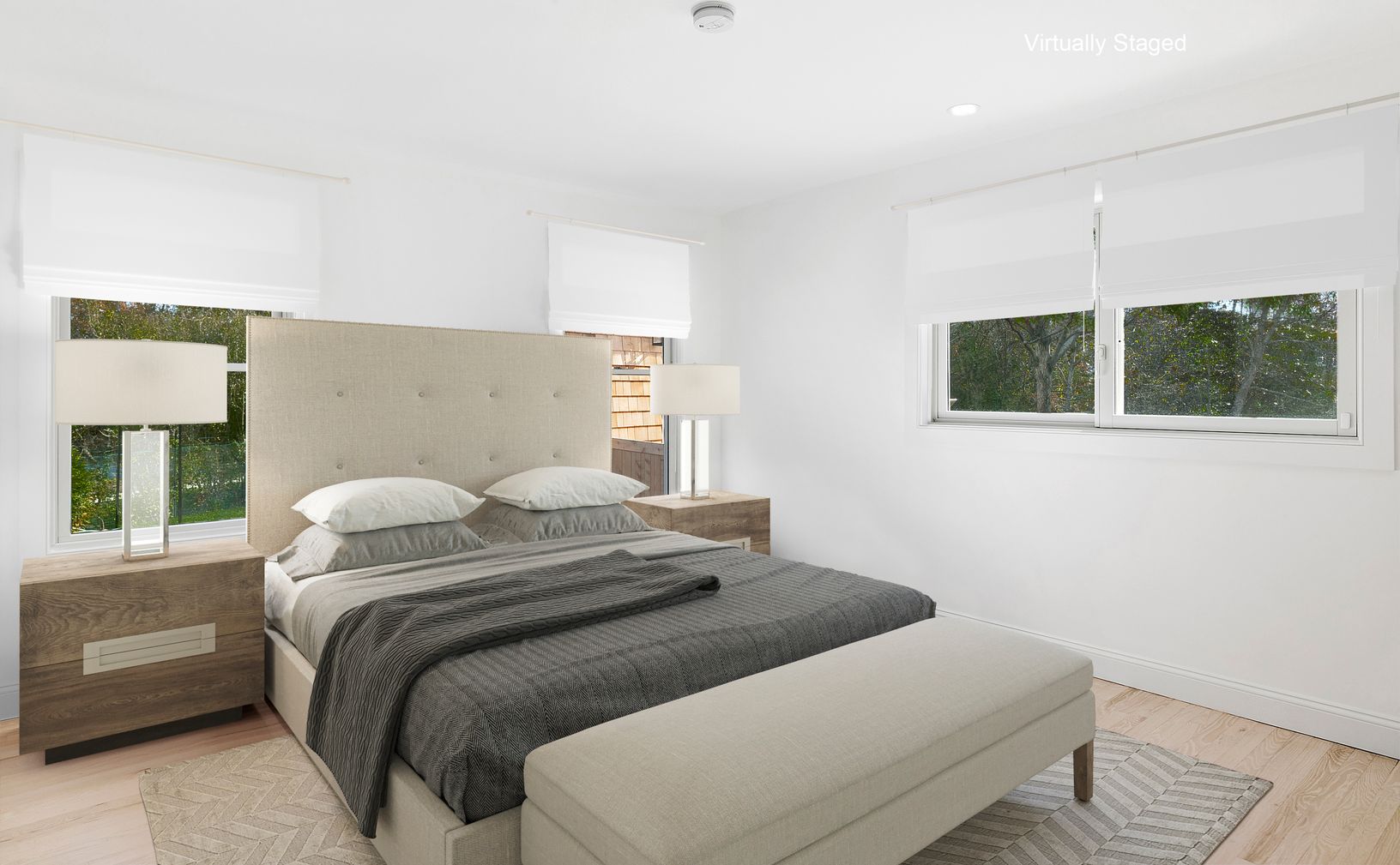 With open pastoral views over reserve and completely renovated, this fabulous 4-bedroom Contemporary is just moments from Main Street, Bridgehampton shops, restaurants and transportation, and is within easy reach of renowned wide sandy ocean beaches. The 2,400 sf home offers a light-filled open floorplan with vaulted ceilings and hardwood floors throughout. The main floor features two bedrooms and two full baths, living room with stone firepla