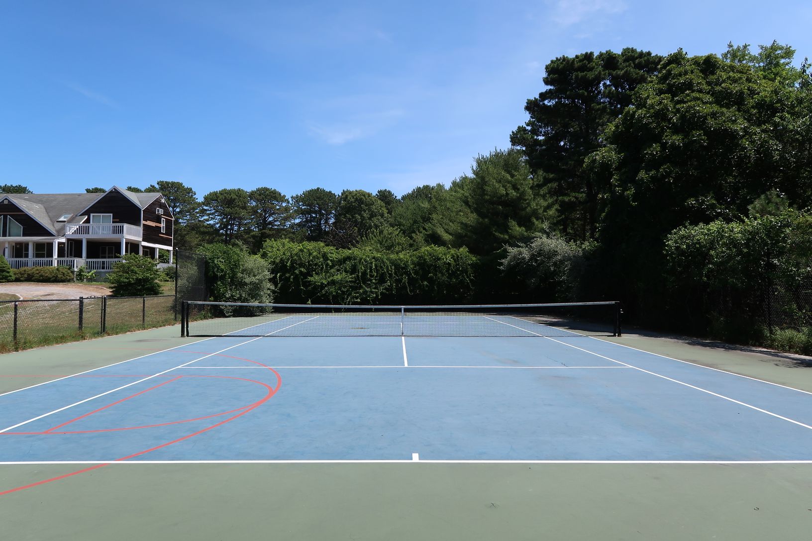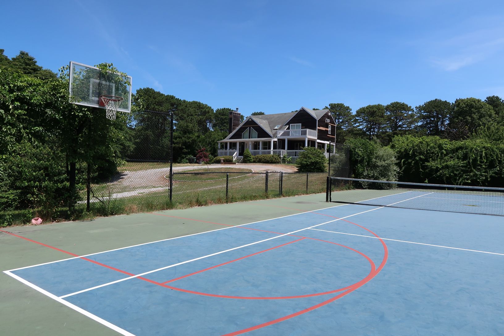 Located in Southampton, set on almost 2 acres, sits this 4 bedroom, 3.5 bath house with tennis. Make your way down the private cul-de-sac, pass the privacy hedging to the private circular driveway, are greeted by the spacious property and cedar sided house. Head inside to the open living area, with the family room featuring a vaulted ceiling and fireplace, dining area and kitchen. The house has four bedrooms, with one conveniently located on t