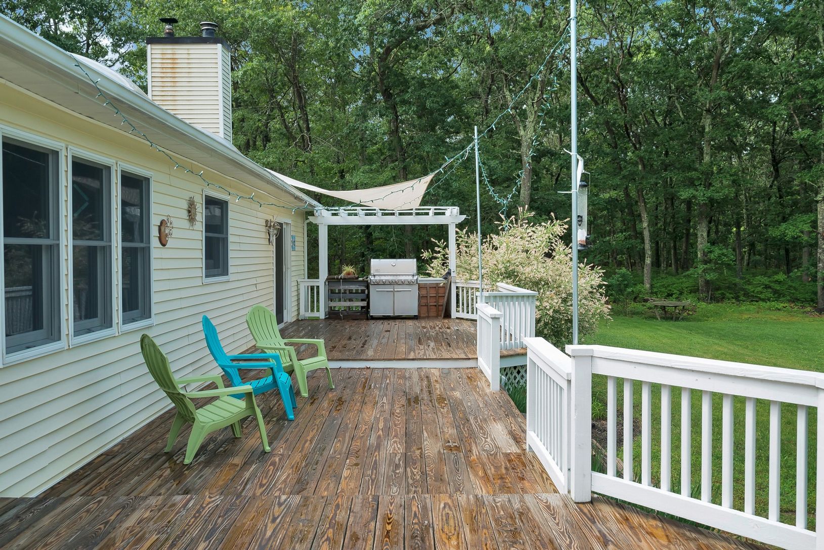 Expanded Ranch set on a premium lot that offers privacy, backs to green space and includes your own nature trail to pond. Wide open floor plan with recent upgrades of kitchen and new master bath. Hardwood floors, central air, vaulted ceilings, and much more. Longtree Pond is in the Hamlet of Eastport, Southampton town. Easy commute to NYC, points east or North fork wine country.