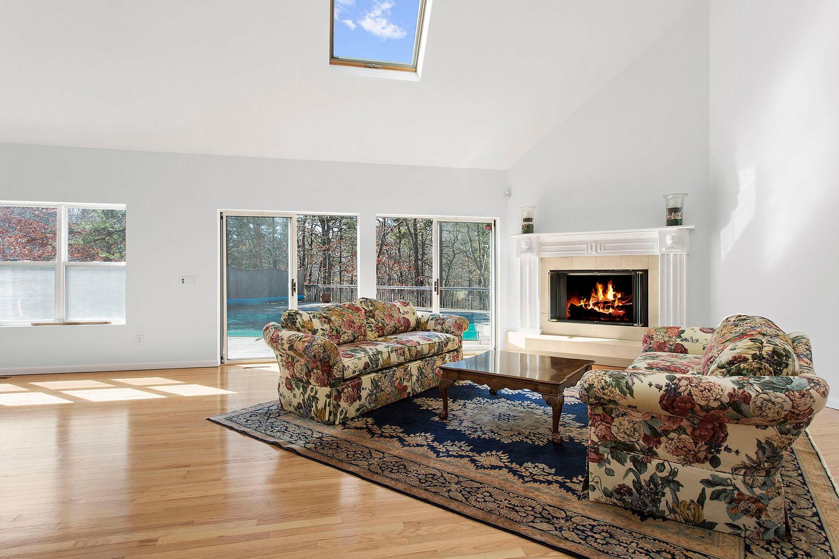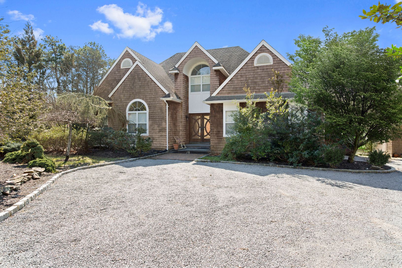 This elegant turn-key 5 bedroom, 3 1/2 bath Post Modern home is set in a secluded corner of Westhampton's Lakeside Lane. The open floor plan and vaulted ceilings let the sunlight into the living room/dining room area which flows seamlessly into the modern eat-in-kitchen that features granite counters and stainless steel appliances. This home is replete with newly refinished floors, freshly painted walls that simply welcome you in. On the fi
