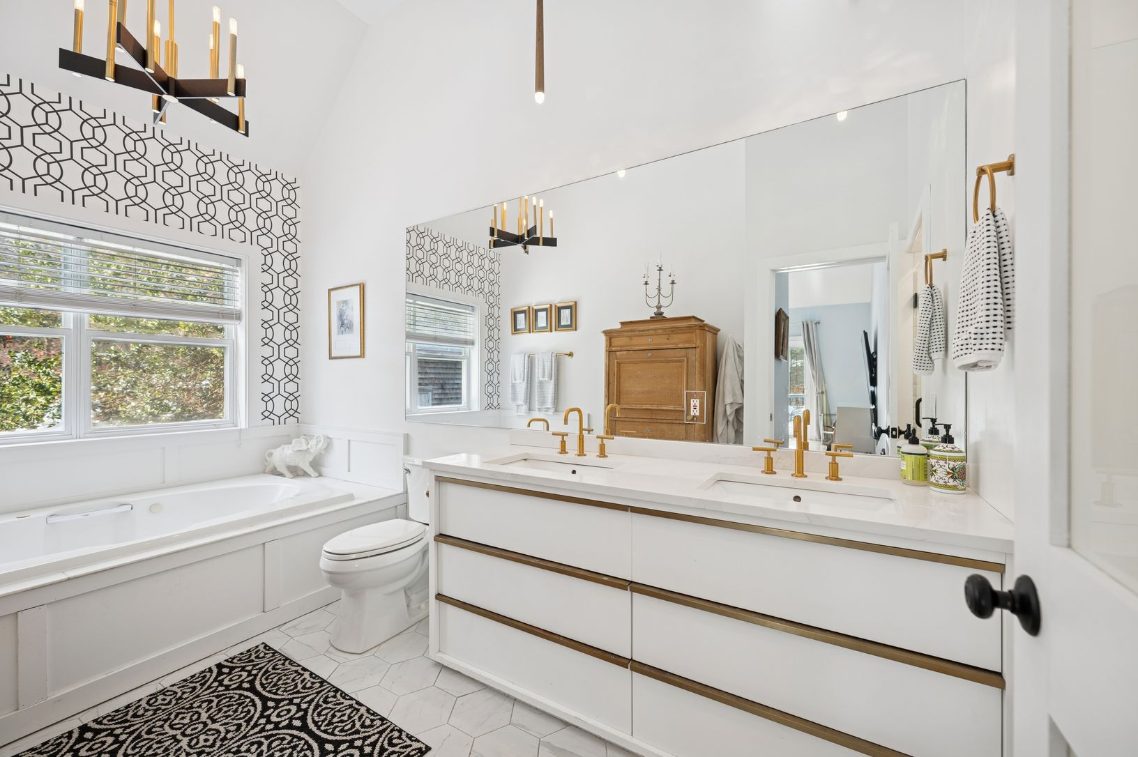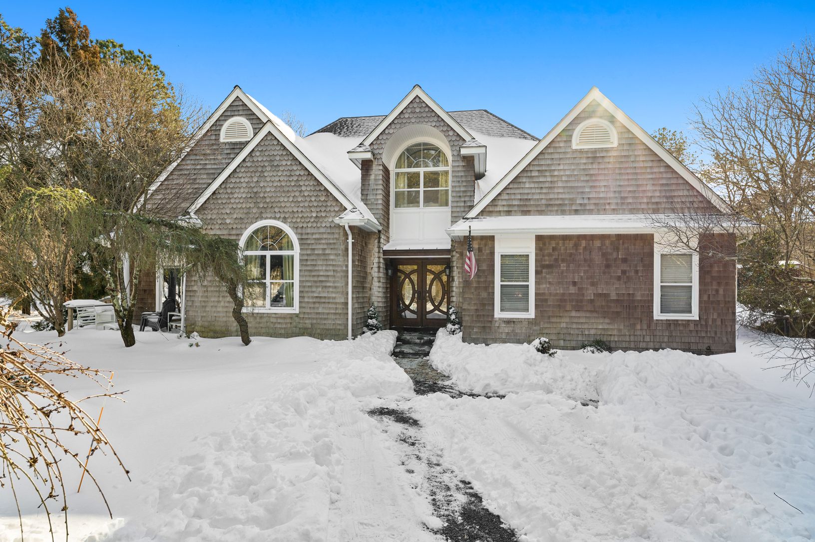 Experience the U.S. Open in effortless Hamptons style. This stunning lakeside retreat offers the perfect blend of privacy, comfort, and resort-level amenities - ideal for hosting, entertaining, and unwinding after a day at the Open. Set on 1.19 acres with 2,522 SF of thoughtfully designed living space, the home features 4 bedrooms and 3.5 baths, including two bedrooms on the first floor. The first-floor ensuite primary is a true sanctuary with