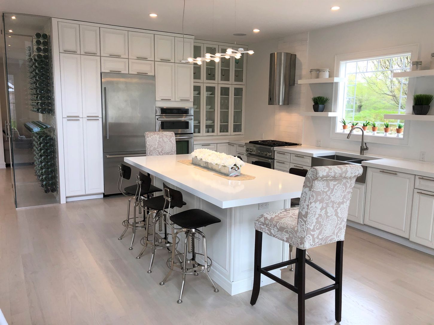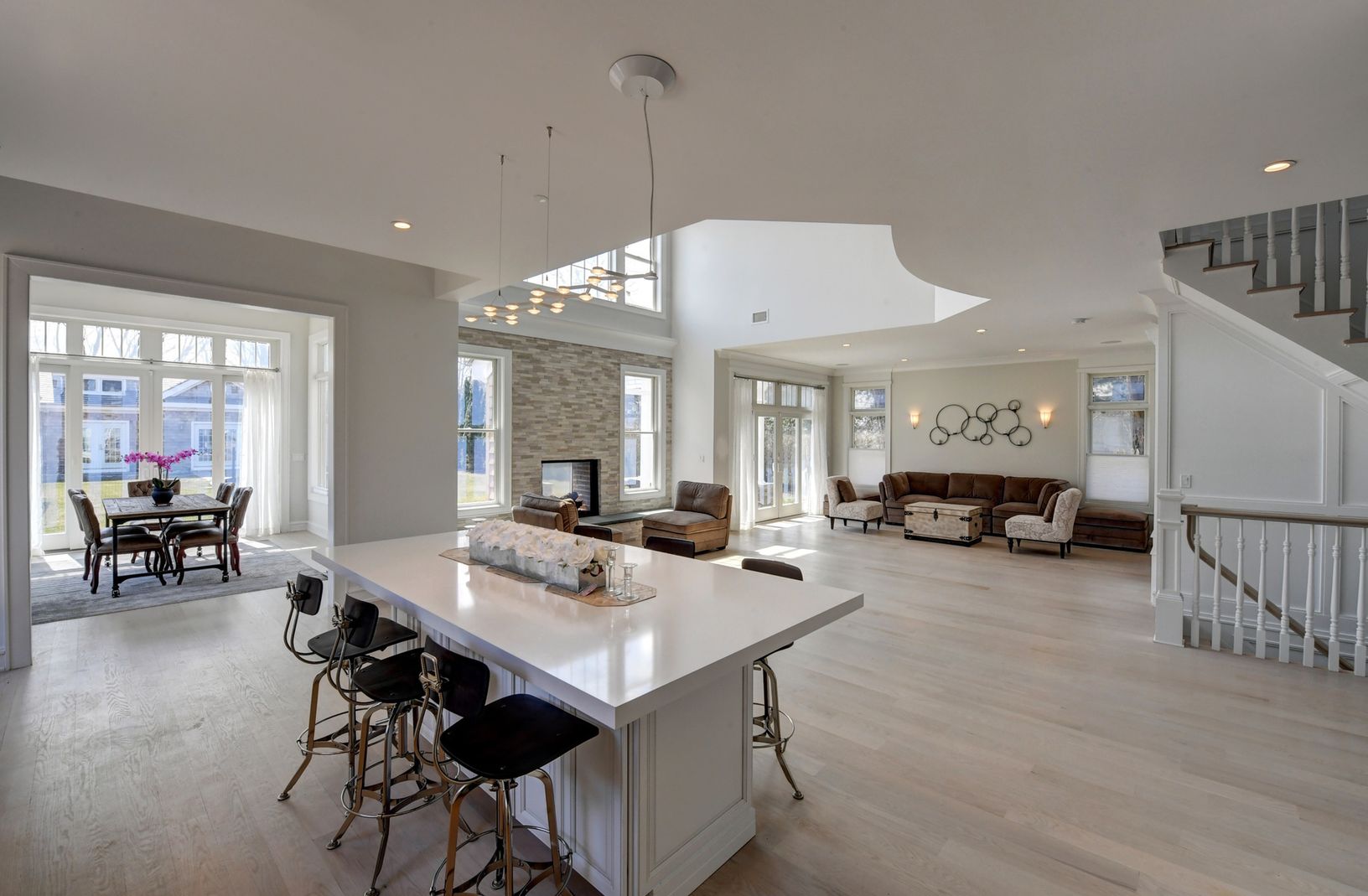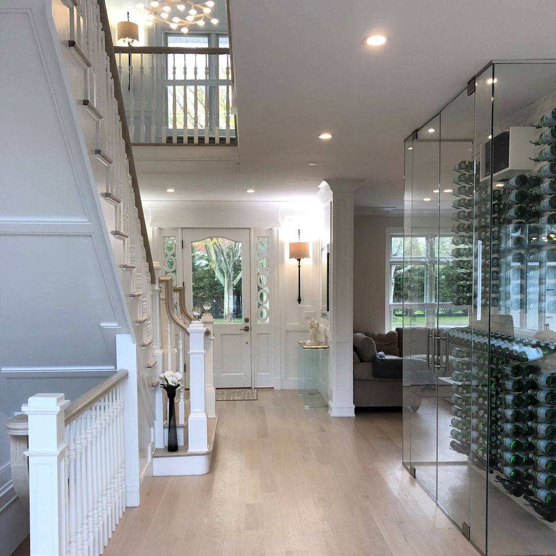 Southampton Village. Newly renovated Traditional South of the Highway in the heart of Southampton Village with 4 bedrooms and 4 baths in the main house and a guest house with one bedroom, bath, kitchenette and living room. The main house's great room features 10 foot ceilings, professional kitchen, living room, see-through fireplace to the back patio, and a large, glass enclosed wine closet. A media room and sunroom complete the first floor. A