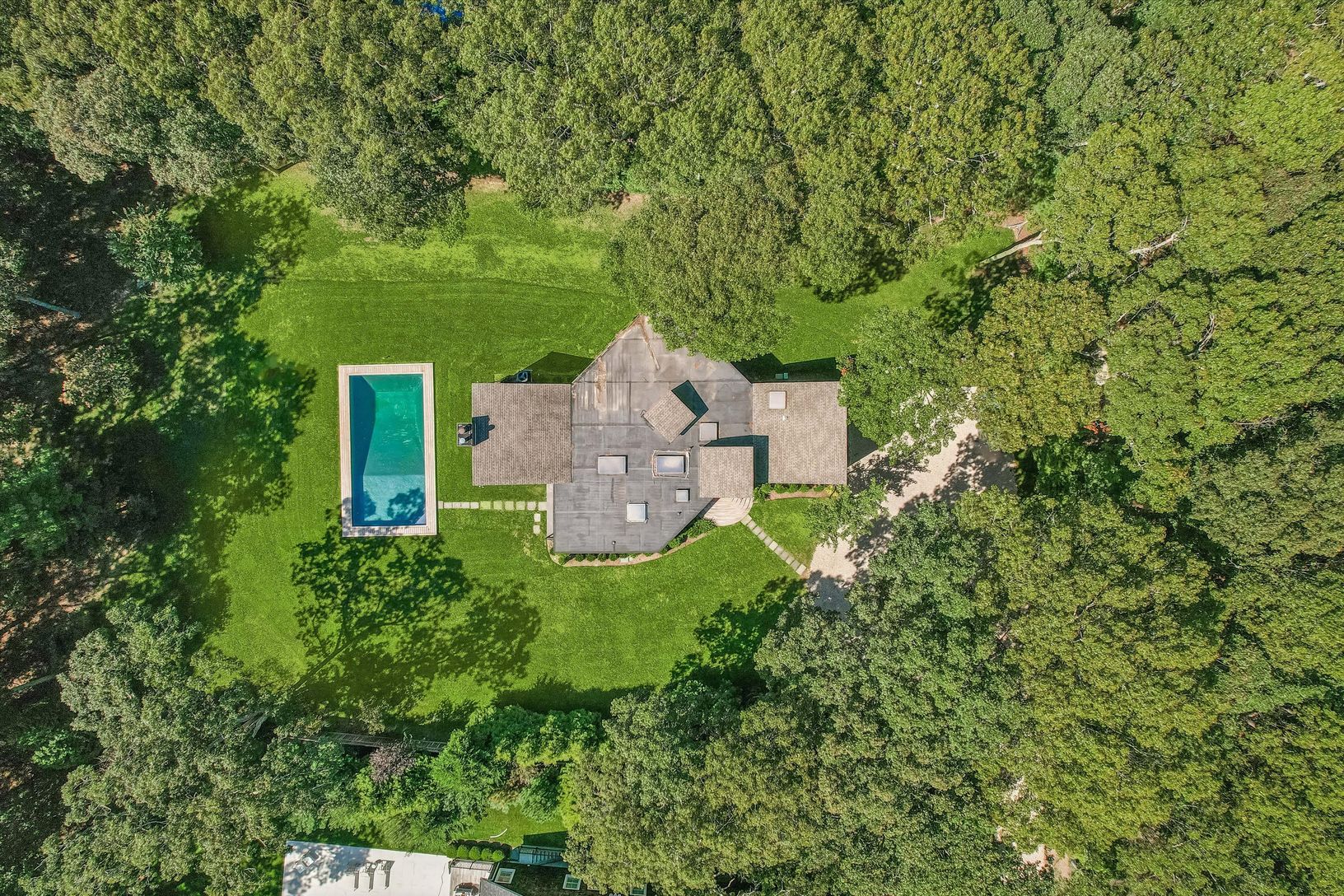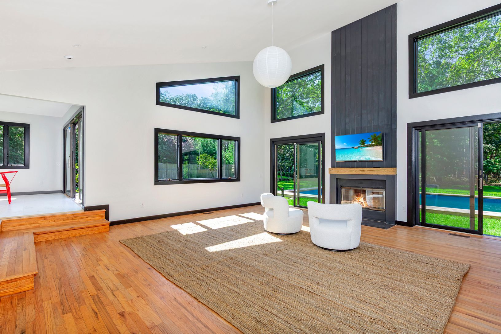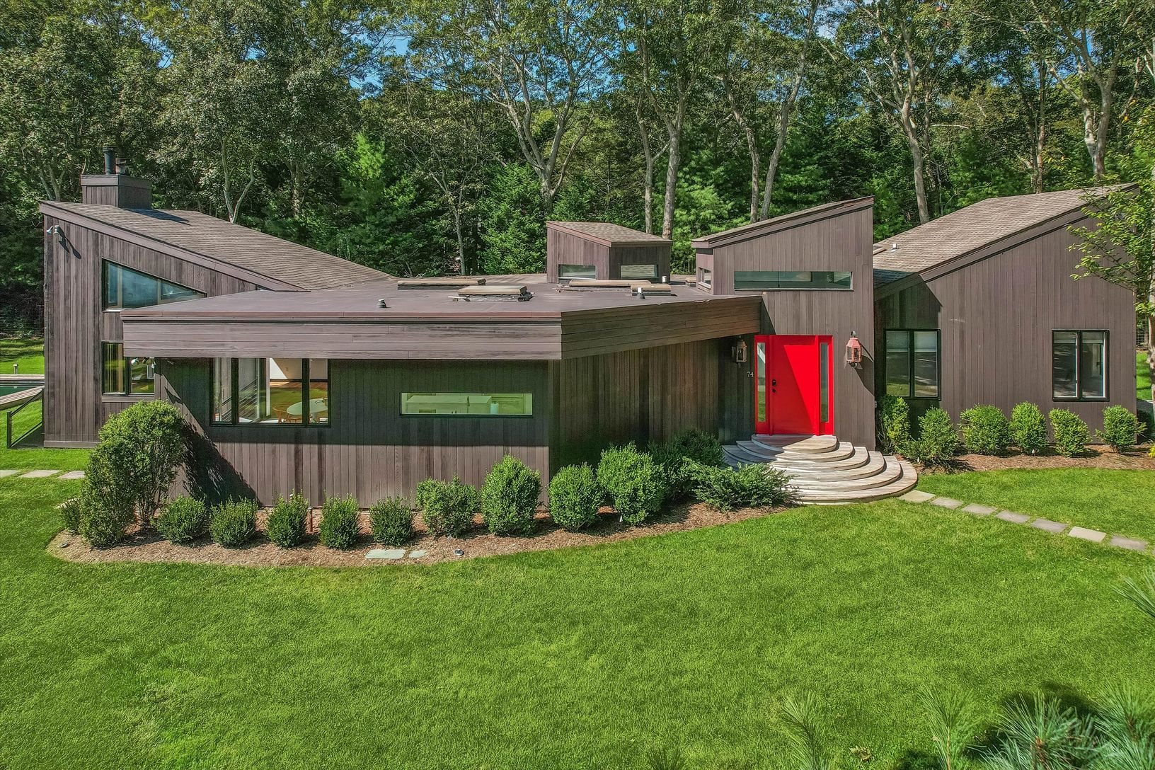 Introducing 74 Talmage Farm Lane, a newly offered retreat in one of the most desirable pockets of East Hampton's Springs. With its chic California aesthetic, this home combines clean modern lines, sun-filled interiors, and effortless single-level living. The layout is both stylish and functional, featuring a gracious primary bedroom suite and a private wing with three additional bedrooms, creating space and privacy for family and guests. At th