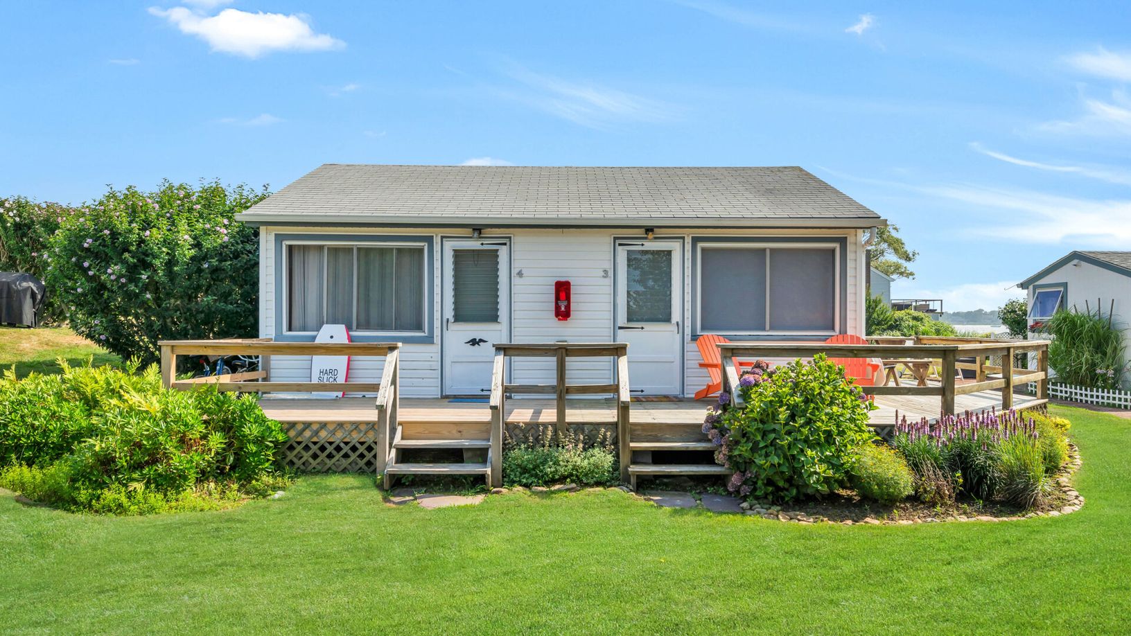 Sited on approximately two acres of lush land on Lake Montauk, this charming lakefront studio is perfect for a romantic couples retreat. Enjoy effortless indoor-outdoor living at the cottage, which is part of a lakefront co-op complex. The cheerful interior features a cozy, open concept floor plan with Pergo laminate wood floors and crisp white walls, all illuminated by natural light pouring through the windows and skylight. Curl up on the com