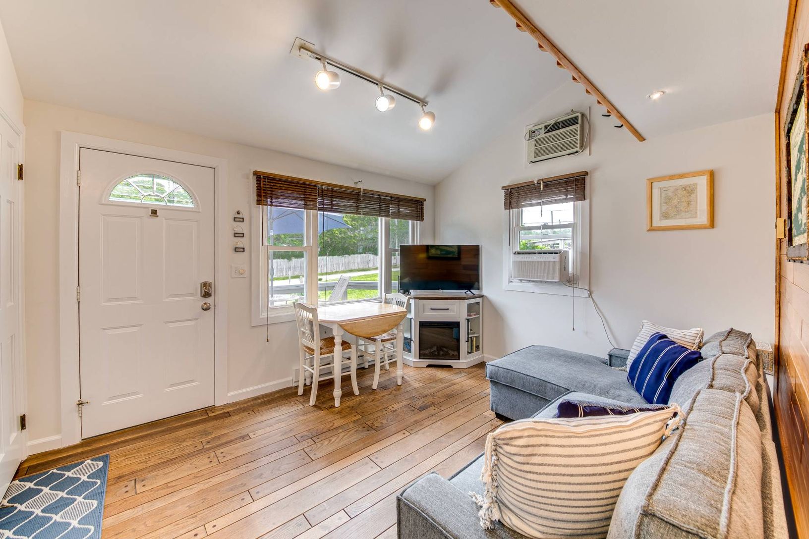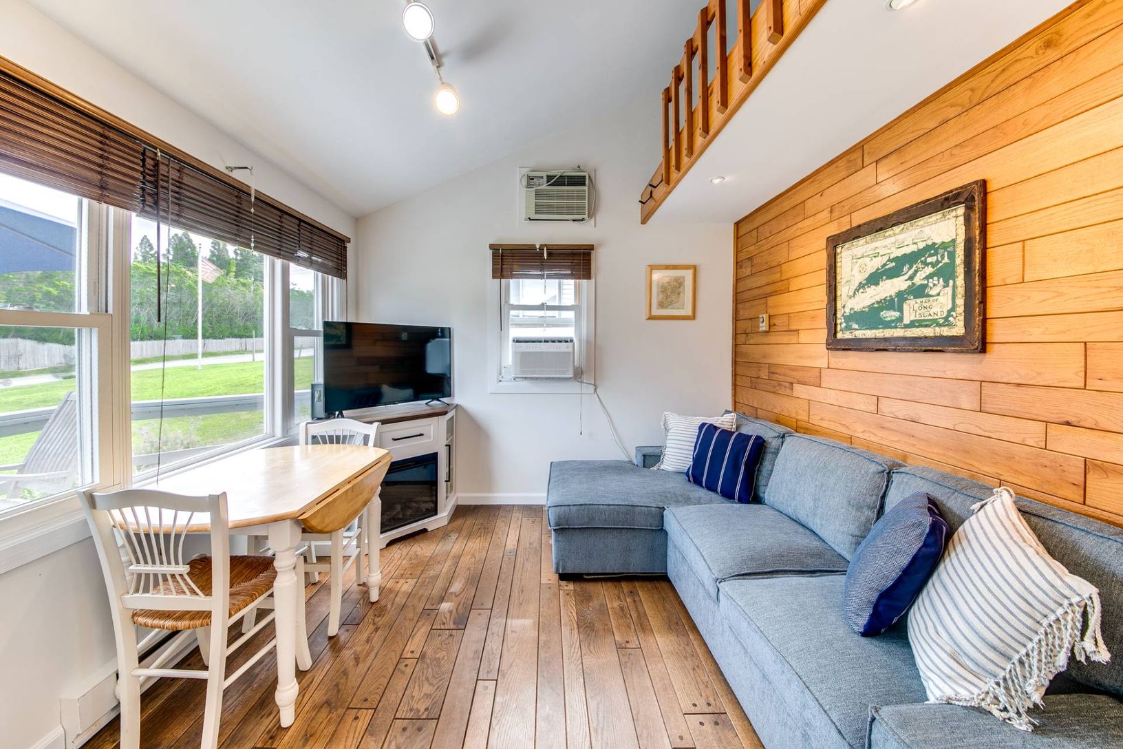 Super cute 1 bedroom, 1 bathroom cottage with a sleeper sofa sits right on Lake Montauk. It provides the perfect opportunity for enjoying the grounds and the lake. The unit can accommodate 4 people. A spacious wrap around deck extends your total living space. Evenings promise amazing sunsets. Washers and dryers on-site in separate building.