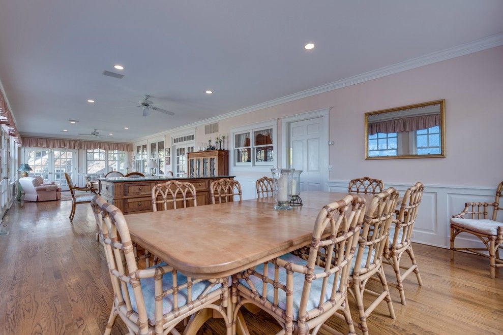 Waterfront compound on Peconic Bay in Southampton, in an extraordinary, private an natural setting. Property is sub-divided into 4 parcels...2 on land, which are boarded on three sides by natural beauty of Davis Creek and the other two on the private beach. Parcel #1 has a guest house with three bedrooms and three full baths, detached 3 car garage. Parcel #2 Main House has 7 bedrooms and 5.5 baths, open dining and lounging solarium the full