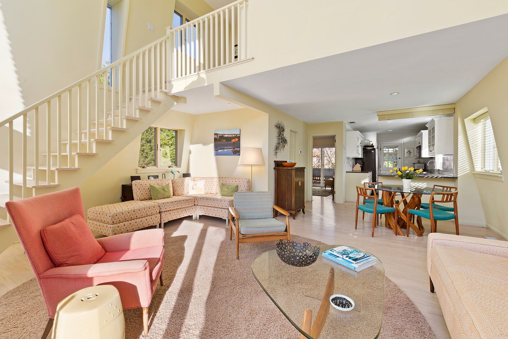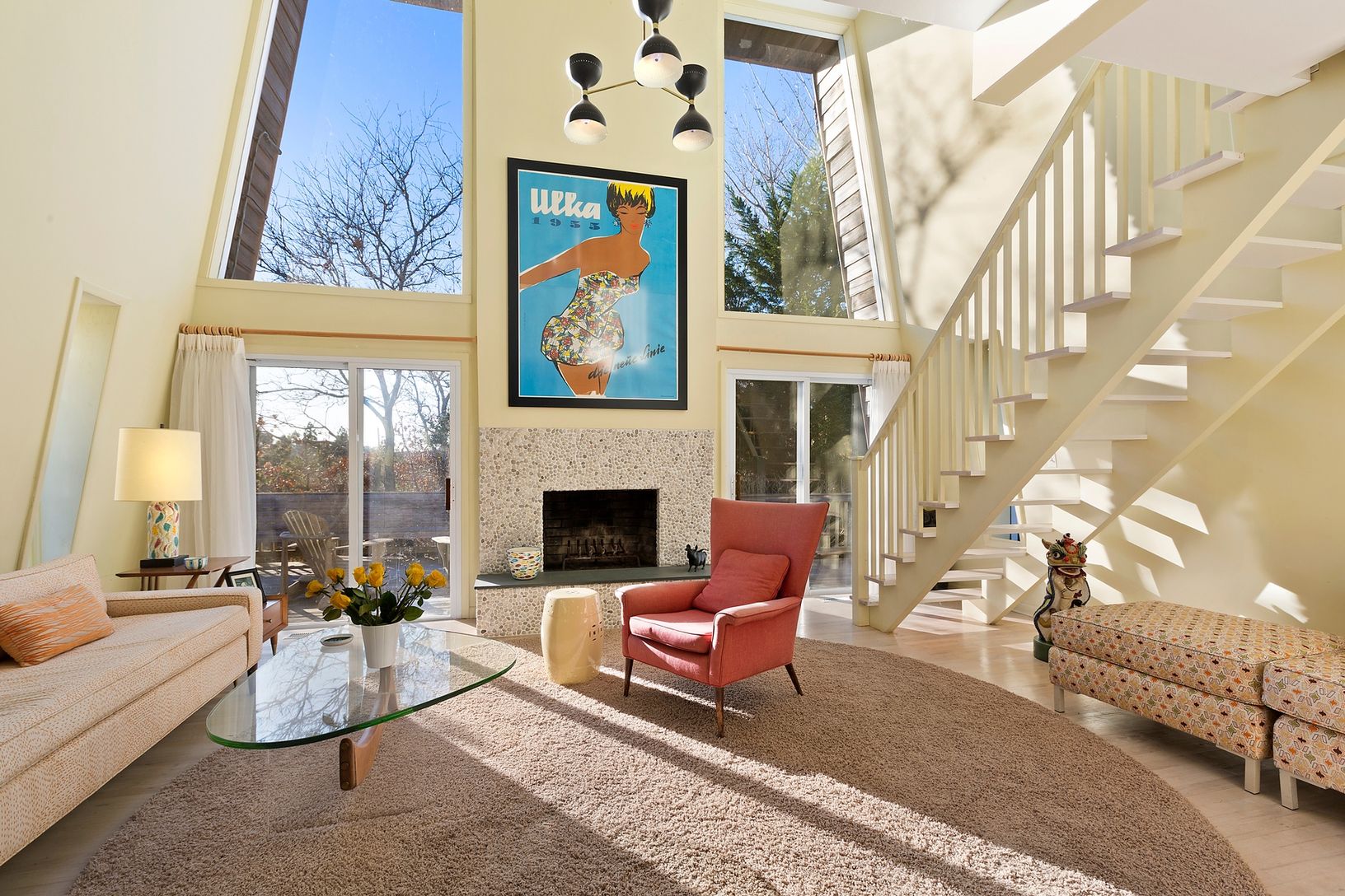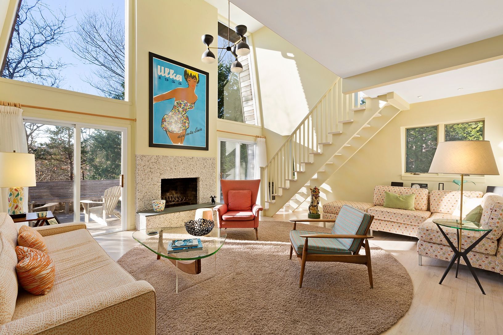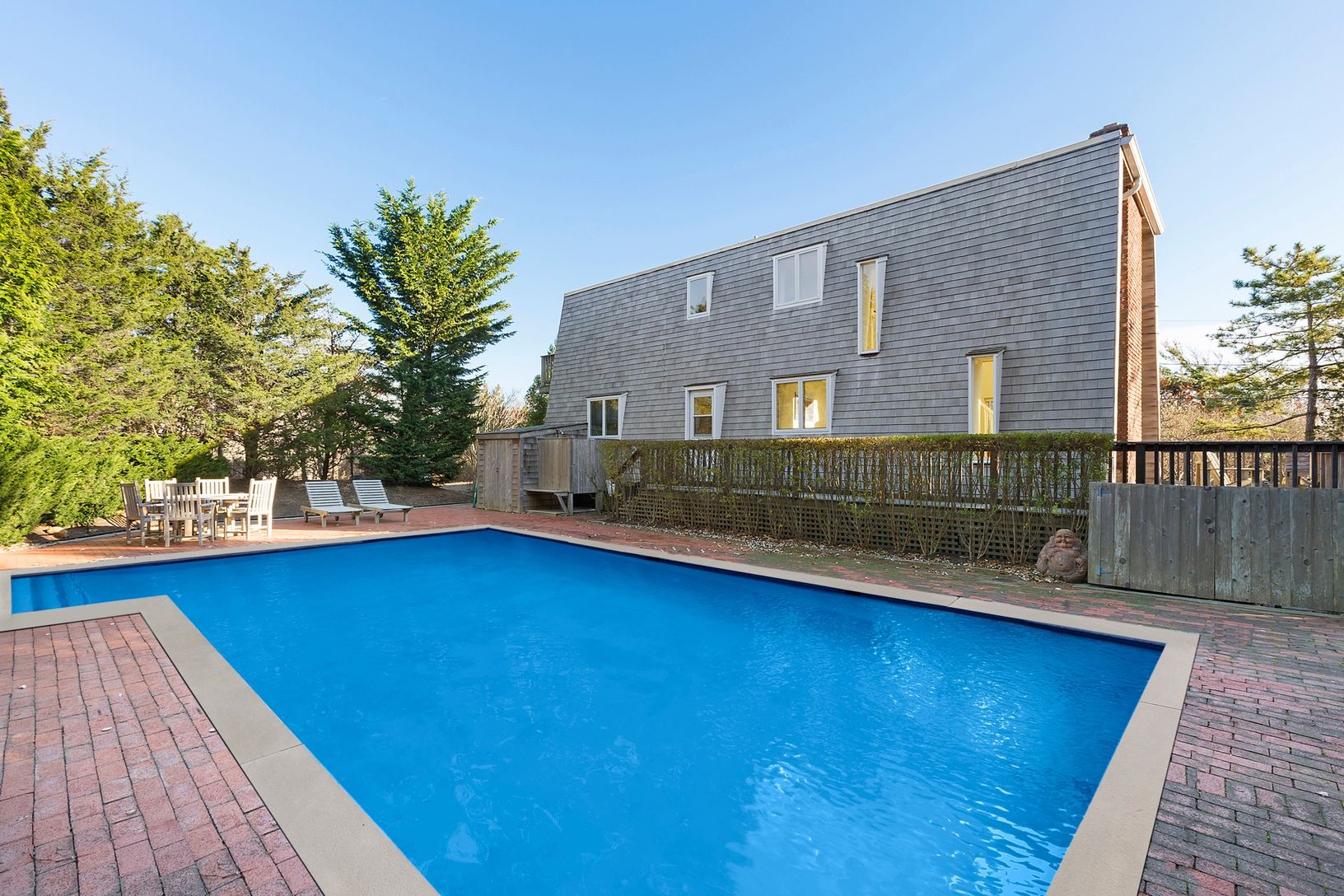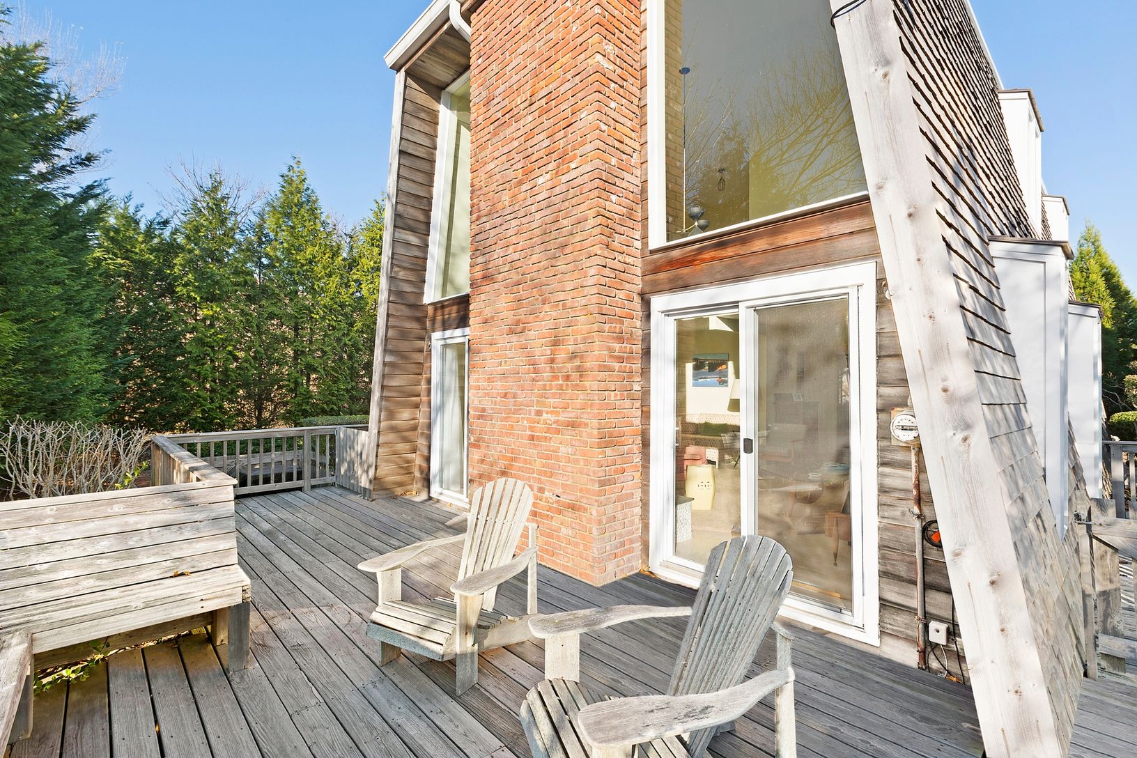 This Amagansett Dunes beach house has 3 bedrooms and 2 baths. Open floor plan, a wall of glass sliders with double height windows above lets light stream in, Access to nice deck space from the living room. Upstairs,a Master bedroom with private deck, additional bedroom and bath. Large property with heated pool surrounded by mature evergreens for year round privacy.