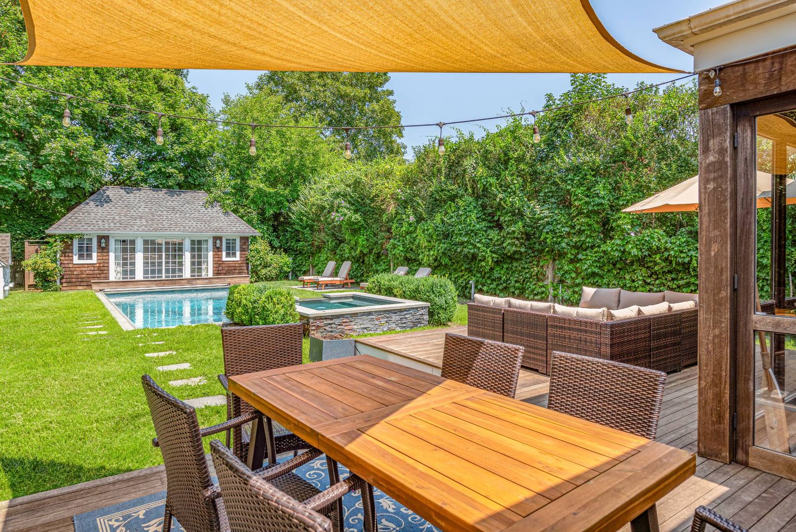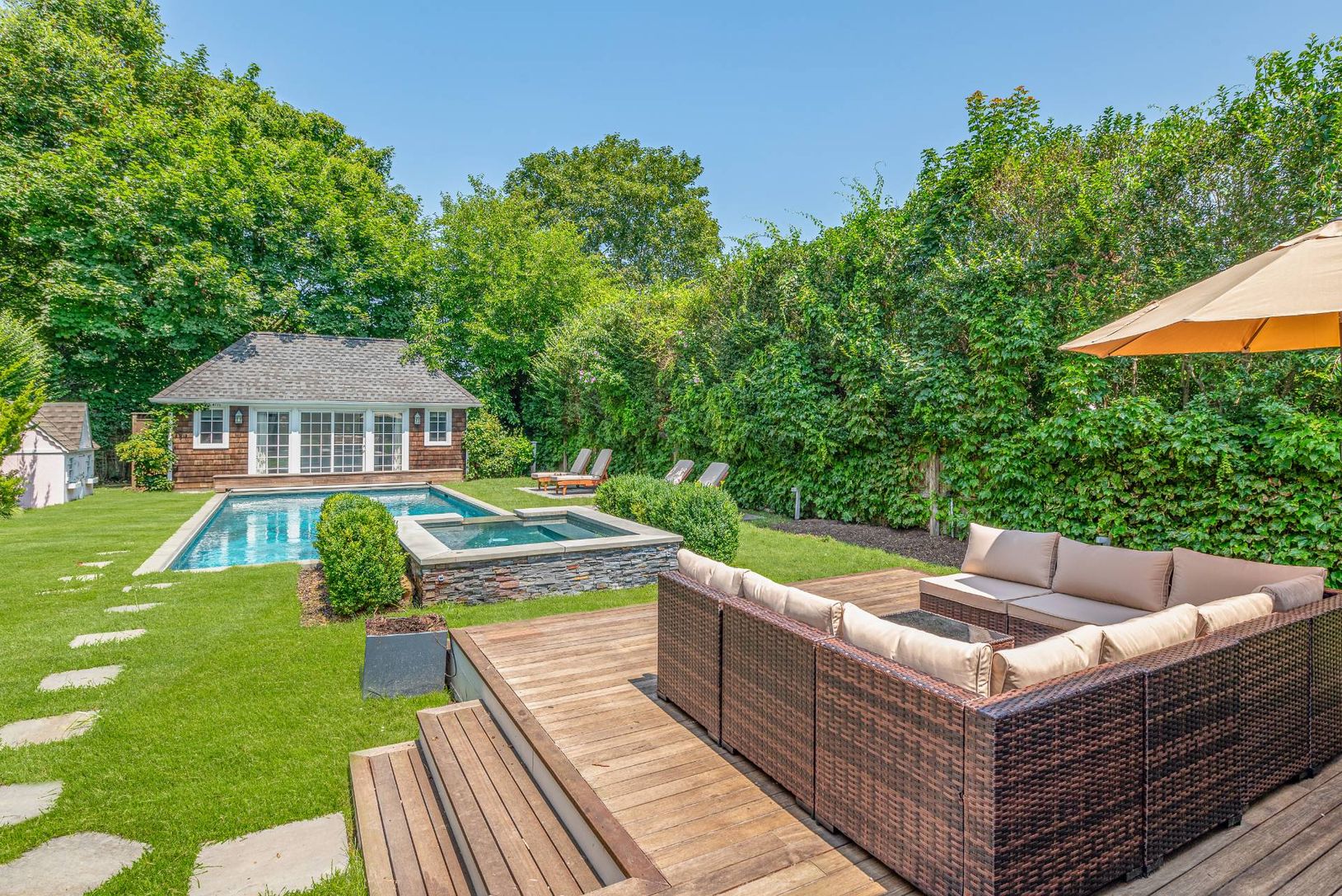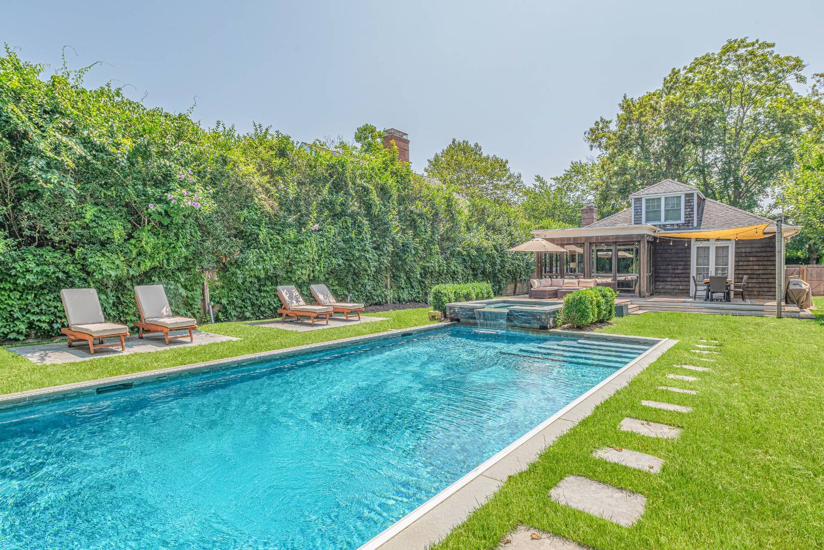 Set on a quiet street in the Village of Southampton is this 3-bedroom renovated home complete with a pool, spa and pool house. As you enter the property through a gate reminiscent of old town charm, you come upon a covered porch where you can sit and enjoy your morning coffee or afternoon tea. Once inside, there's an open and light filled space complete with a top-of-the line kitchen, a living area with a wood-burning fireplace and a lovely br