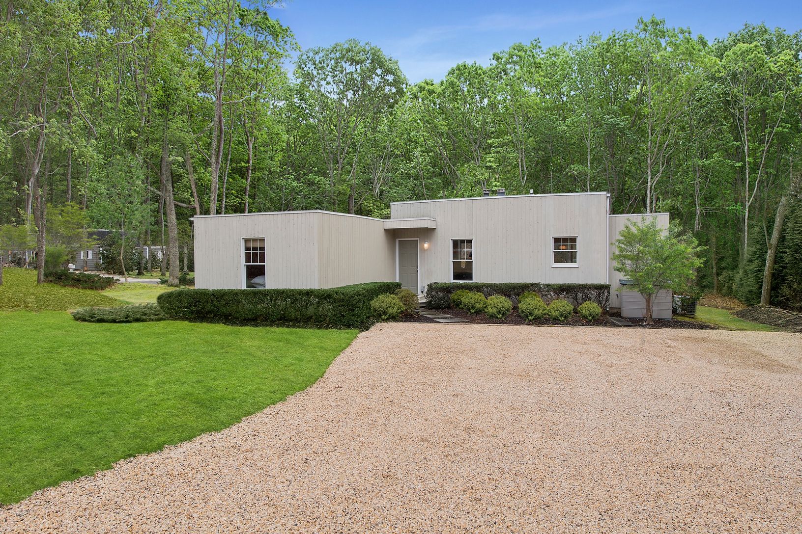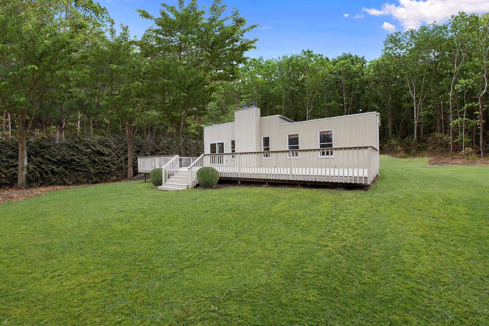 New to the market in Southampton and centrally located to all towns, restaurants and beaches is this adorable 3 bedroom, 2 bath contemporary on a shy half acre with room for pool, garage and expansion. Welcoming entry opens to light and bright living room with 10 foot ceilings and fireplace. Living room walks-out to an over-sized deck, perfect for relaxing and outdoor dining. Enjoy a relaxed, low maintenance lifestyle in this new-to-the-mar