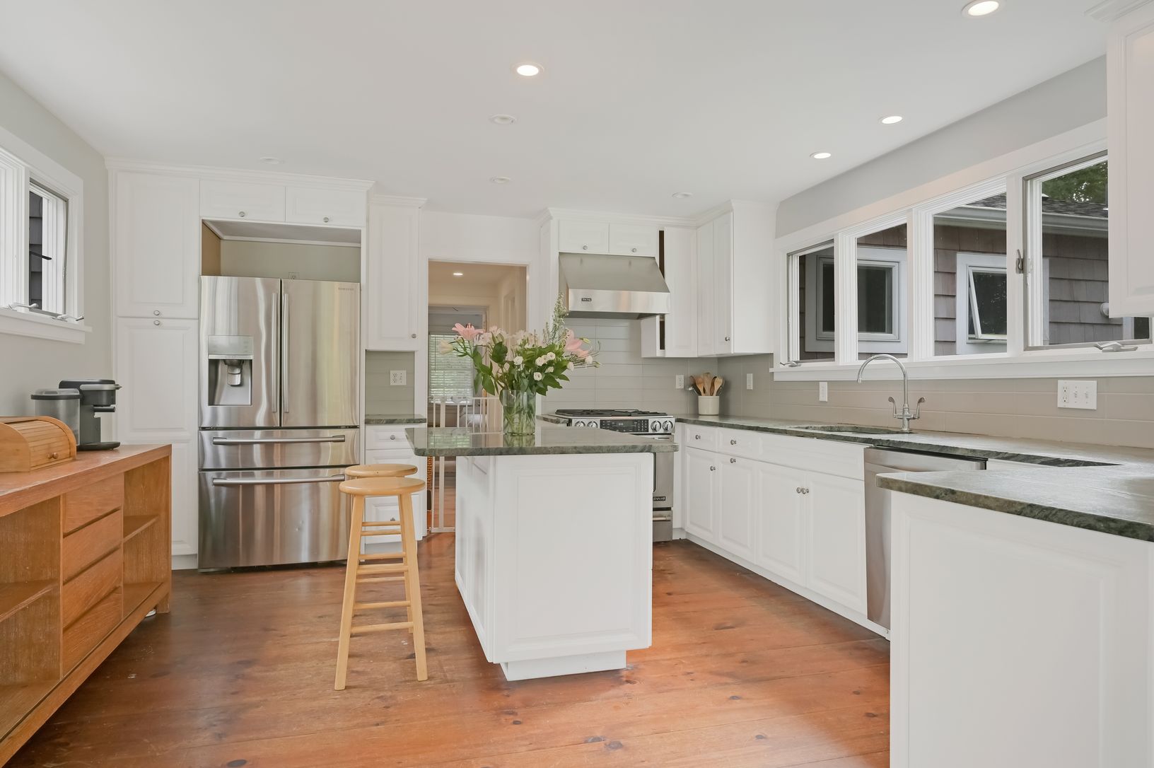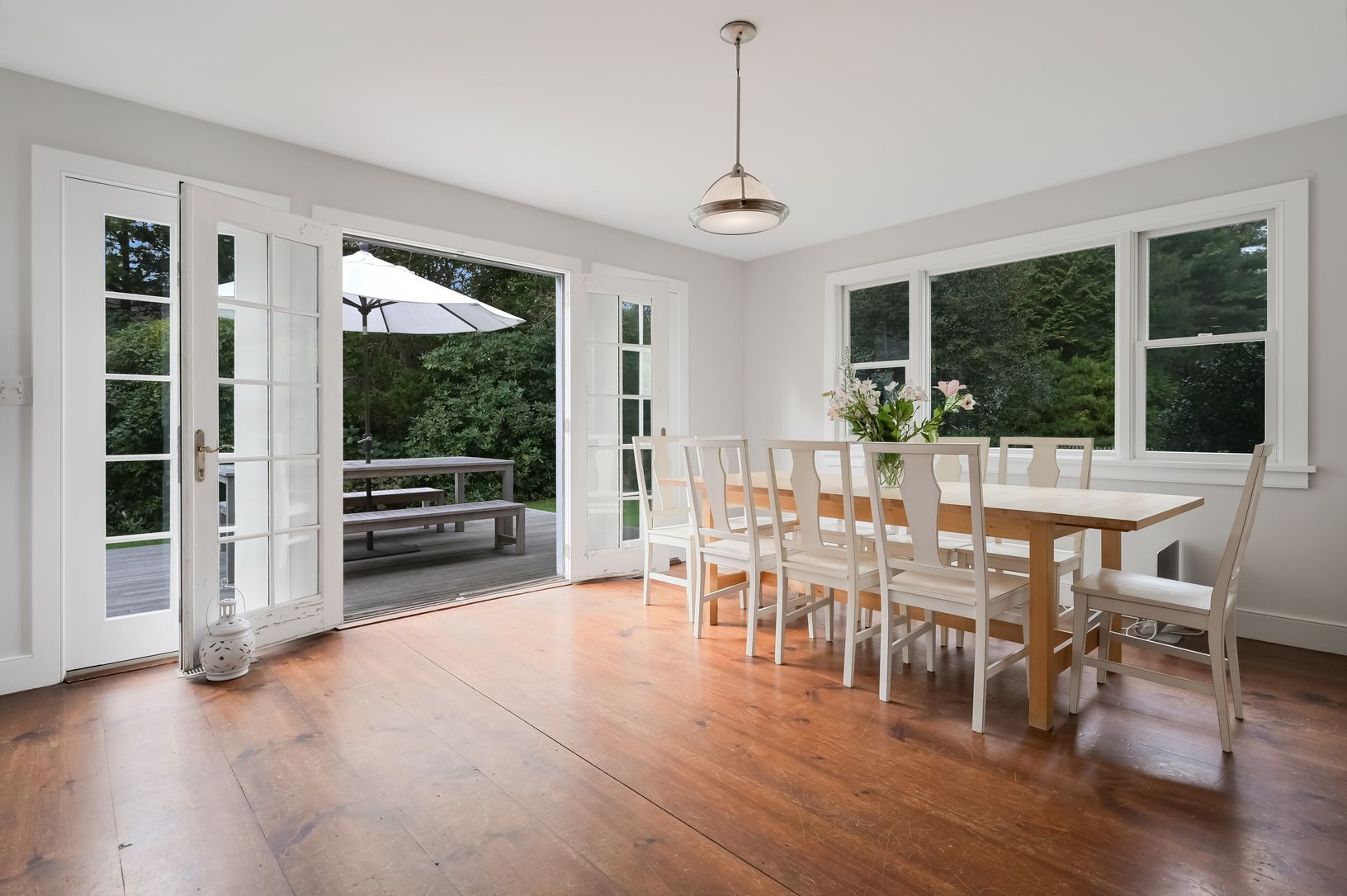 Just reduced and now an amazing value! This newly listed Farmhouse on 1.2 acres is perfectly located just minutes to Main Street shops and restaurants, as well as Amagansett's stunning ocean beaches. Set back off the main street, this property features a charming farmhouse, two large barns, and a heated gunite pool. The period home has been renovated while keeping many original features intact, including wide plank floors, beamed ceilings, and