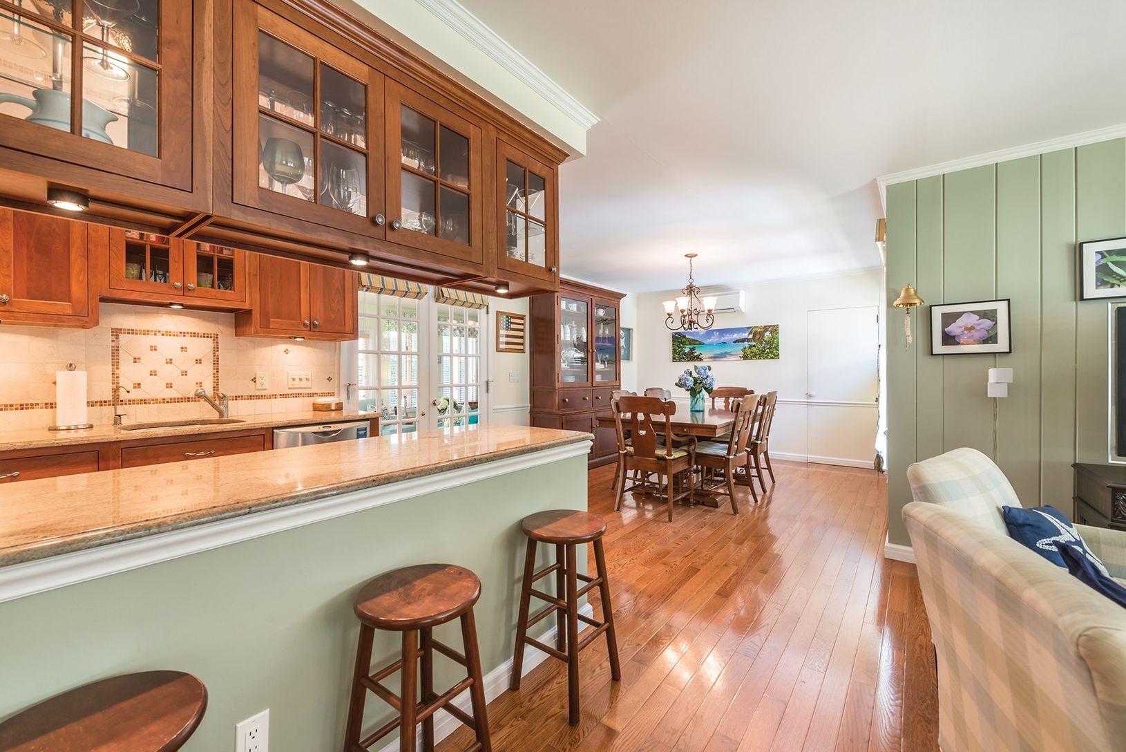 Sited on .51+/- acre in the much sought after Clearwater Beach Community, this two bedroom, two bath traditional home, with a full basement and attached one-car garage, offers an open floor plan that includes a wonderful kitchen and dining area as well as a lovely living room that looks out to the front porch and spacious front yard. The house also offers a family room with a wood-burning stove and a wall of windows and French doors that allow