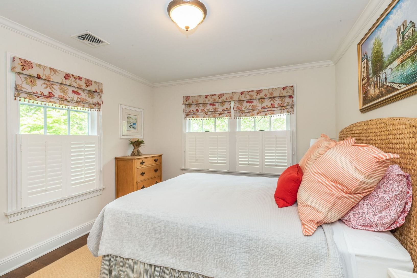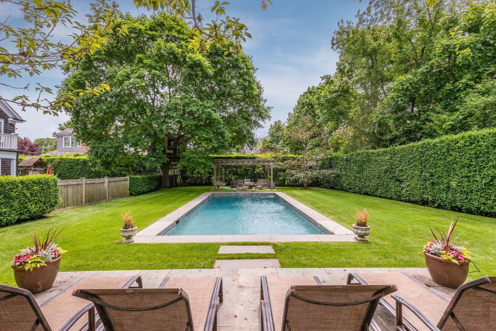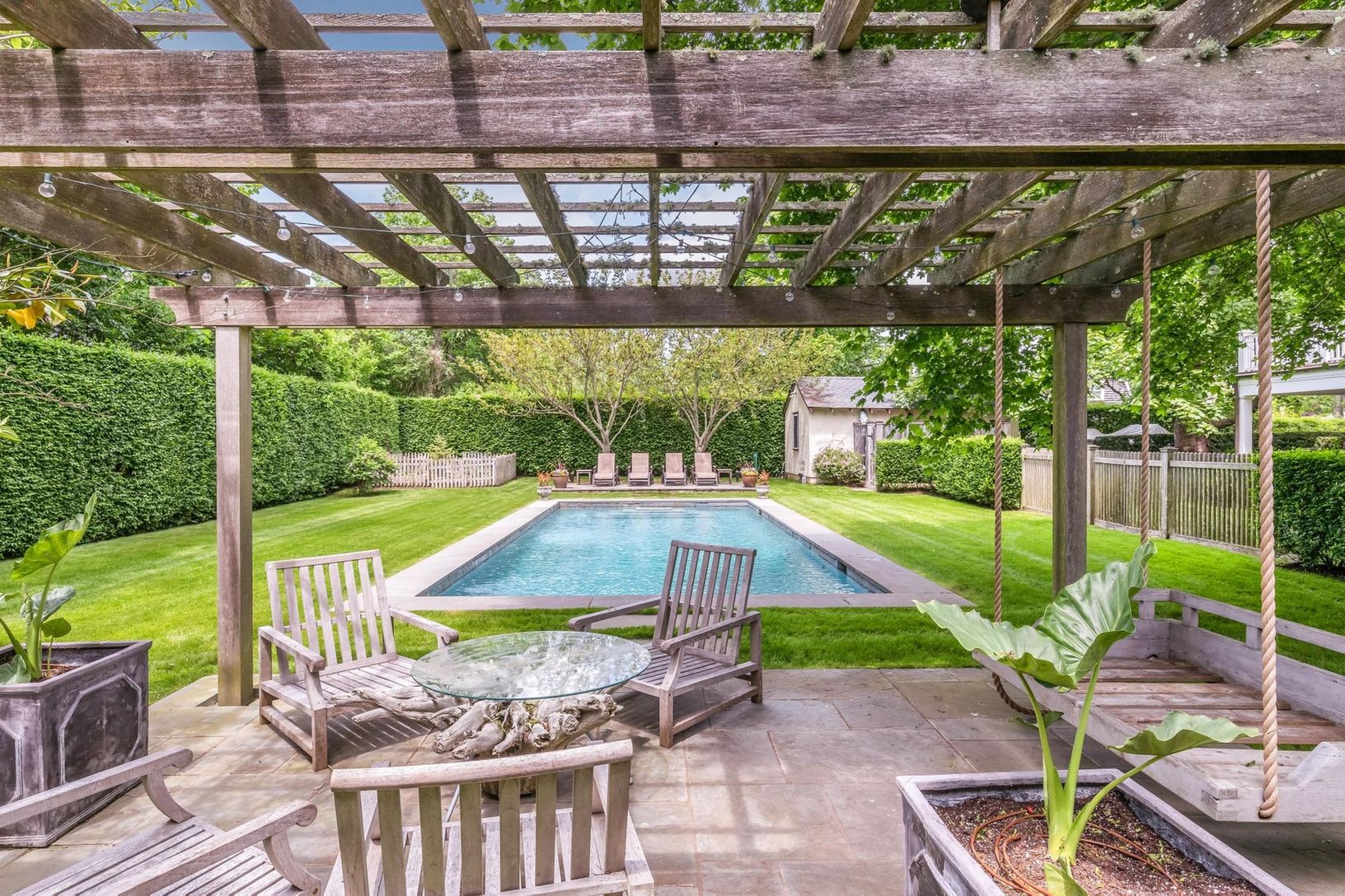 Located within minutes of all the amenities of Southampton Village is this beautifully renovated five-bedroom, four and one half-bath house. The home has a wonderful, warm feel with covered porch, outdoor fireplace, living room with fireplace, formal dining room, gourmet kitchen, central air conditioning, a heated gunite pool and an outdoor shower.
