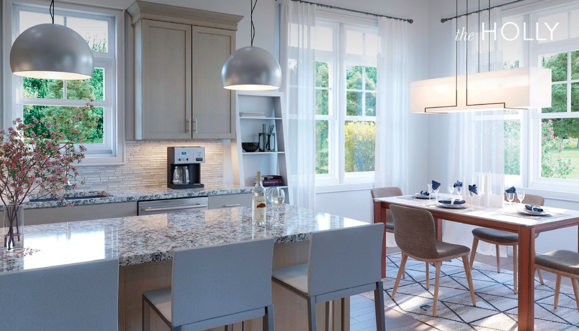 Quietly nestled in the charming hamlet of Cutchogue, in the town of Southold, Harvest Pointe provides a graceful way to live for active-adults 55+. The Holly Model offers sophisticated style with a modern layout design, a spacious three bedroom home featuring minimum 9'-12' ceilings in main rooms on first floor, 8' recessed panel doors in most rooms on first floor and 3.25" wood flooring in main rooms on first floor, with choice of stains. Gre