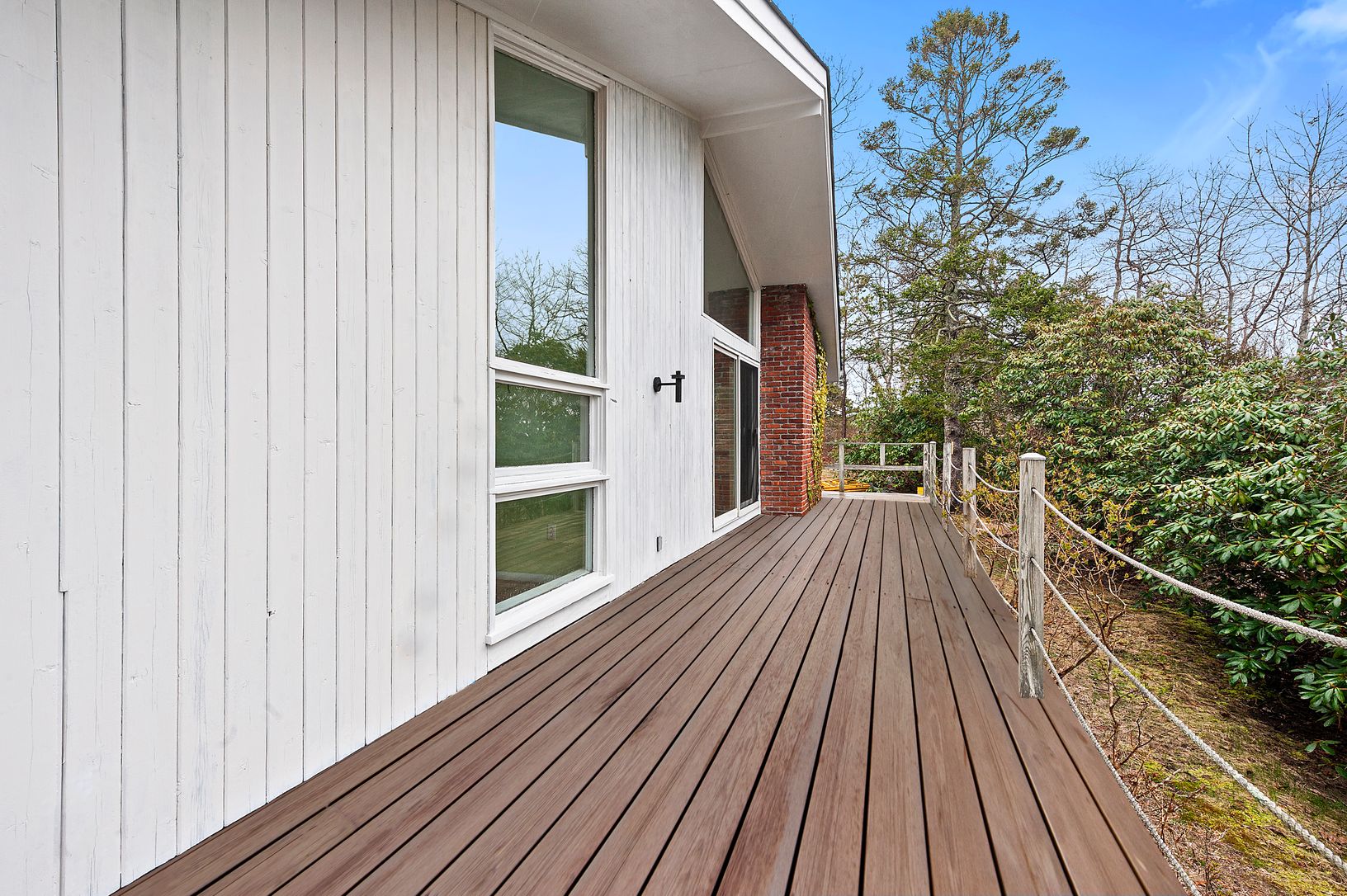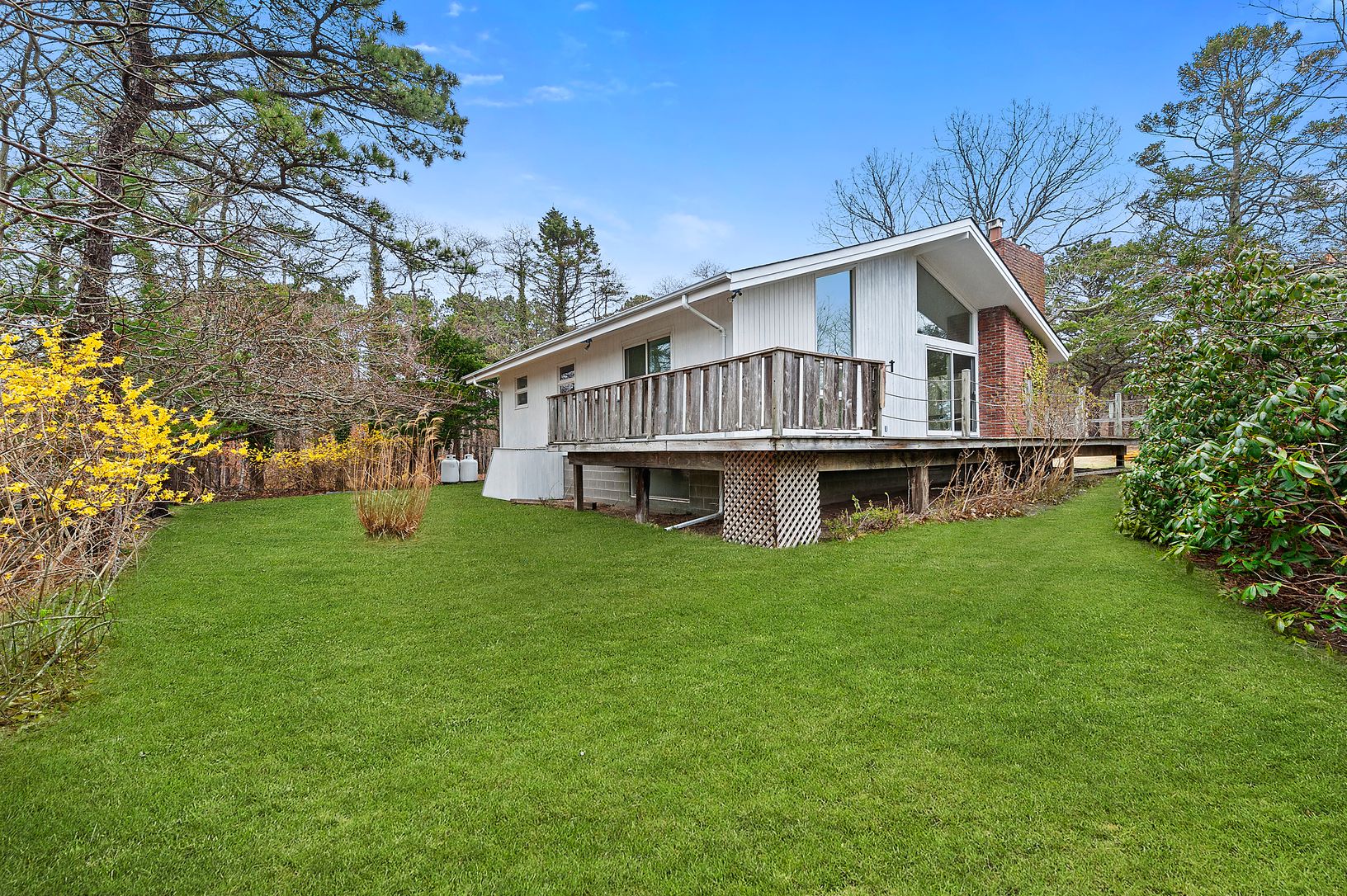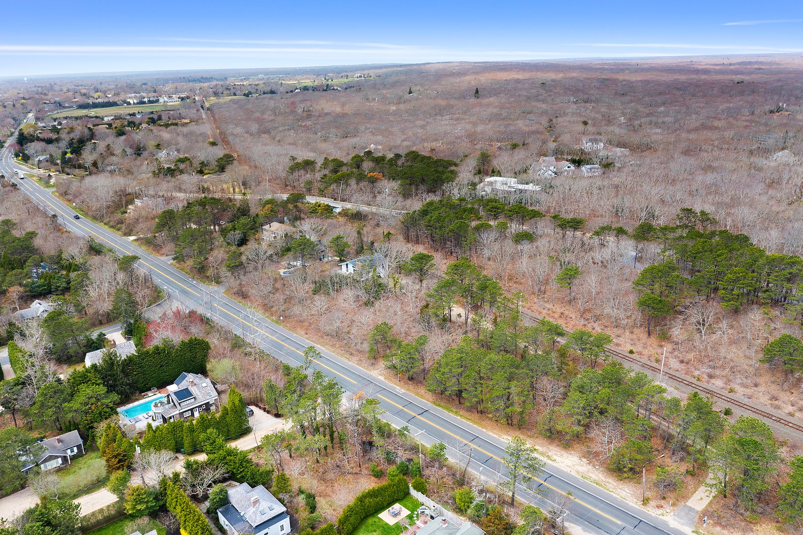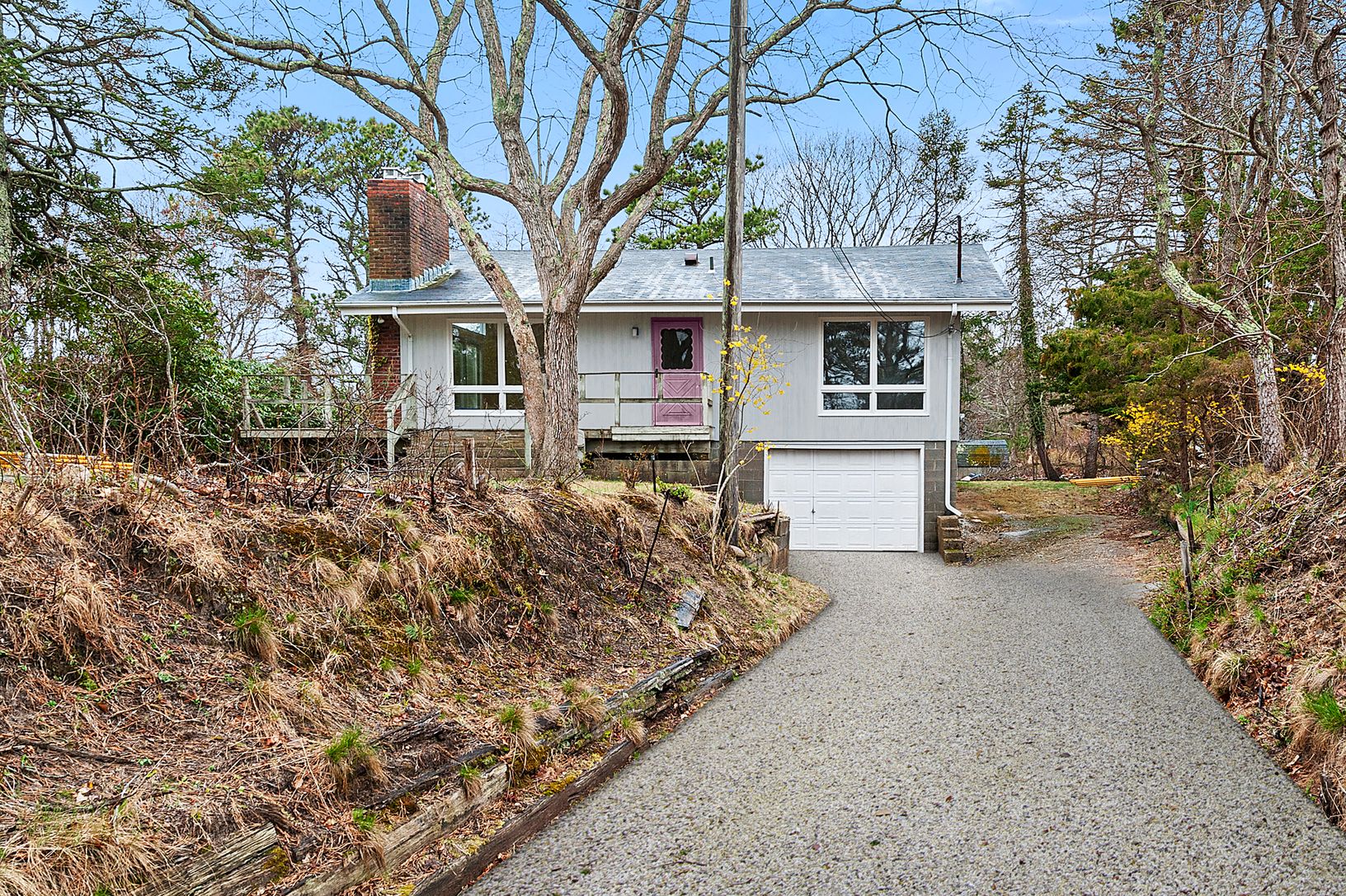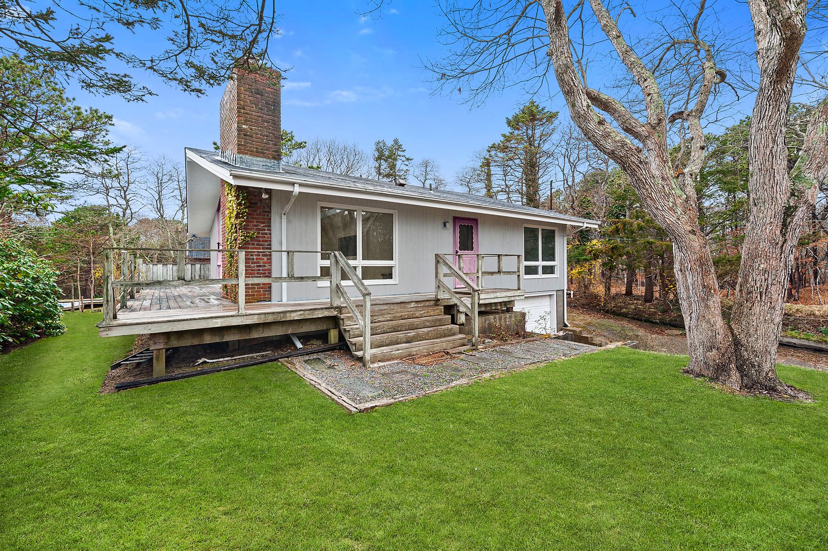 This hilltop acre plus Amagansett lot and 3 bedroom 1.5 bath house is across from the Dunes and overlooks the area all the way down to the ocean. Located just North of the highway this unique property has a long driveway up to the top of the hill. The older home has a nice bright and open layout with southern exposure and big windows in the living room and office. A large wrap around deck access the front door and two sliders. With some TL