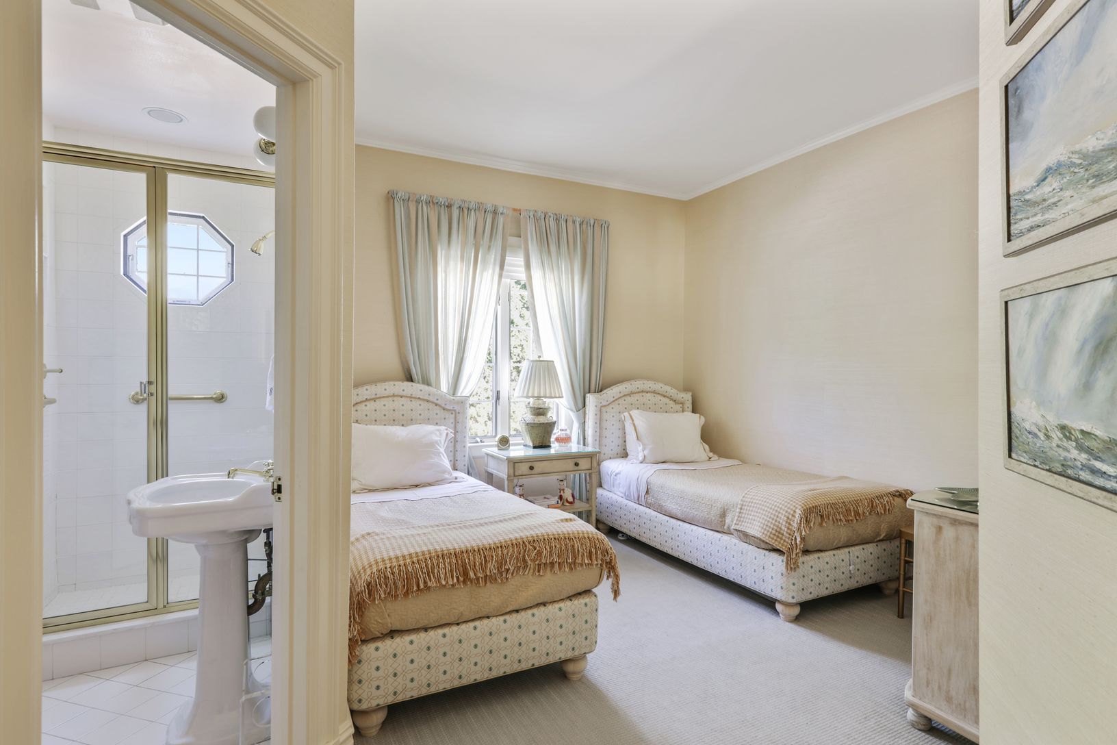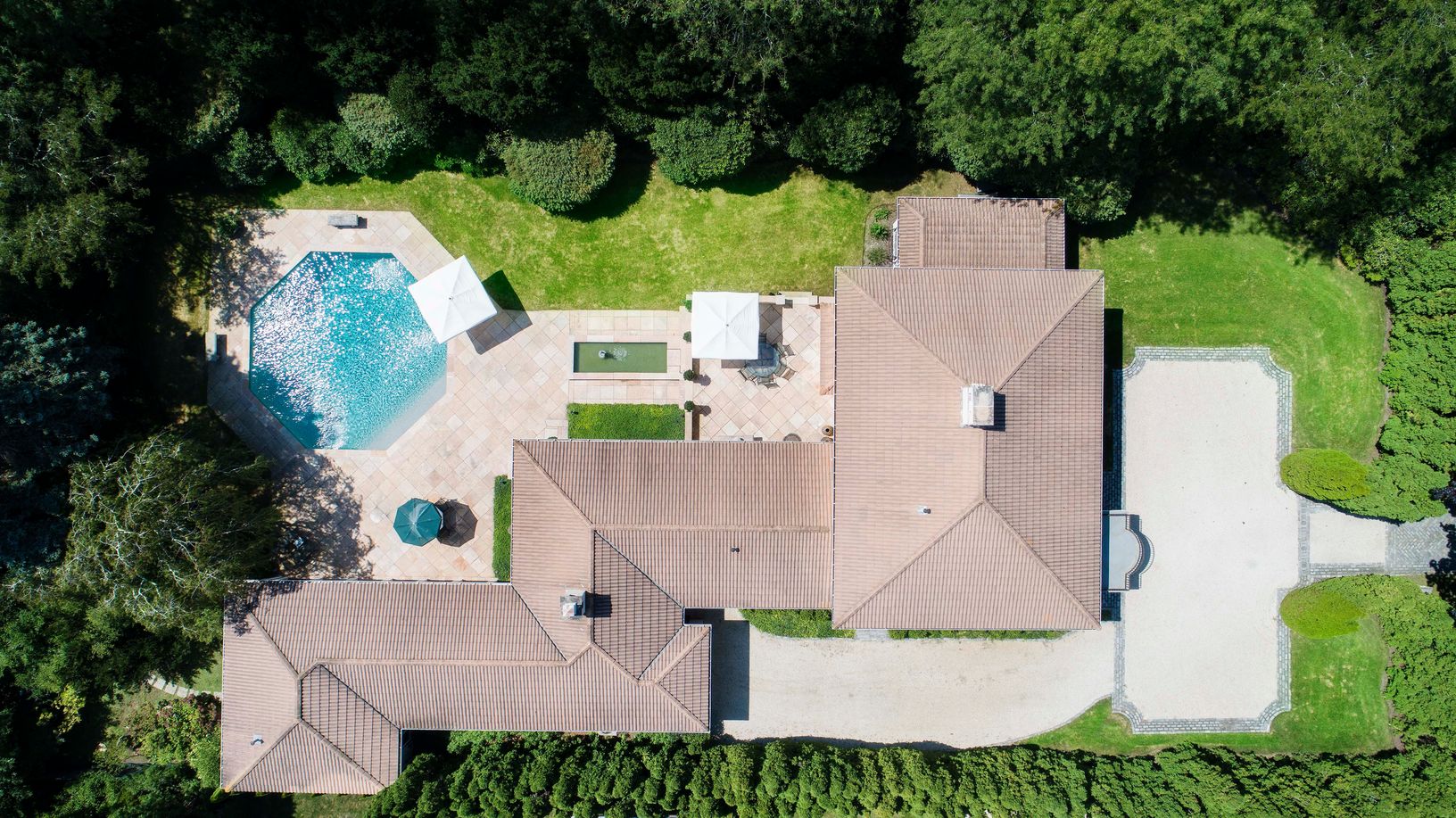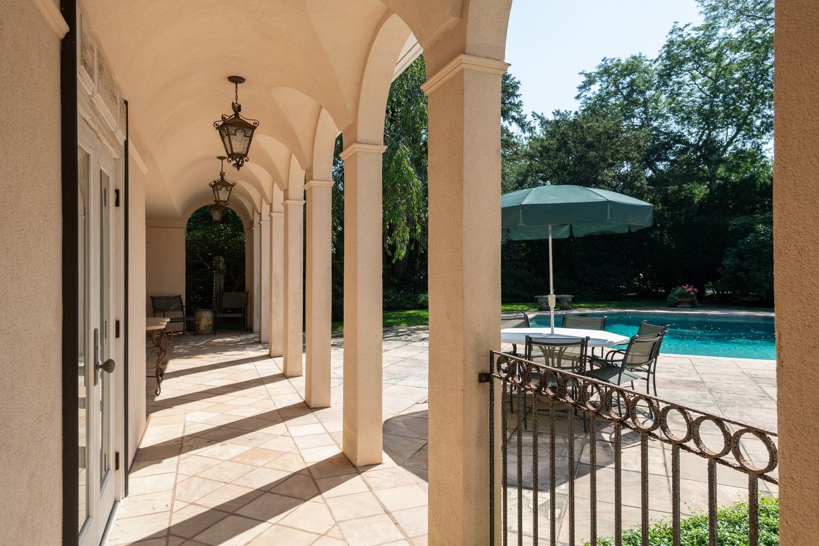 Behind the hedges, in the heart of the Southampton Village Estate Section sits this five-bedroom, five-and-one-half bath Mediterranean Villa on a beautifully landscaped +/- half acre. Impeccable indoor and outdoor settings create a balanced home with ample space to relax and entertain. The home opens with a double-height entrance, living room, sitting room, and a bright sunroom overlooking a multilevel terrace and fountain. The first floor has