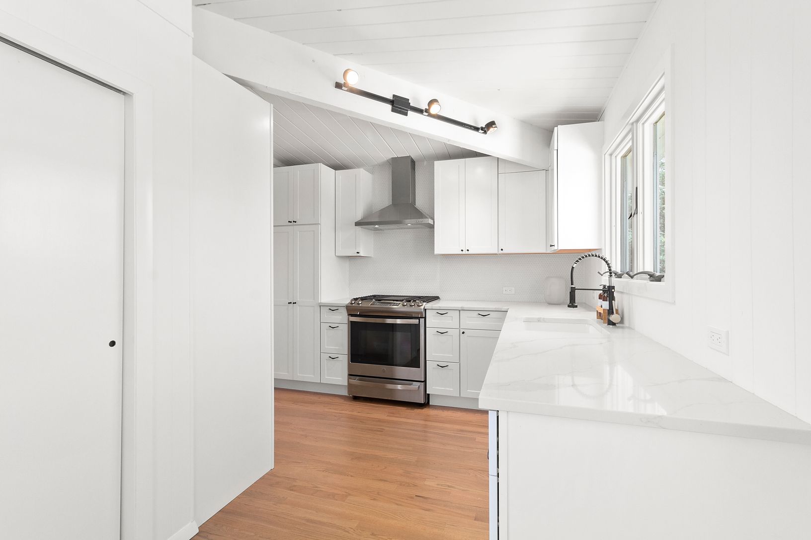 New to the Market. Meticulously renovated Contemporary located just two blocks from the Atlantic Ocean's beautiful white sand beaches. Amagansett is a happening town right now and this recently updated home is perfect for entertaining and relaxing beach days. An open floor plan offers a main floor living area with vaulted ceiling, a new kitchen with top of the line appliances, a dining area, powder room, and walls of glass sliders leading out