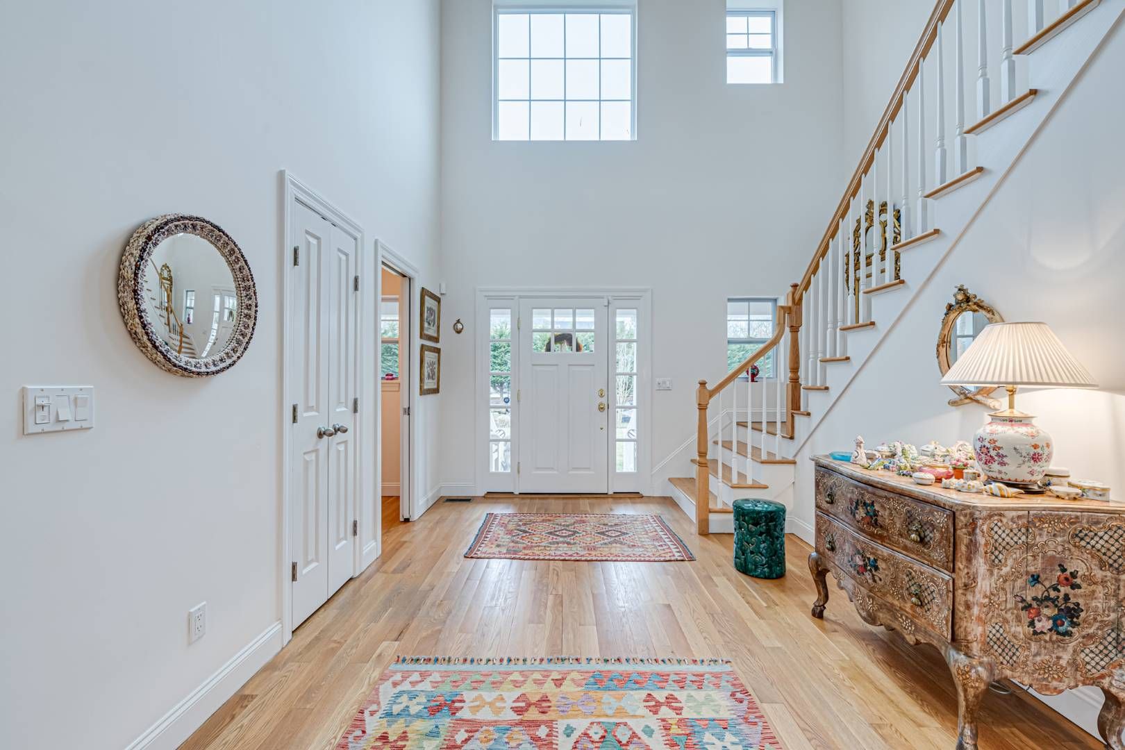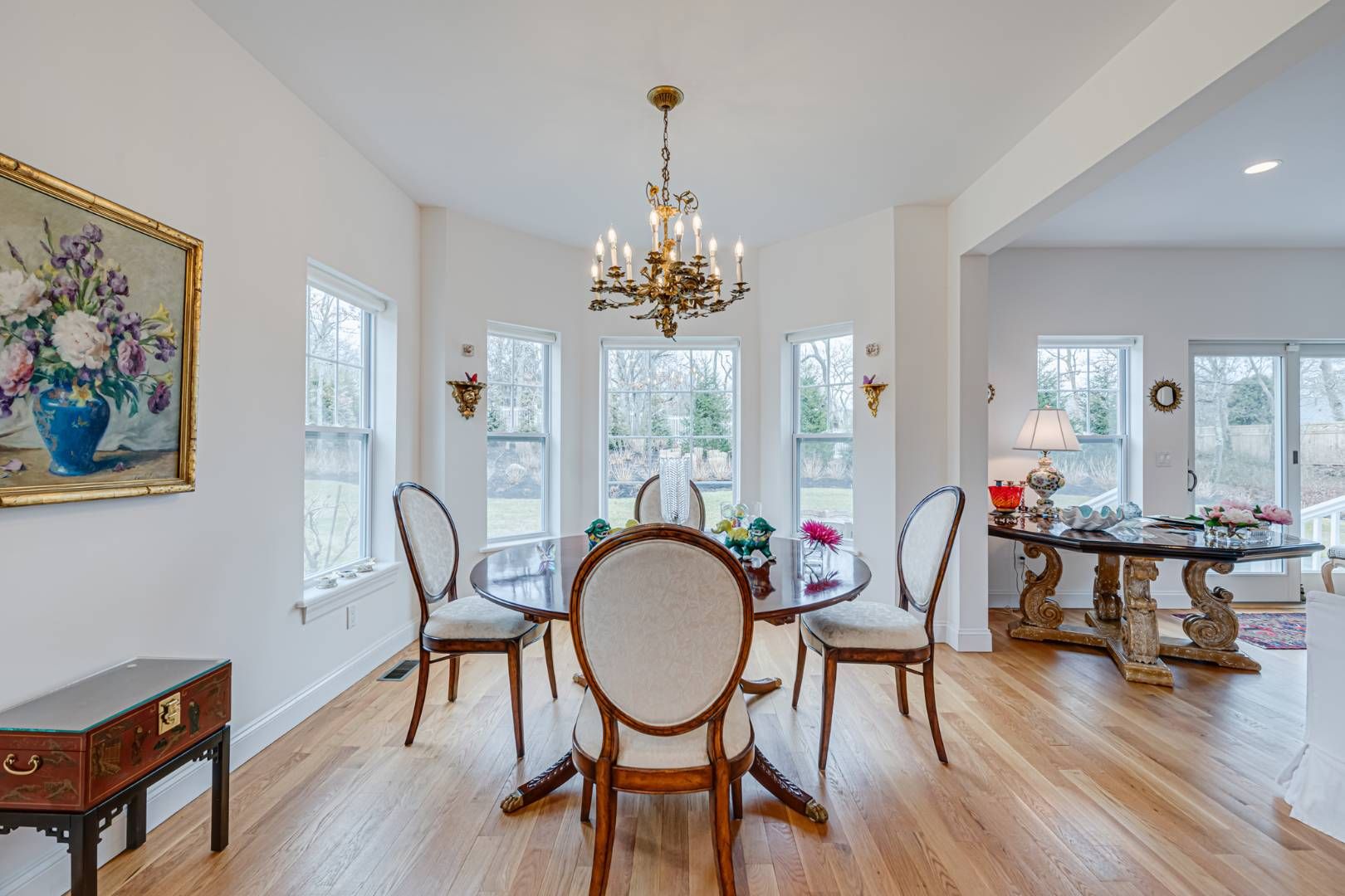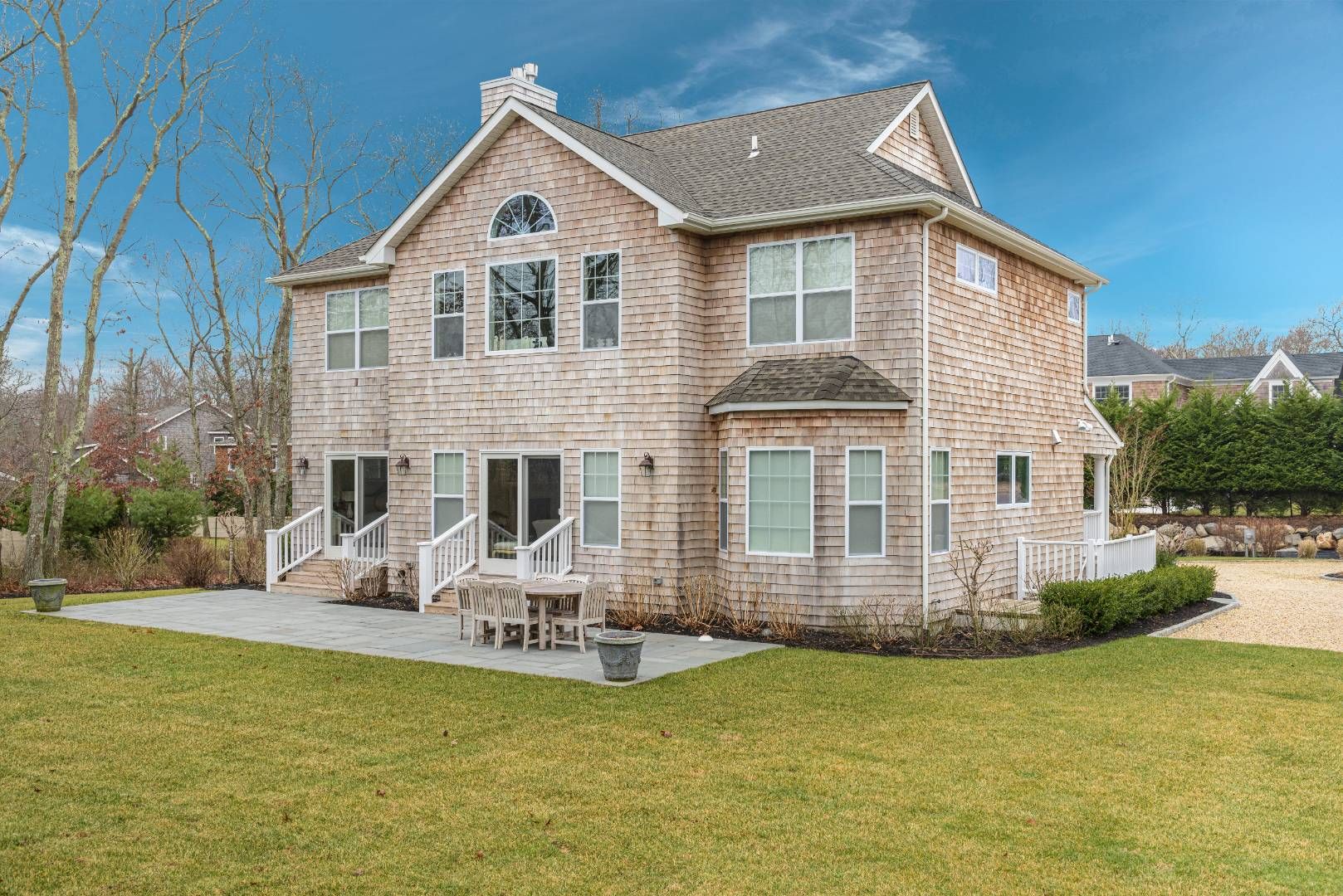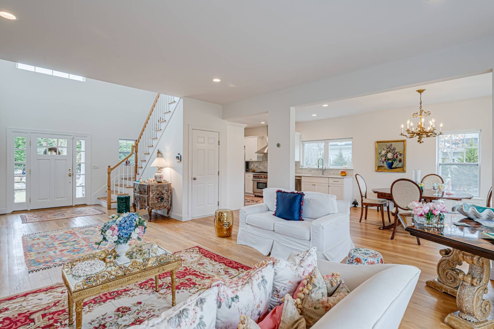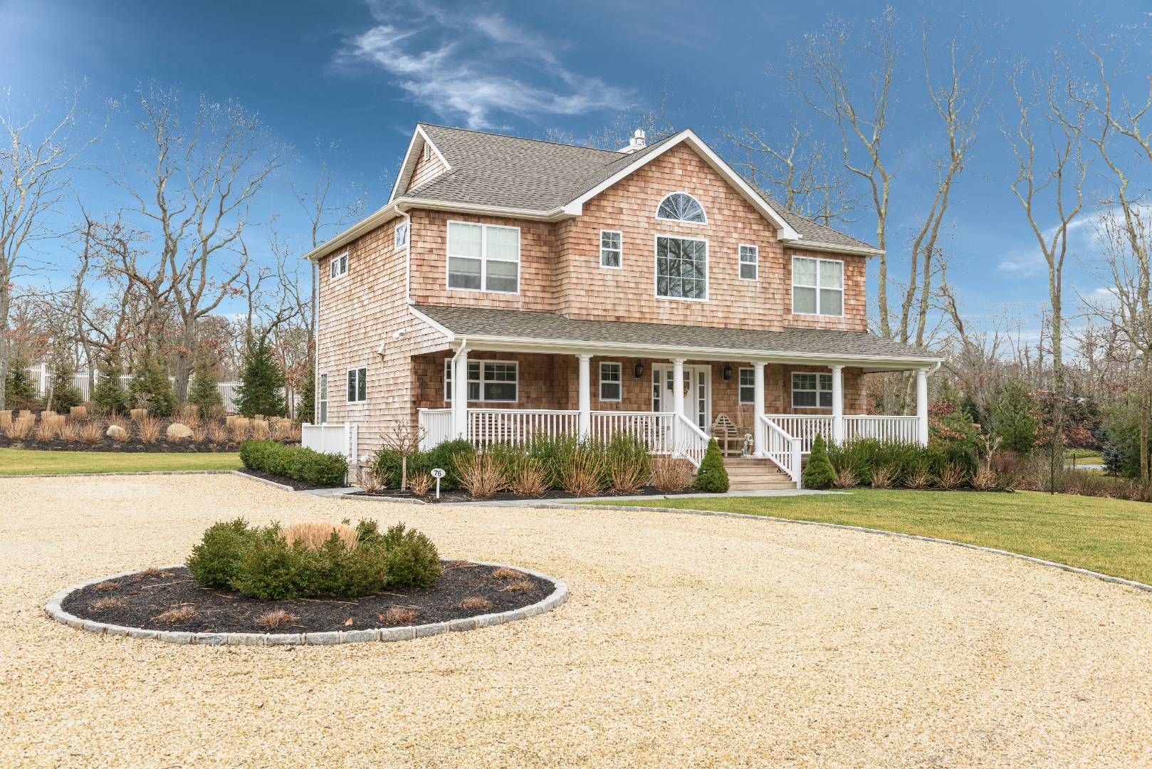 Just a few minutes to Southampton Village and a few more to ocean beaches, this light-filled and beautifully finished shingled traditional, a total of .76 acre. The four bedroom, three and a half bath home provides 2,476+/- sq. ft. of living space on two floors, along with an additional 1,322+/- sq. ft. in the lower level, which could be finished. Enter from the columned front porch to a double height foyer, which flows to open living areas in