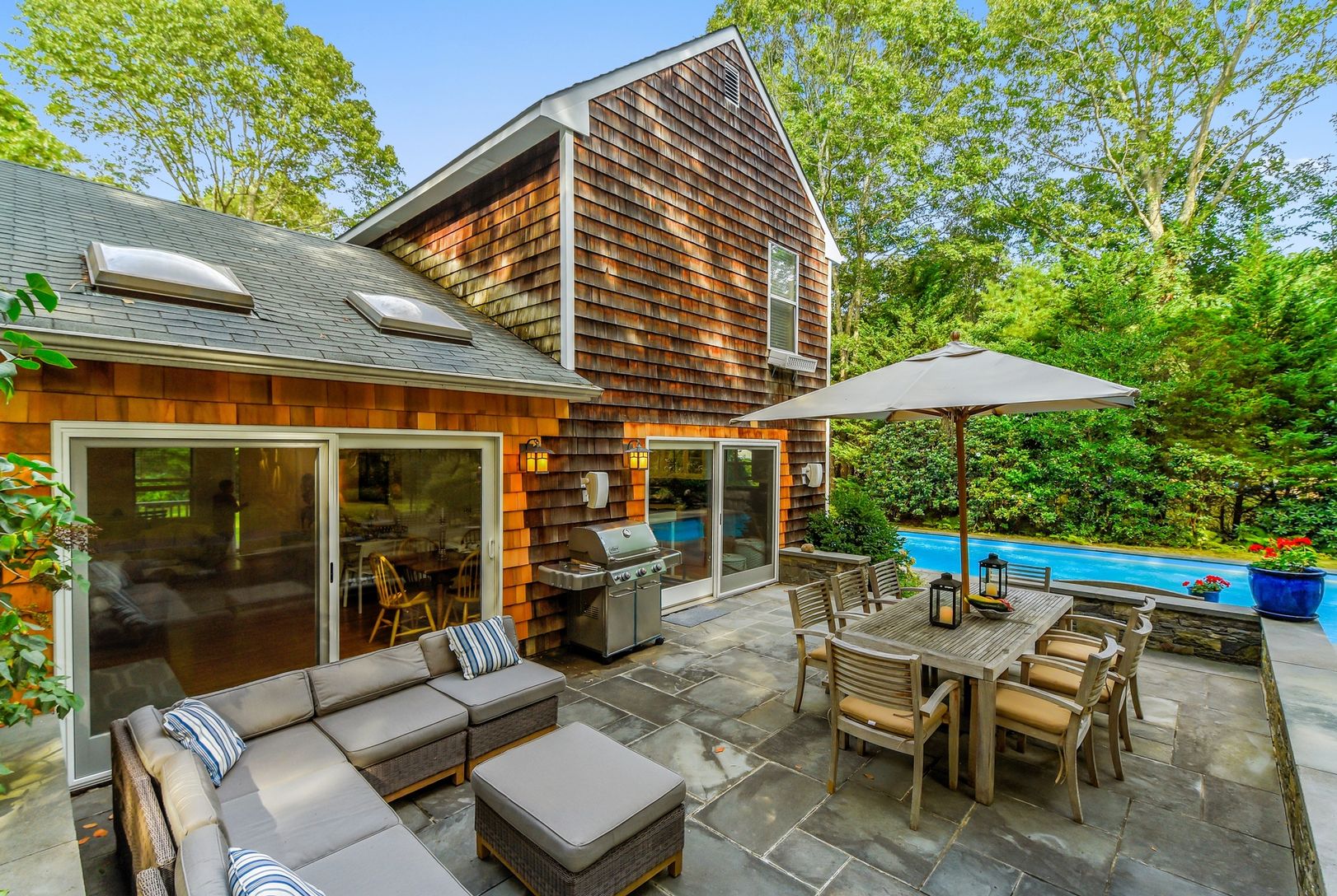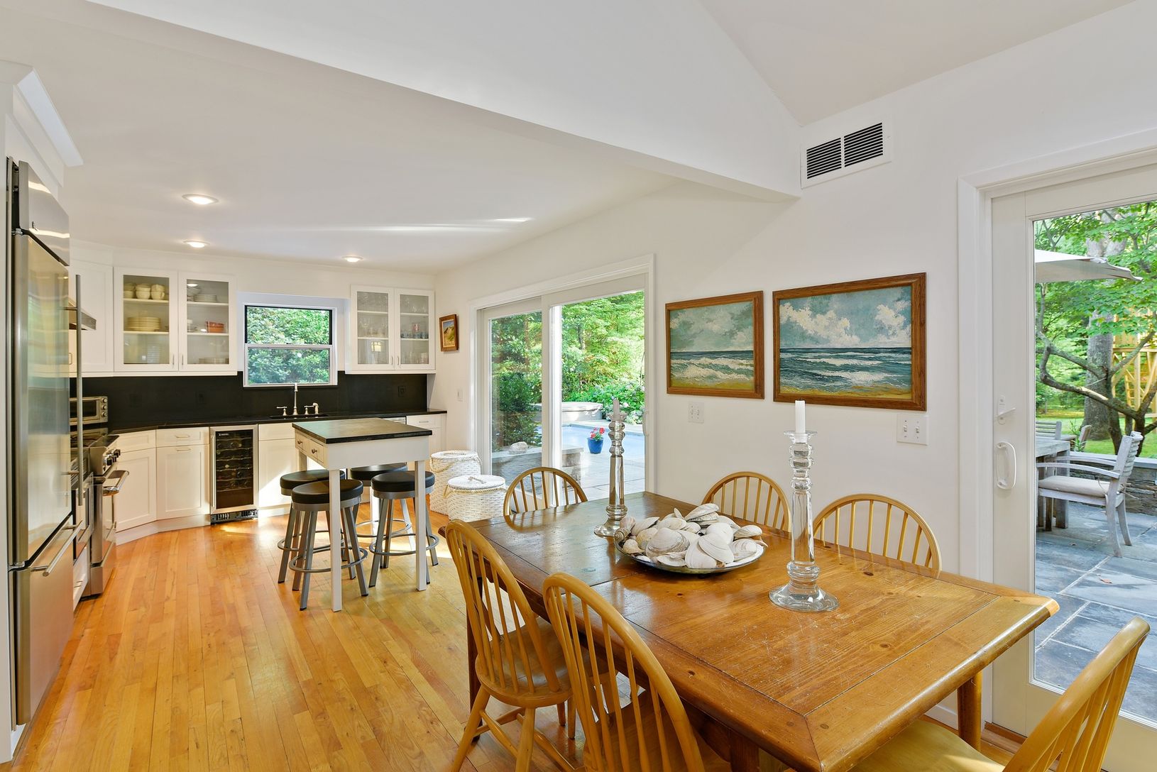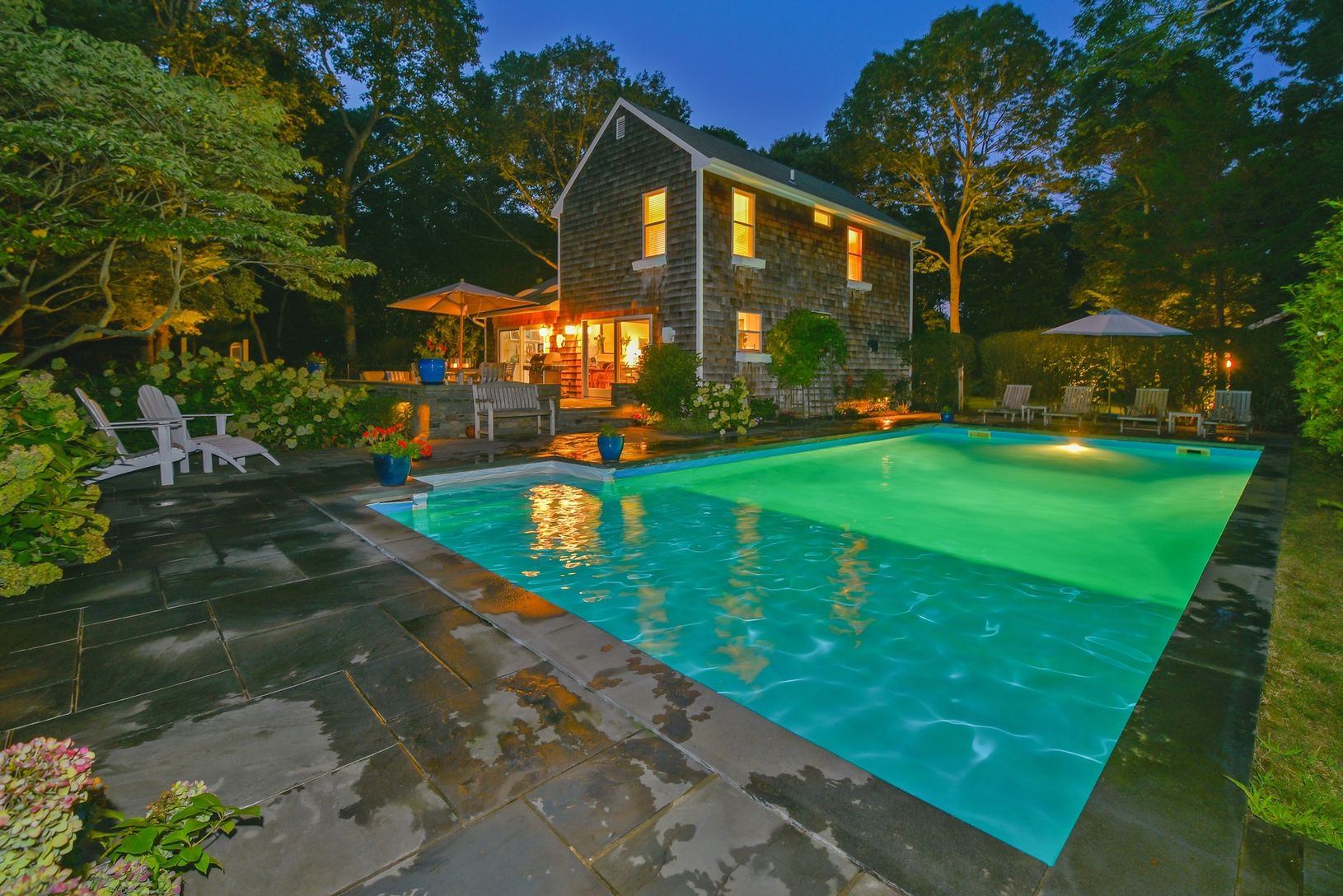 On full acre and close to all bay beaches and villages. Lush and private property. Turn key house. Gated property with long beautiful driveway leading to the Farmhouse style with 4 bedrooms and office and newly renovated kitchen and baths and finished basement. Large shed on property. Heated pool with double stone decks. Very indoor/outdoor and bright home. Mature gardens and landscape.