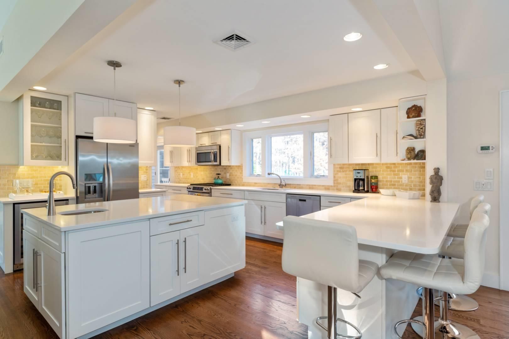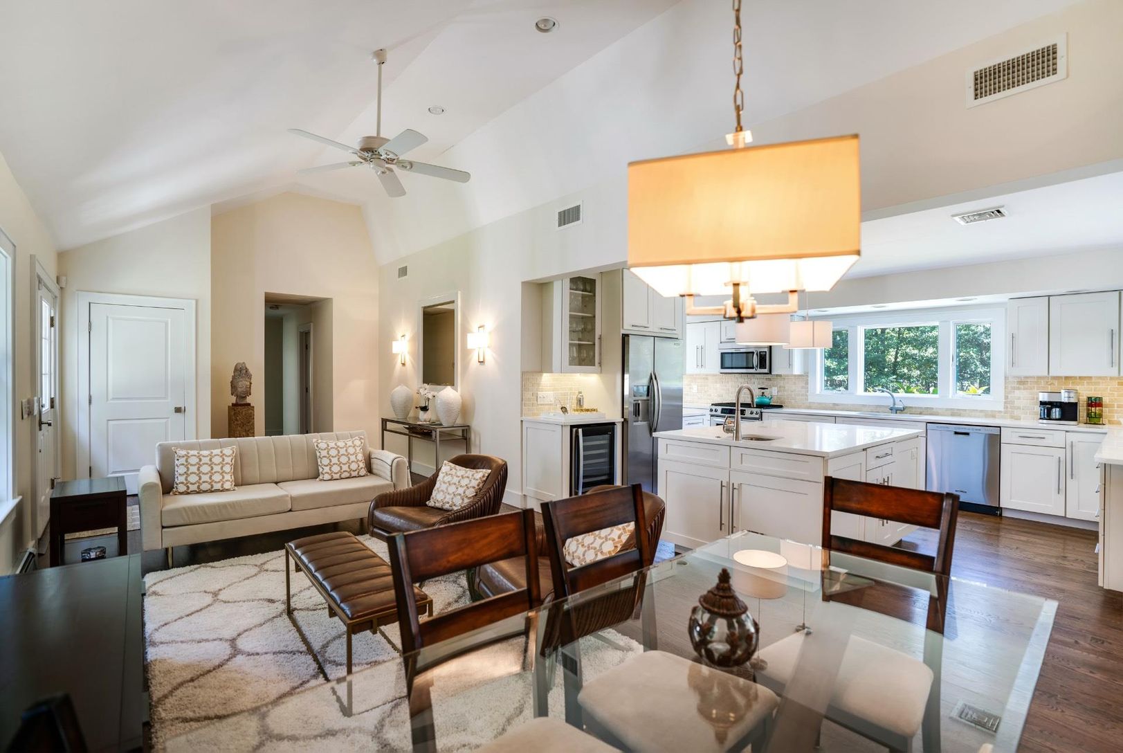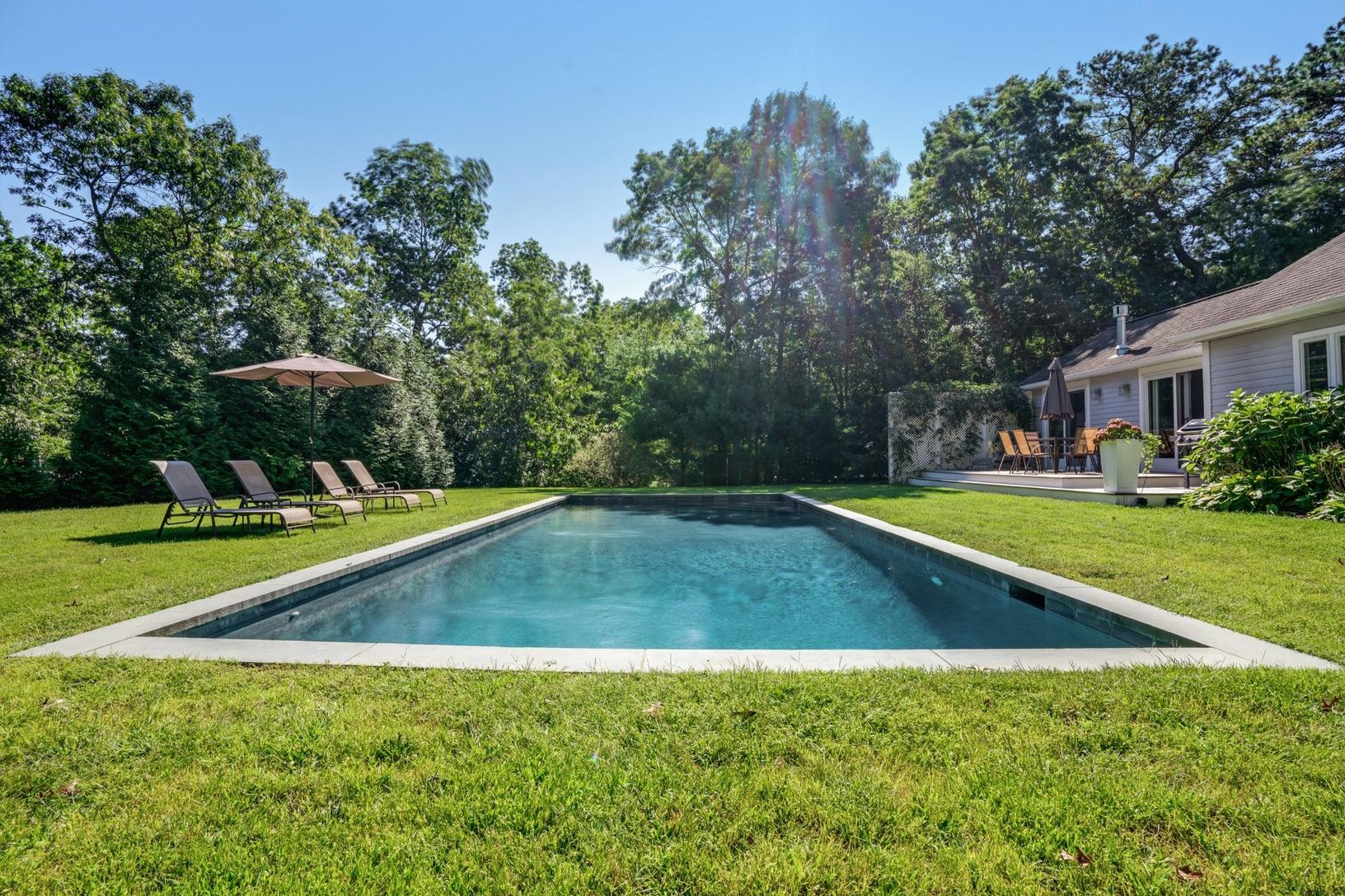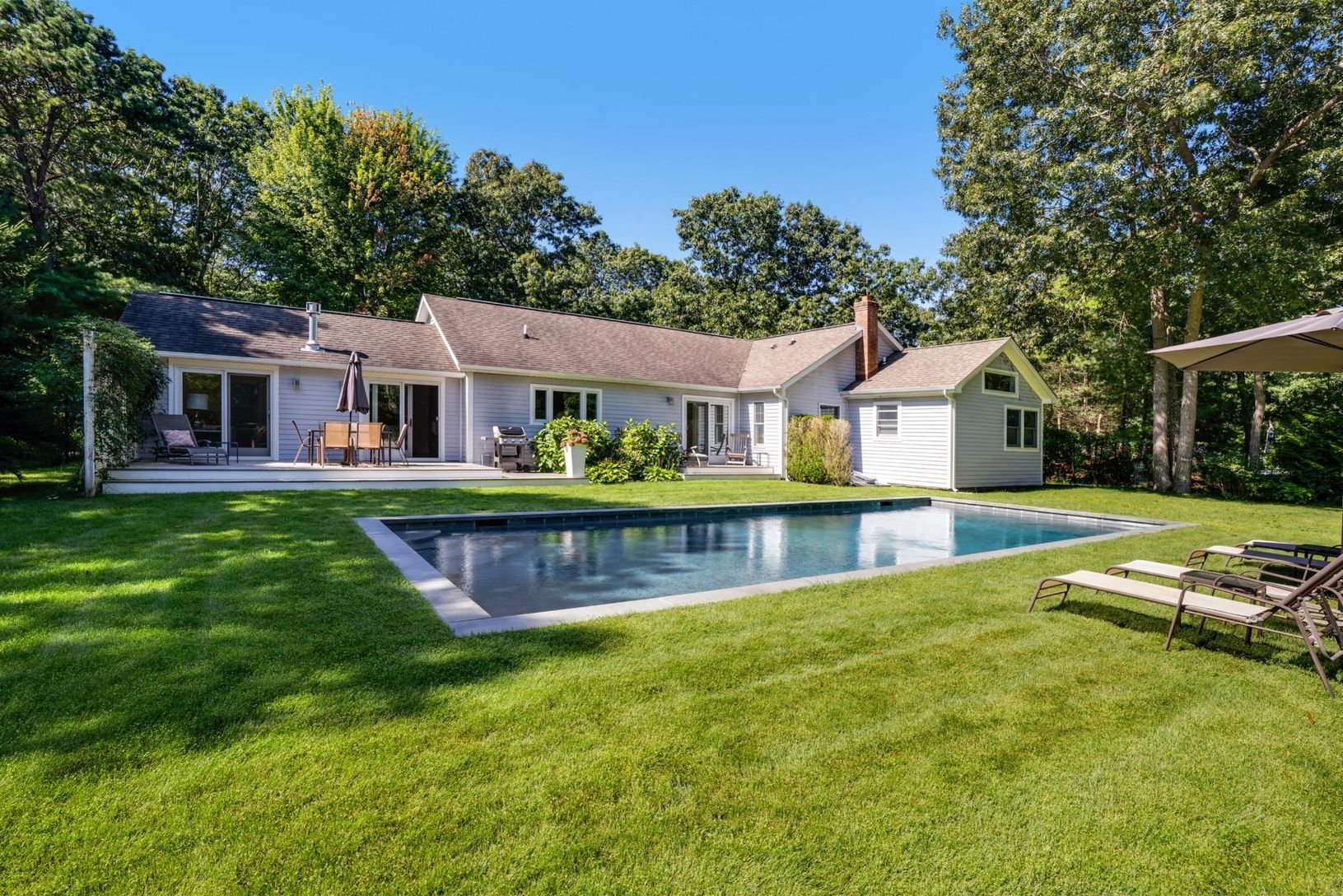 This ranch-style home features four bedrooms and four full bathrooms, including two primary suites. The house is beautifully furnished with modern furnishings and includes a large, open kitchen. Abundant natural light fills the home throughout the day. The property is situated on a reserve and located on a cul-de-sac. The backyard includes a gunite heated pool. The home is located approximately three miles from the beach and is within short di