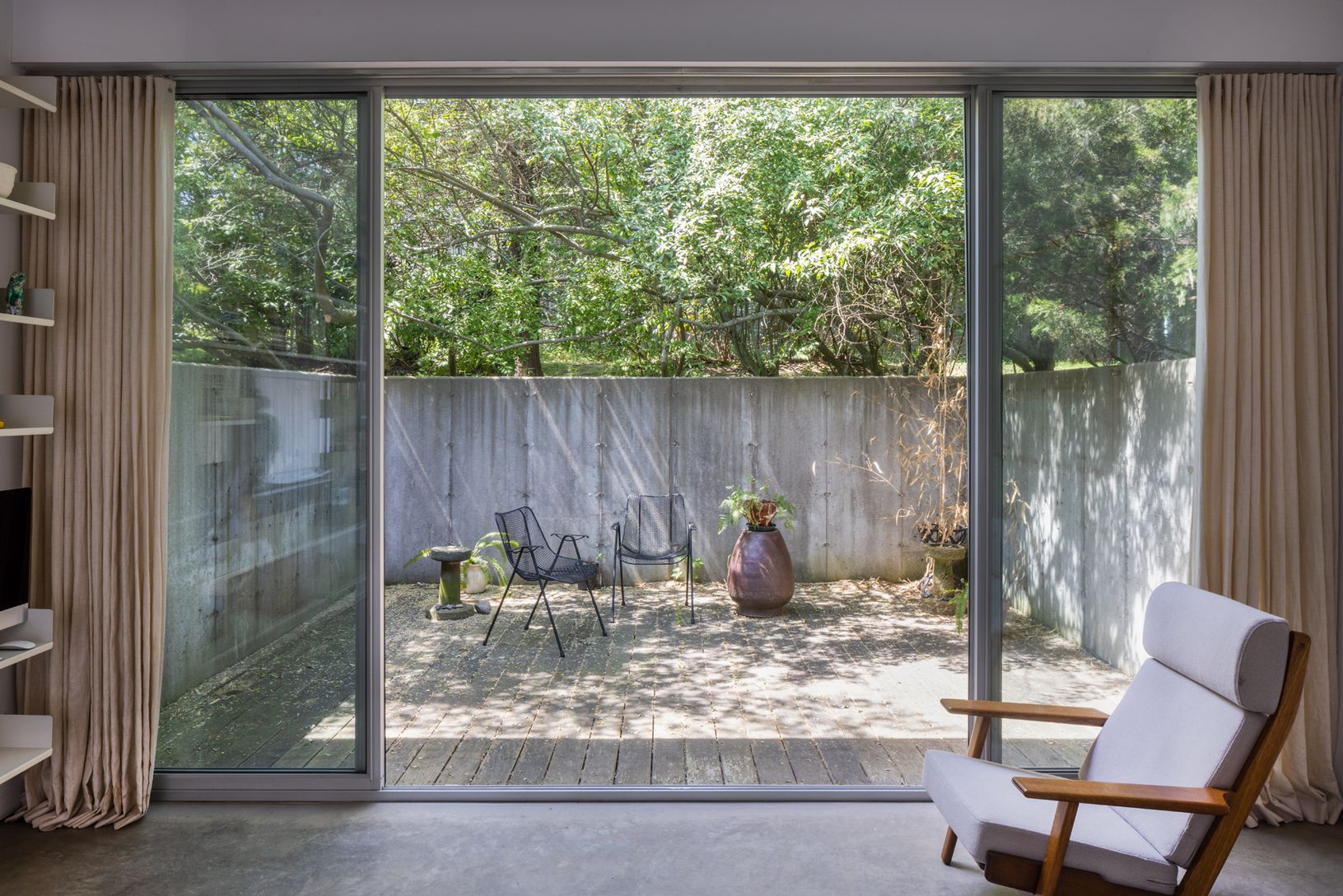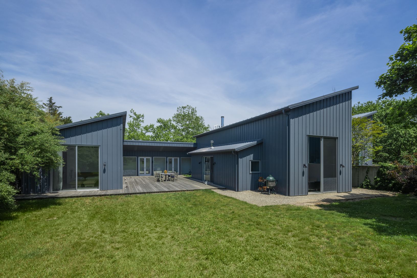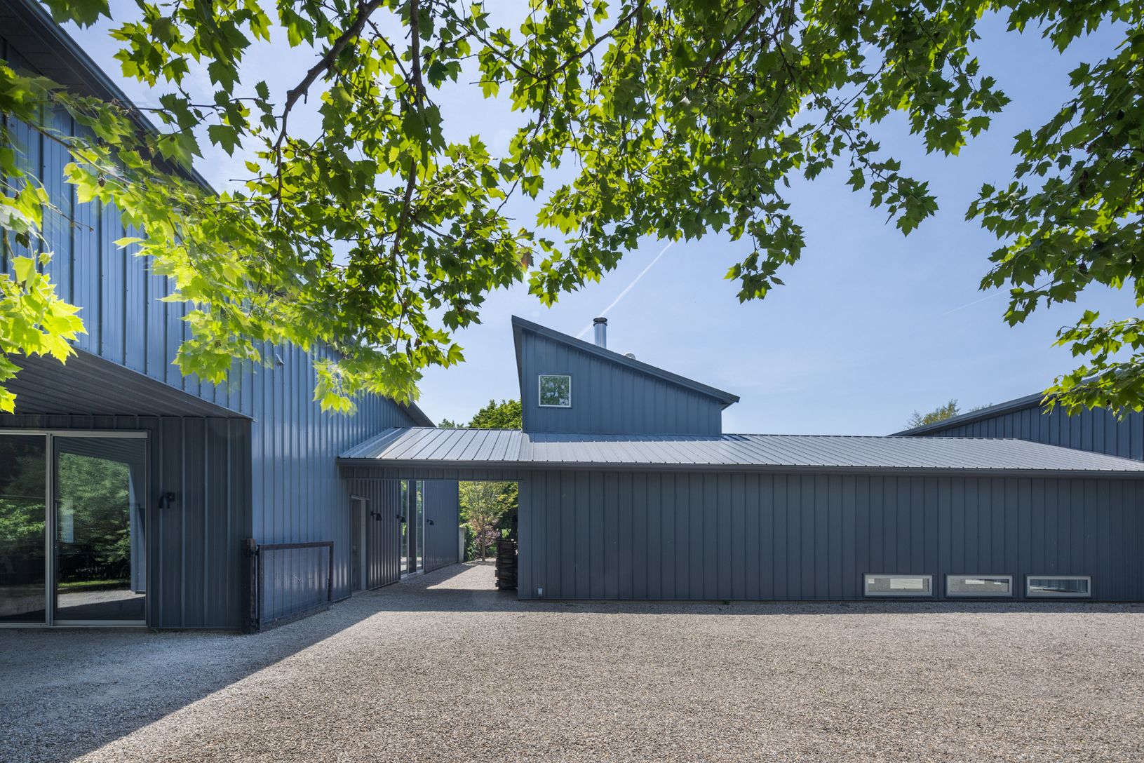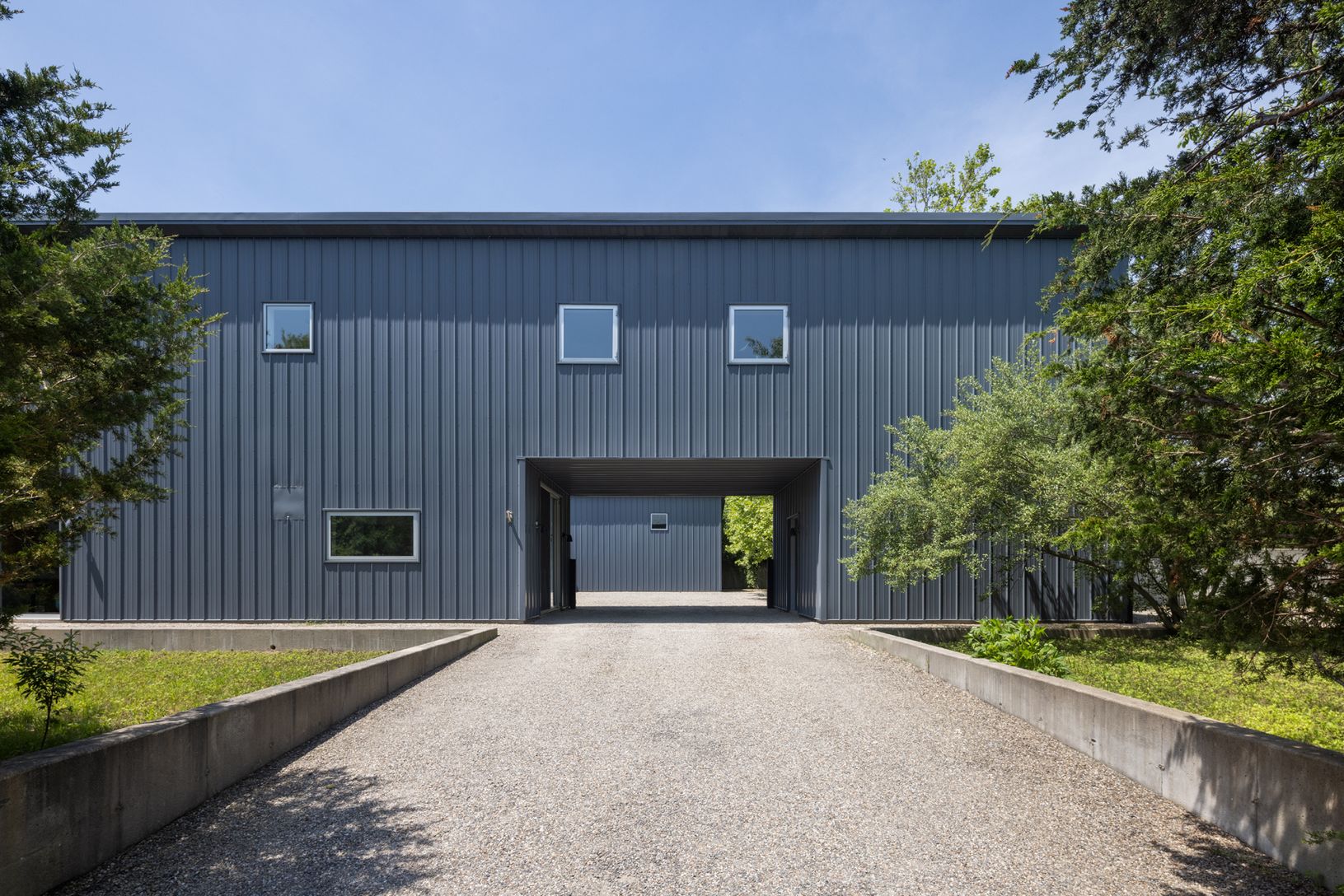 Inspired by the practical simplicity of agricultural sheds, the design of the home is not only contextual and respectful of the landscape of the area but pays homage to the farming communities of the East End. Jack Ceglic creates artistically beautiful spaces, inspiring homes that embody both form and function. Sited on what was once a former landscape nursery, this private enclave is home to a uniquely creative community of four Ceglic design