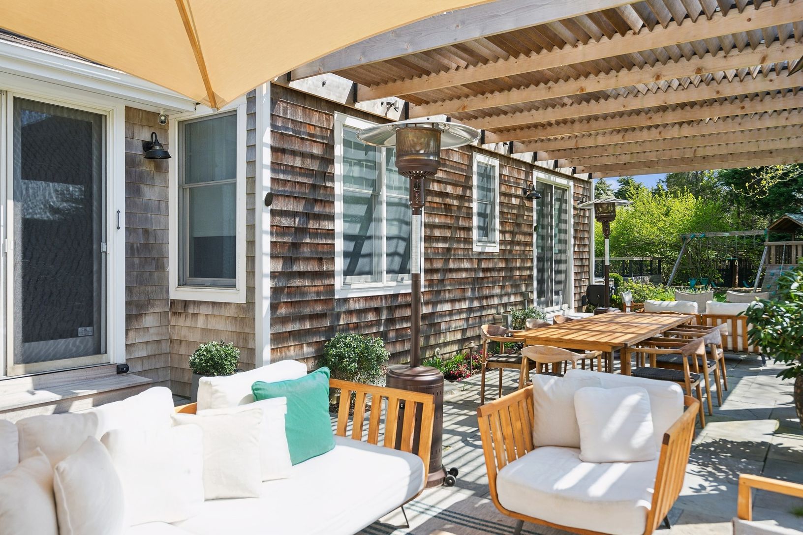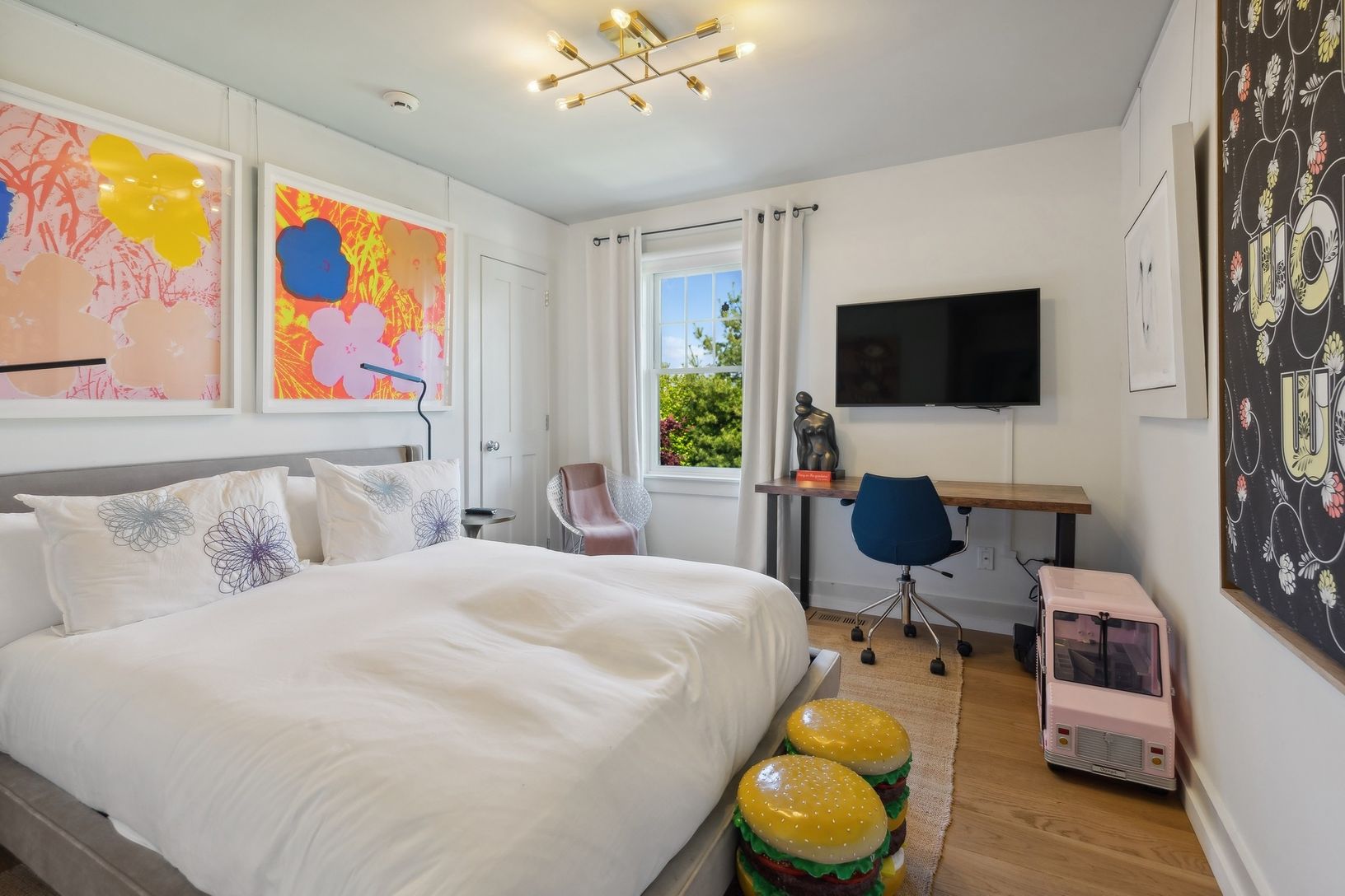 Summer in the Hamptons in style. This four-bedroom four bath retreat comes complete with a Mini Cooper, Vespa, and a go cart for you to enjoy. The exterior living space is great for entertaining or to relax by the pool. The garden will be full of fresh vegetables for you to enjoy on the nights you have BBQs at home. One guest bedroom is in the lower level, set up with a mini refrigerator and full bath. With multiple living spaces and a private