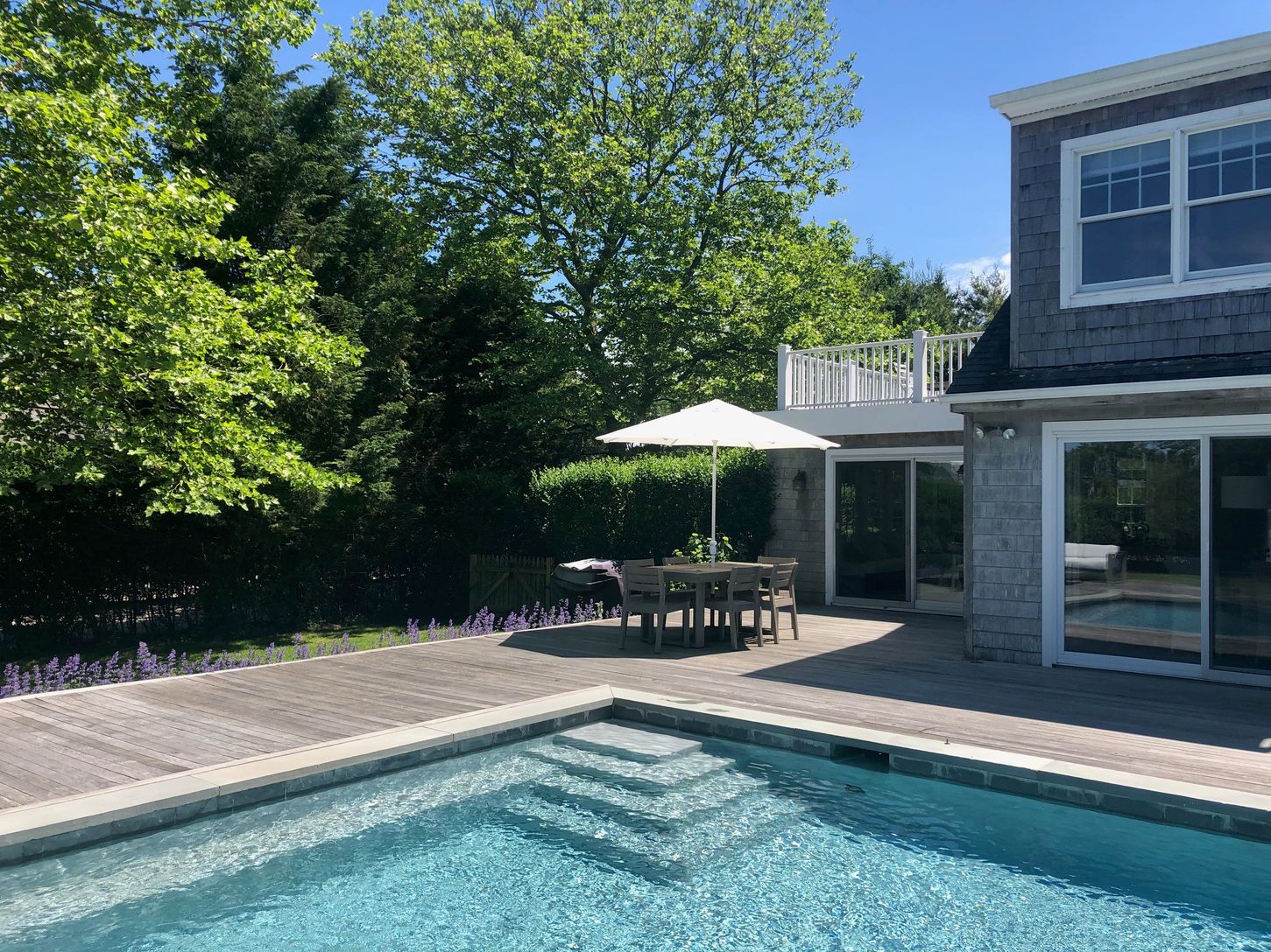 This spacious, bright four-bedroom, three and one half-bath classic summer house is just minutes from the heart of Southampton Village, near Coopers Beach, world-class shops, museums, theaters, restaurants, playgrounds, and parks. There is a wonderful backyard with a 20X40 gunite, saline pool, and lots of decking on this shy-acre property. There are high ceilings in the living room, sunroom, and a second-floor Master Suite with a private deck