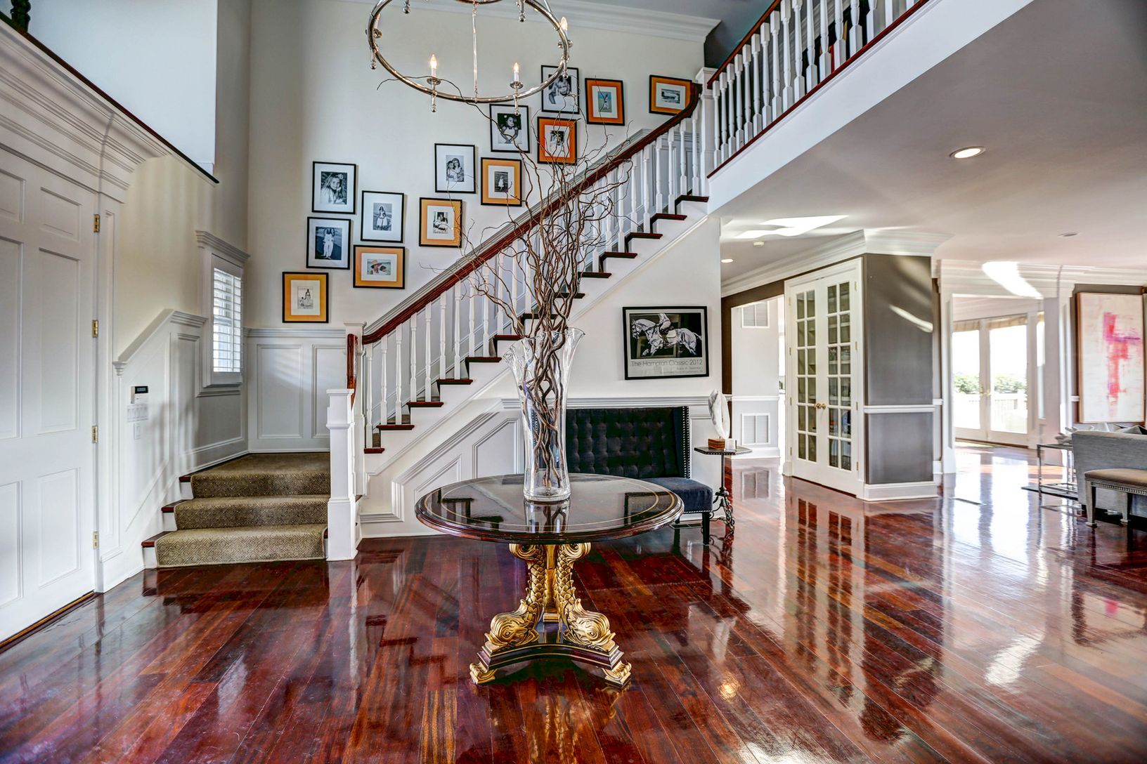 Captivating traditional is showcased in a most sought after location. Located on 1.8+/- acres in the heart of Water Mill, this beautiful 6 bedroom, 6.5 bath home is perfection. A country drive opens up to a circular driveway and a maturely landscaped, elegant property. Upon entering, you are greeted by a double height entry foyer which leads to a formal living room fireplace, formal dining room with fireplace, charming library complete with