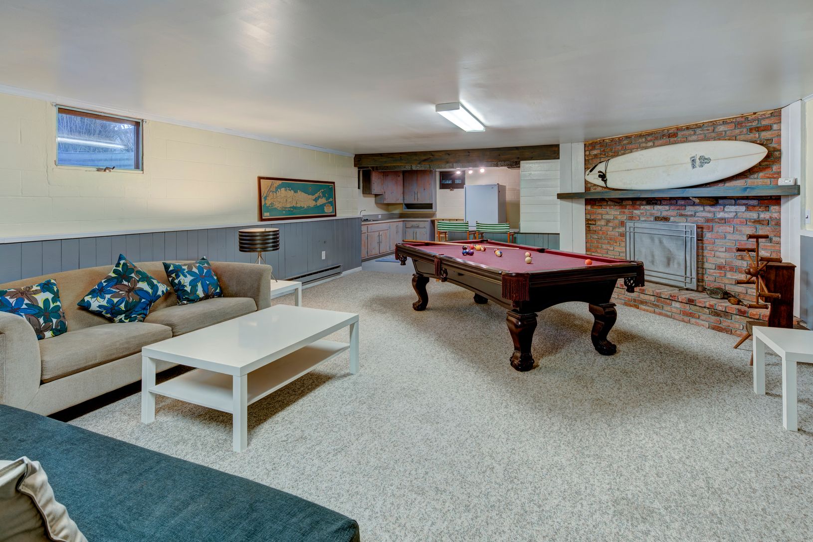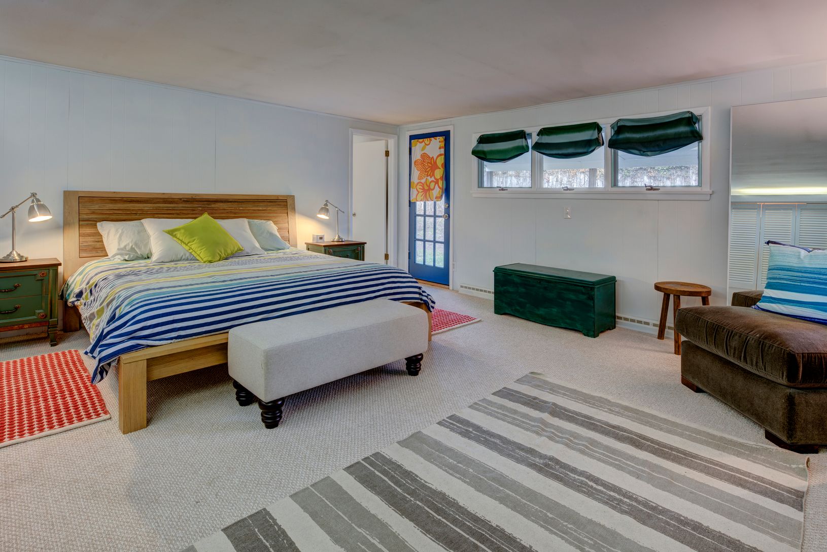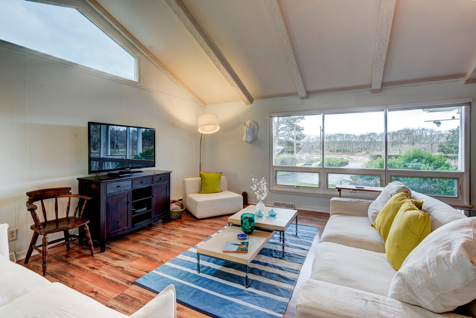 Sun filled gardens and entertaining outdoor spaces enhance this updated mid-century modern ranch in Cutchogue. The water view home for sale or for rent in the summer - has a large wraparound mahogany porch from which to enjoy the views of Broadwater's Cove and a saltwater pond on the property. Just steps away the homeowner, or lucky summer renter, can enjoy Nassau Point Beach, one of finest beaches on the North Fork of Long Island that as pa