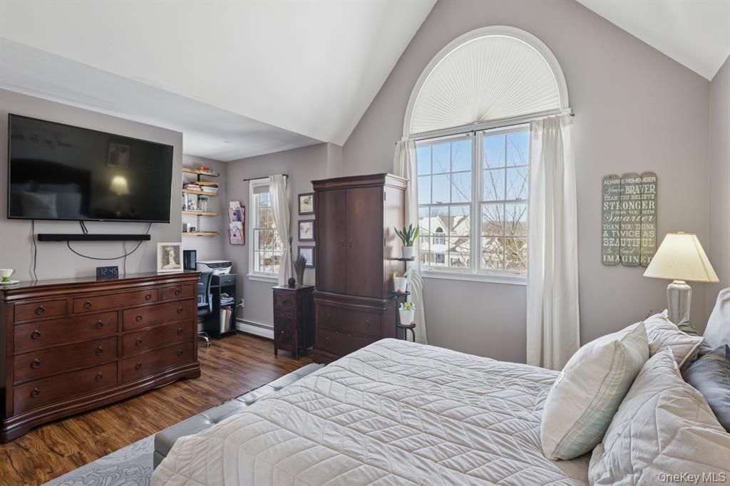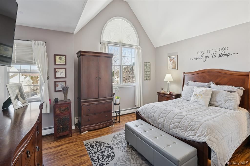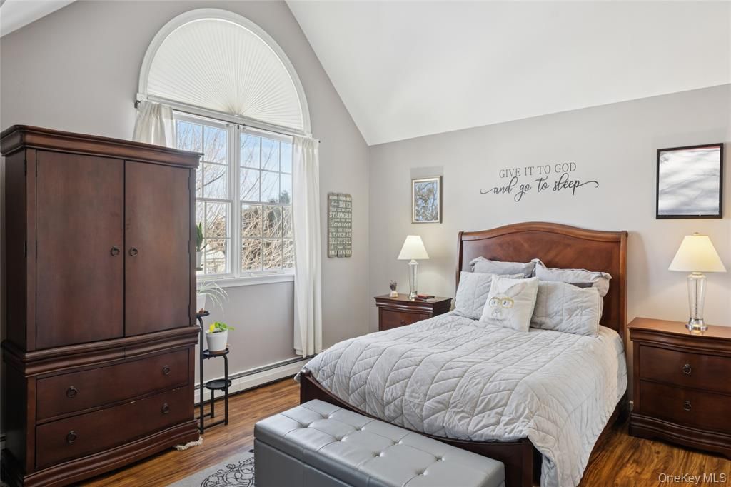 This 4-bedroom, 2.5-bath home sits on more than half an acre in the Great Rock Development. The main level offers a bright, open floor plan with a living room that flows into the dining area and spacious kitchen. The main floor includes a dedicated laundry area, powder room, and access to the attached garage. Upstairs are three bedrooms that share a full bath, along with a primary suite featuring high vaulted ceilings and a private ensuite bat