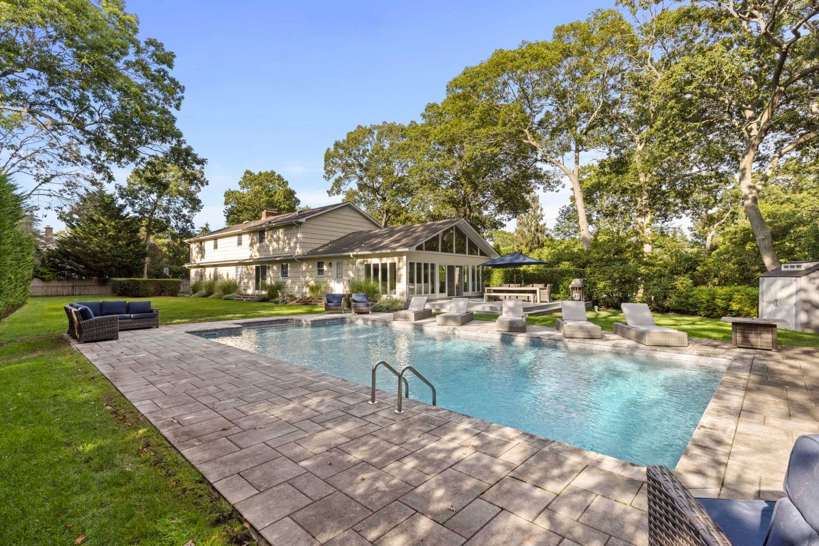 Enjoy the best of Westhampton Beach in this stylish and sun-filled 6 bedroom, 5 bathroom home featuring a private in-ground pool and a spacious, beautifully landscaped backyard. Perfect for summer living or seasonal stays, this home offers an open-concept layout, a fully equipped kitchen, comfortable bedrooms, and modern updates throughout, including central air conditioning and hardwood floors. Ideally located just minutes from the village, w