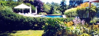 Surrounded by lush gardens by Bayberry and fabulous scents is this walls of windows Modern architectural home on a rare, large .74 acre. The expansive glass windows allow you to experience the lovely outdoor gardens indoors from this 3-bedroom, 2-bath easy living home with heated pool nestled in a flowering garden. On an Amagansett Lane, south of Main Street, where you can hear the ocean waves, stroll to either the village square shops, Hampto