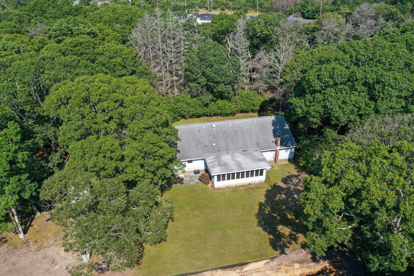 Situated down a long drive on 1.06 acre, South of the Highway in Westhampton, this ranch borders over 4 acres of preserved land owned by the Town of Southampton. The 2,300 sq. ft. home offers 3 bedrooms, 3 full bathrooms, living room, eat in kitchen, dining area and a spacious sun room. Additional amenities include easement to the water, basement, attached 2 car garage, central air conditioning, hardwood floors and room for swimming poo. Enjo