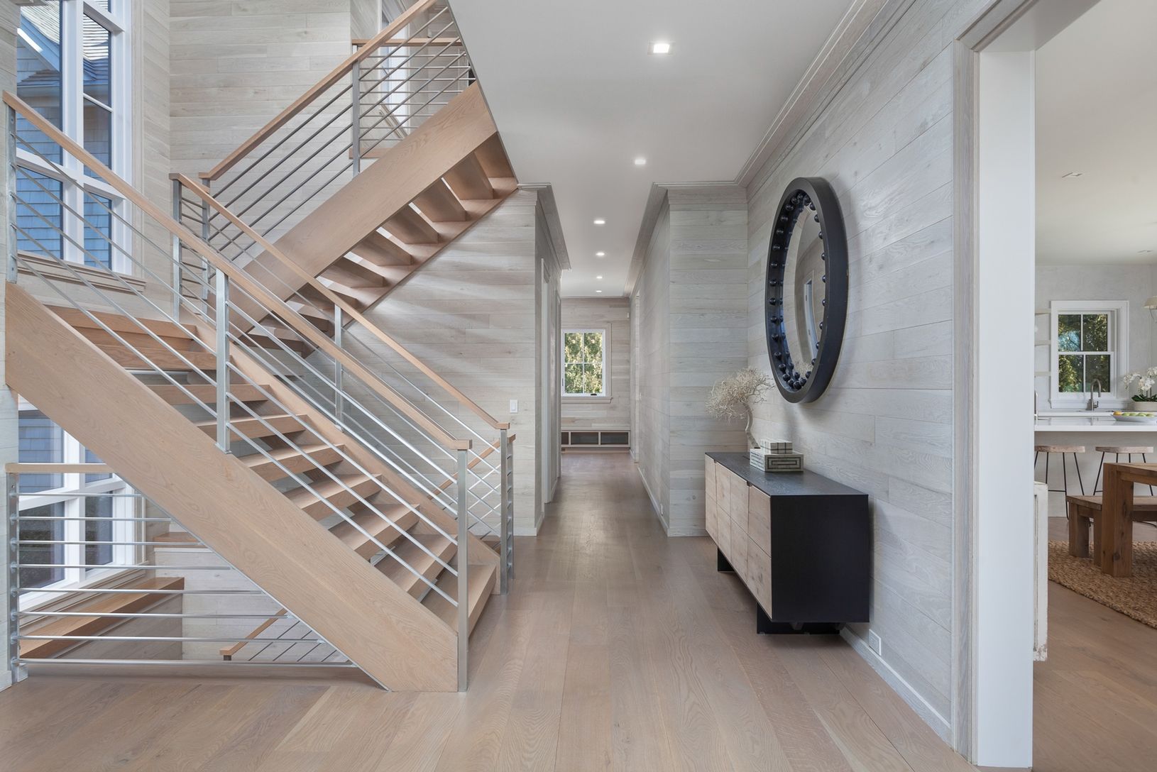 In the very heart of Bridgehampton, this exceptional new home offered by Cavallo Building, offers the unique combination of its incredibly convenient location with the surprising privacy of its setting. Situated on an unusually large village parcel (0.7+/- acre) the home sits on a flag lot down a long, private, driveway. Adding to the incredible convenience is a gate in the back of the property that opens to a lit pathway running directly behi