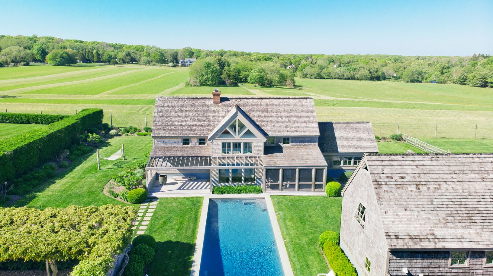 Discover your dream home! This stylish retreat, designed by Centerbrook Architects, offers unmatched tranquility and picturesque farmfield views with beautiful perennial gardens. Enjoy a seamless blend of classic charm and modern luxury in the main 3-bedroom house, equipped with a fully integrated smart home system. The accessory building features a one-car garage, mudroom area, full bathroom, and additional finished space above. Enhancing thi