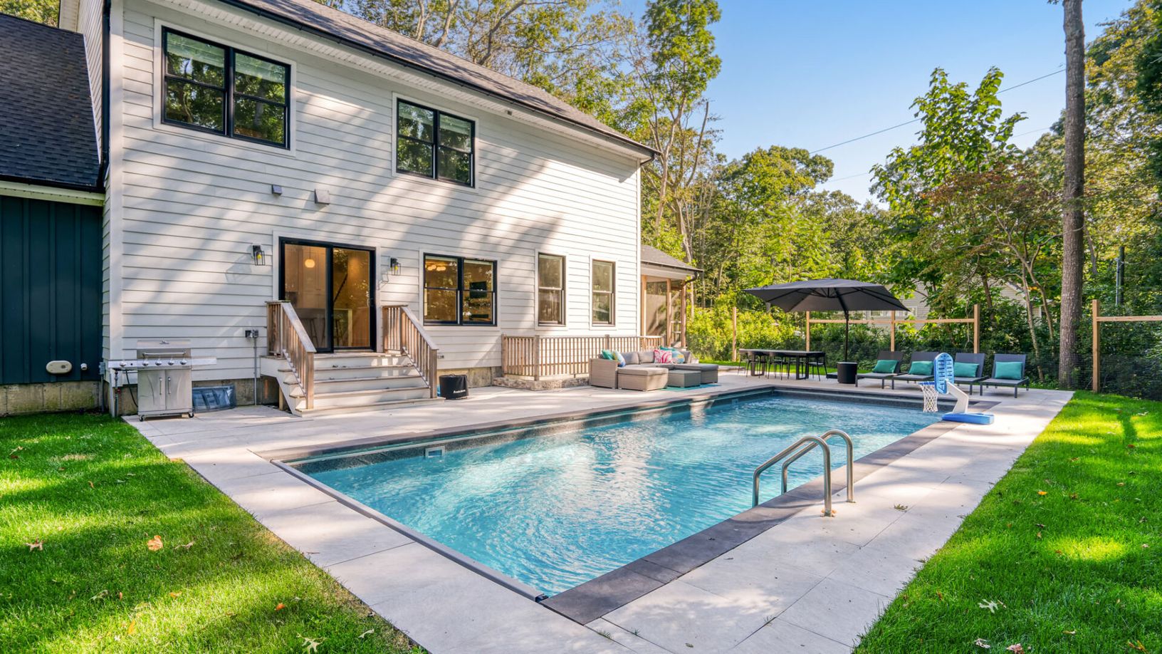 Set in the tranquil heart of Southold, this stunning 4-bedroom, 3-bathroom vacation home promises a luxurious retreat on the North Fork. Nestled amidst the region's renowned wine country, it's a stone's throw away from Horton Point Beach and the exquisite Duck Walk Vineyards. Newly constructed, this home combines spaciou