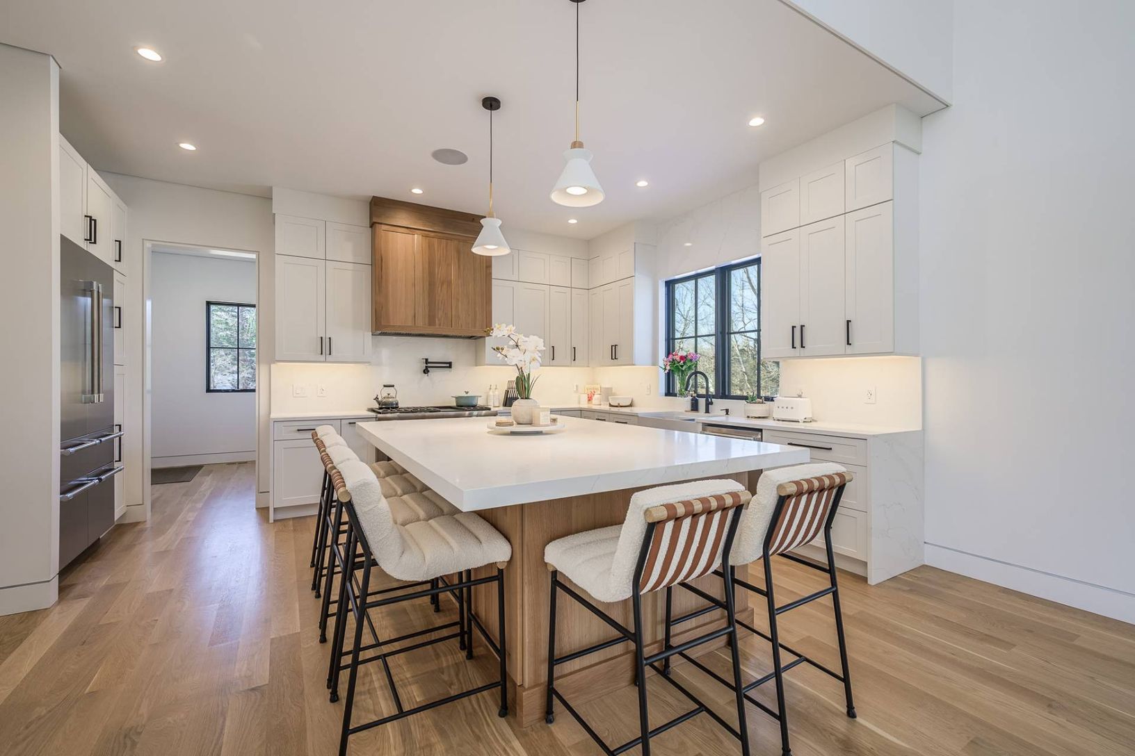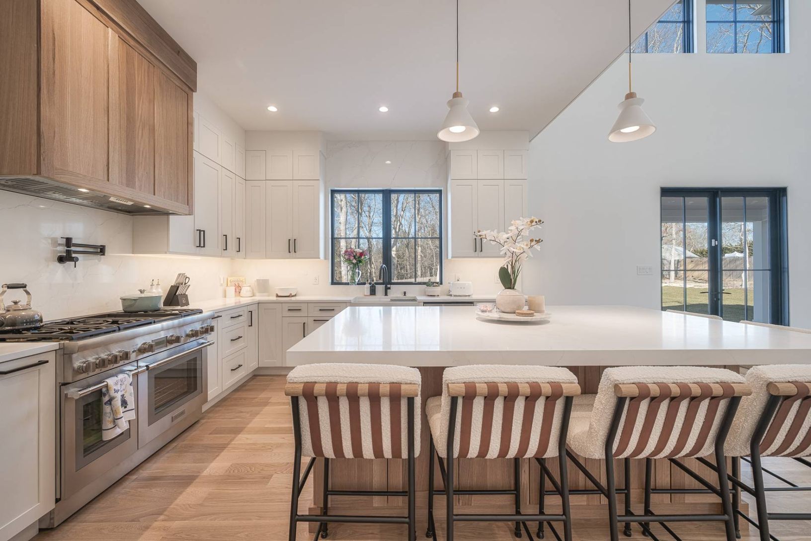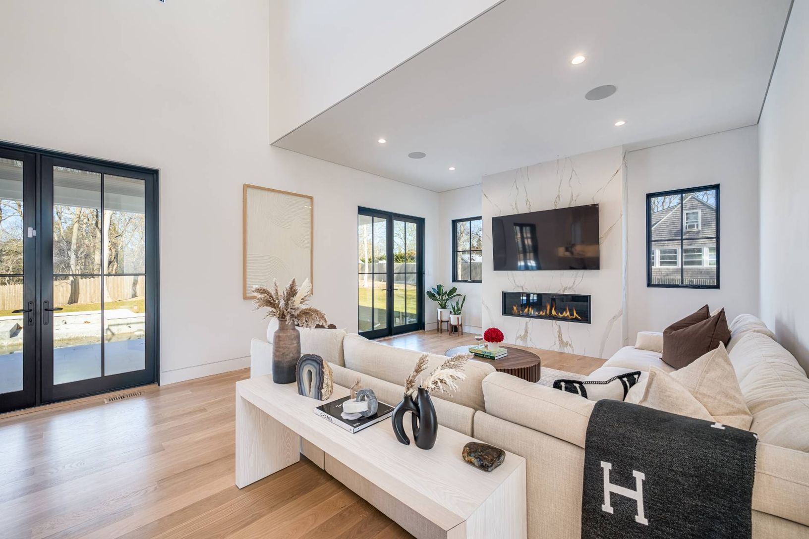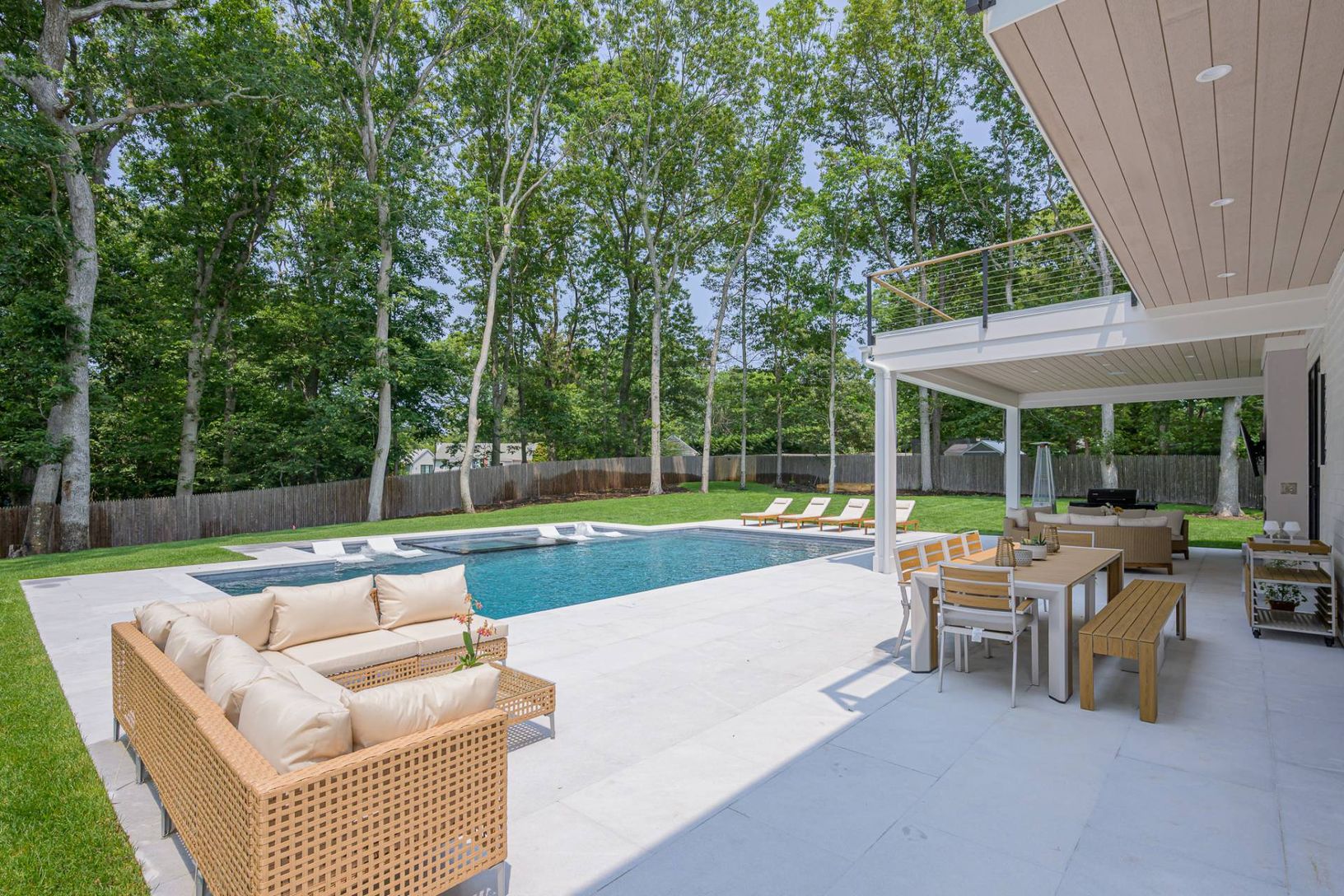 Now available for rent in the prestigious Southampton Shores, this newly built home offers 6 bedrooms and 7.5 bathrooms on a private 0.67-acre lot with access to exclusive community amenities. The home features an open-concept living room with a gas fireplace and a fully equipped chef's kitchen with Thermador appliances, a 48" gas range, and an oversized island seating six. An eight-person formal dining room includes a wine display wall and bu